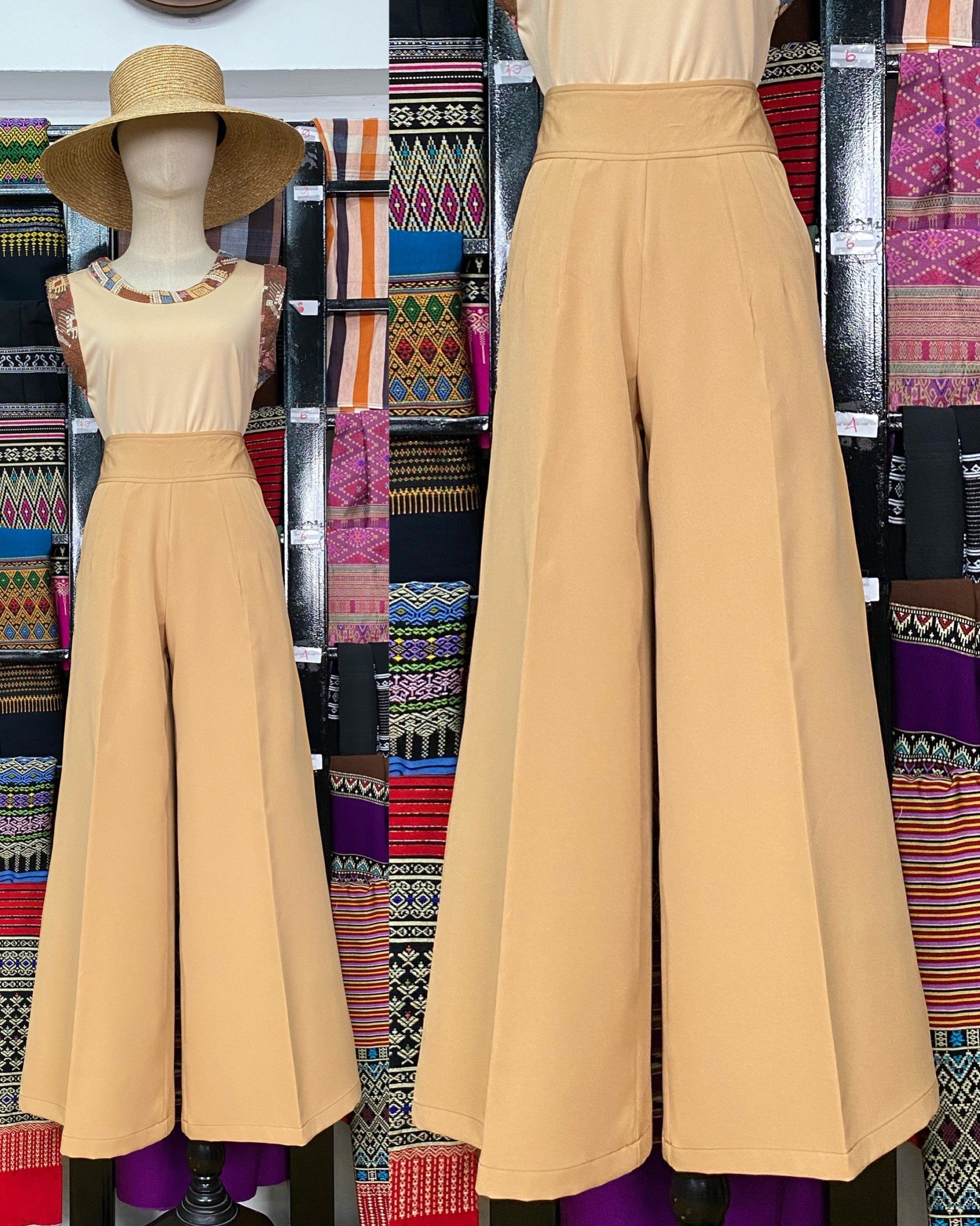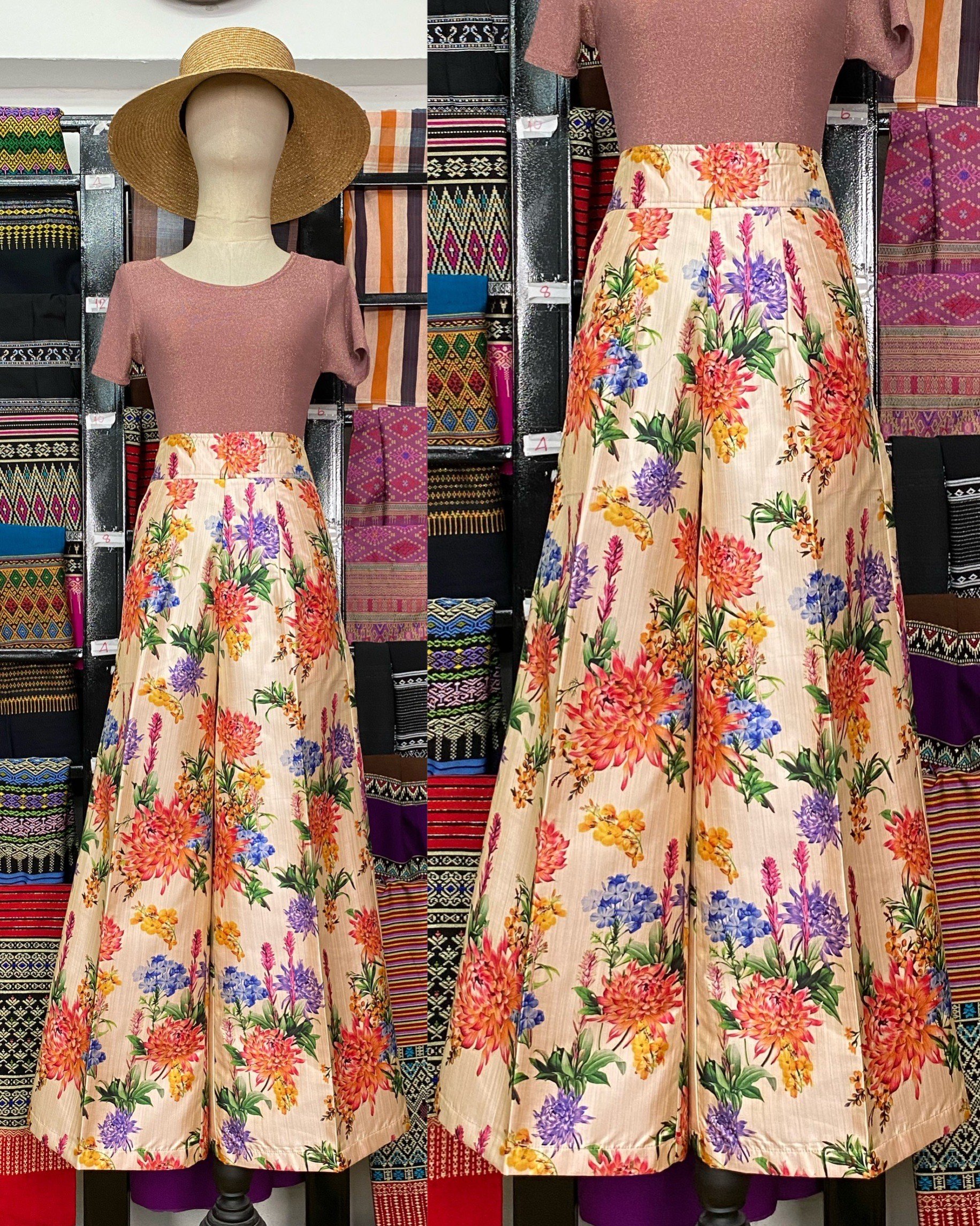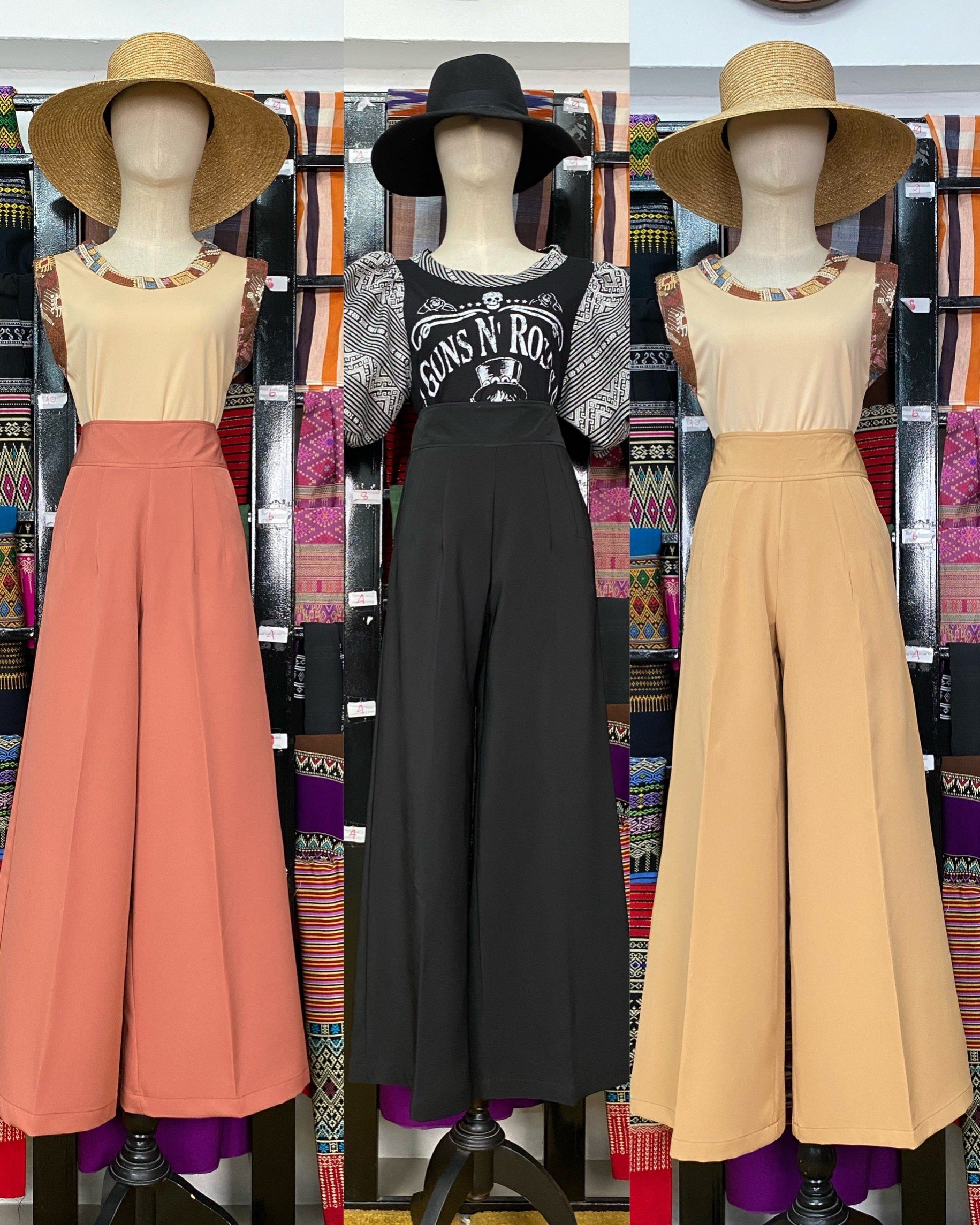 สื้อยืดคอจับจีบเฉียง มิกซ์แอนด์แมทช์ กับกางเกงจากผ้ามัดหมี่ ของดี จ.ลพบุรี