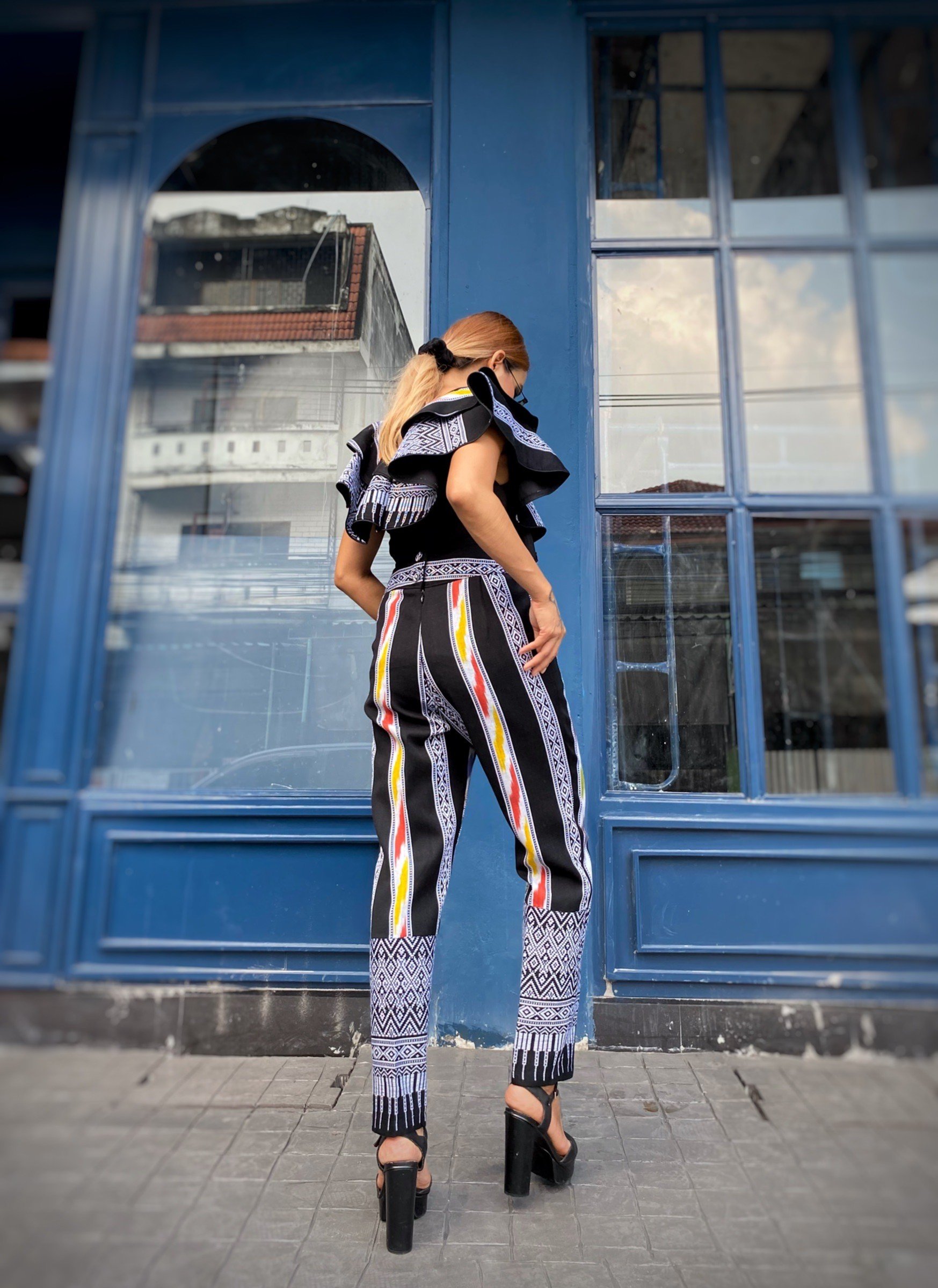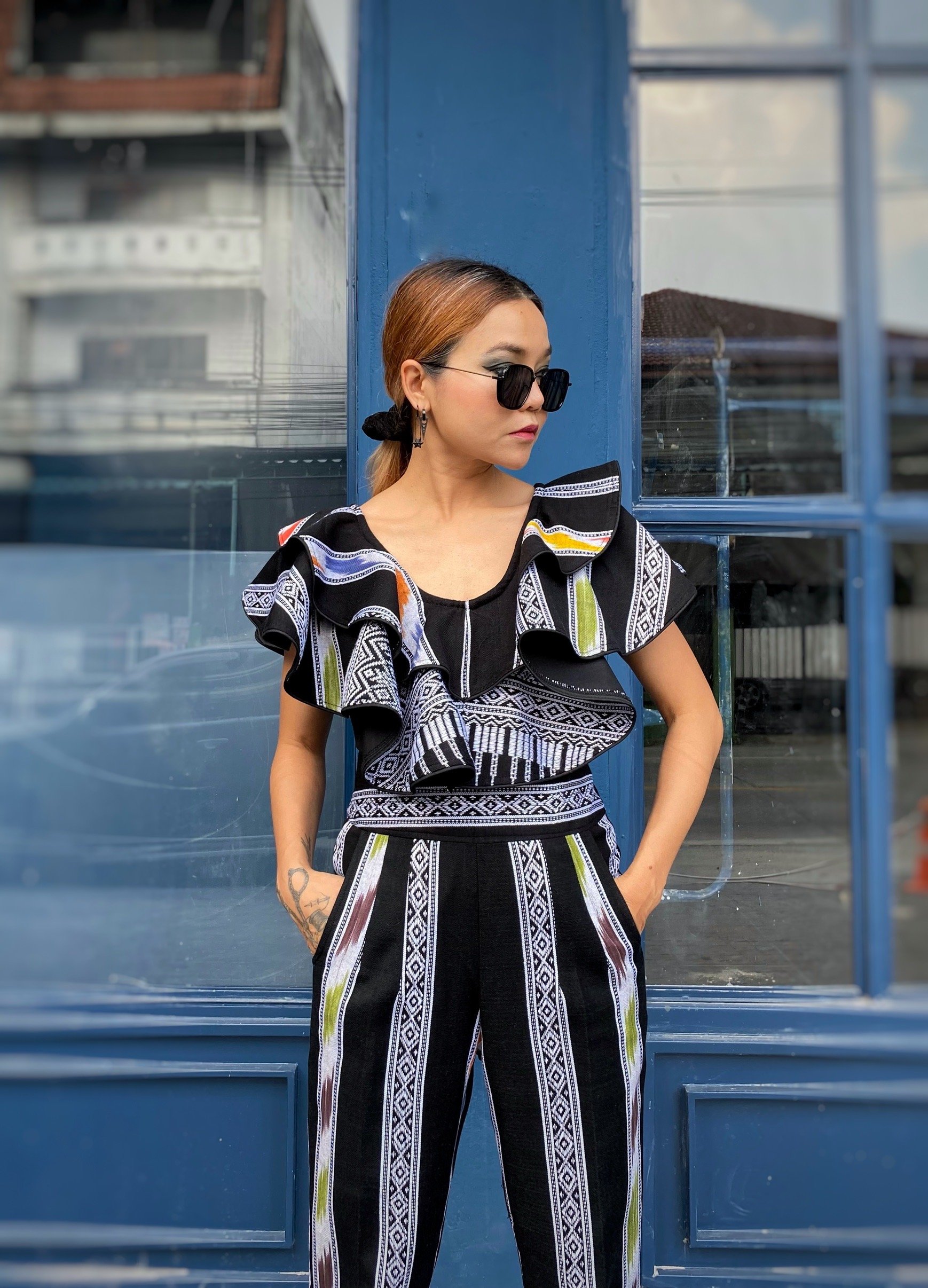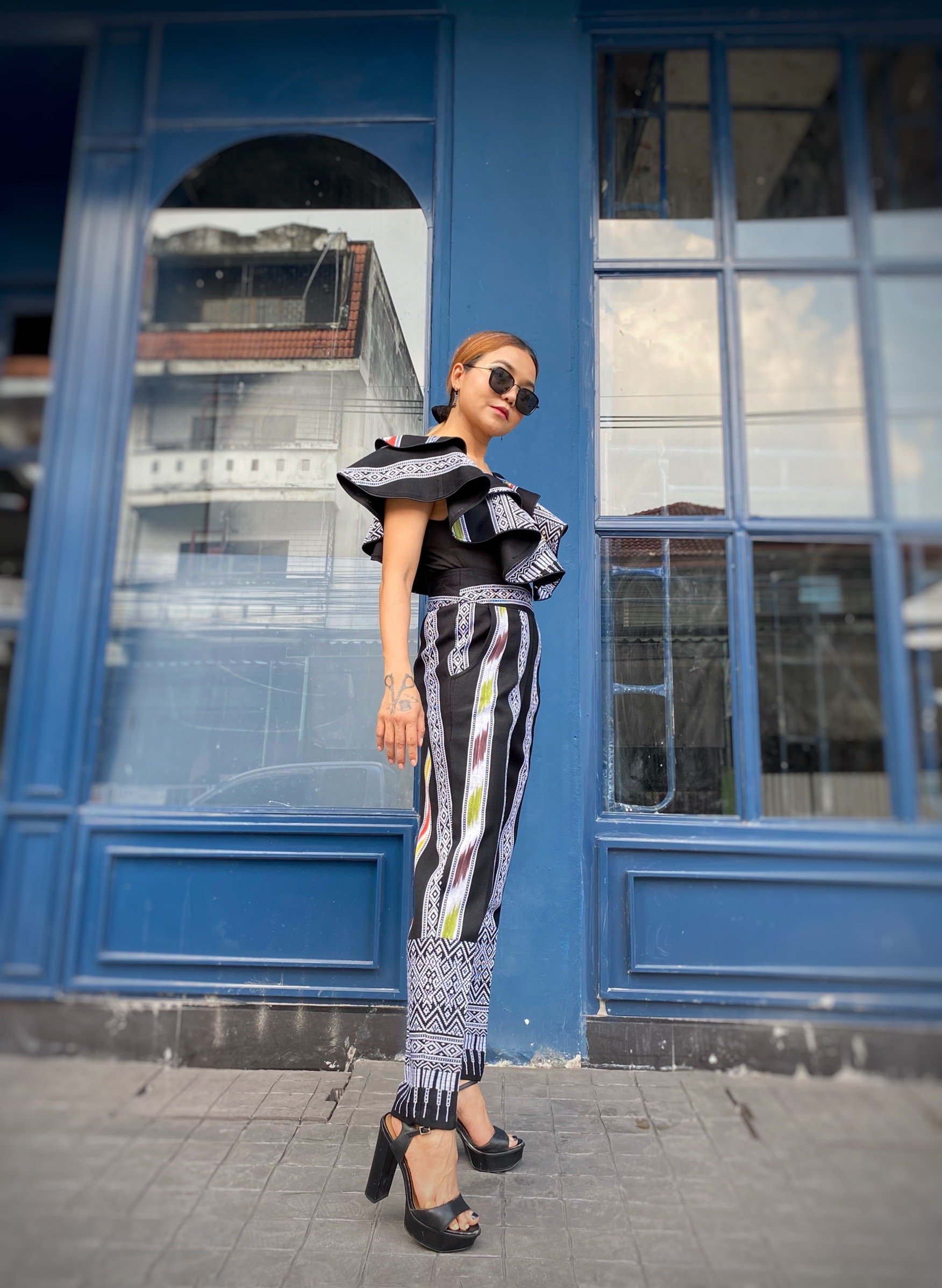 สื้อยืดคอจับจีบเฉียง มิกซ์แอนด์แมทช์ กับกางเกงจากผ้ามัดหมี่ ของดี จ.ลพบุรี
