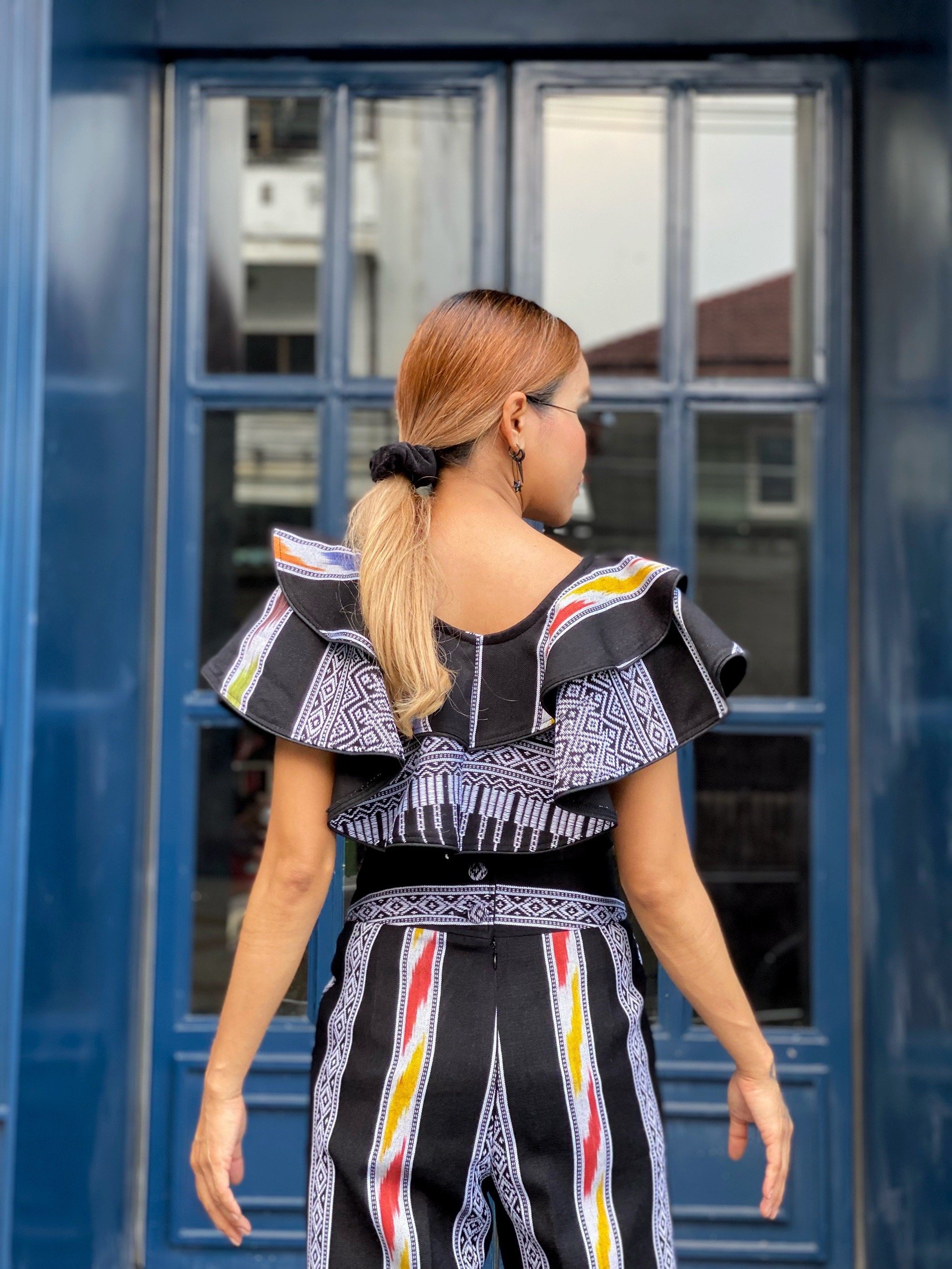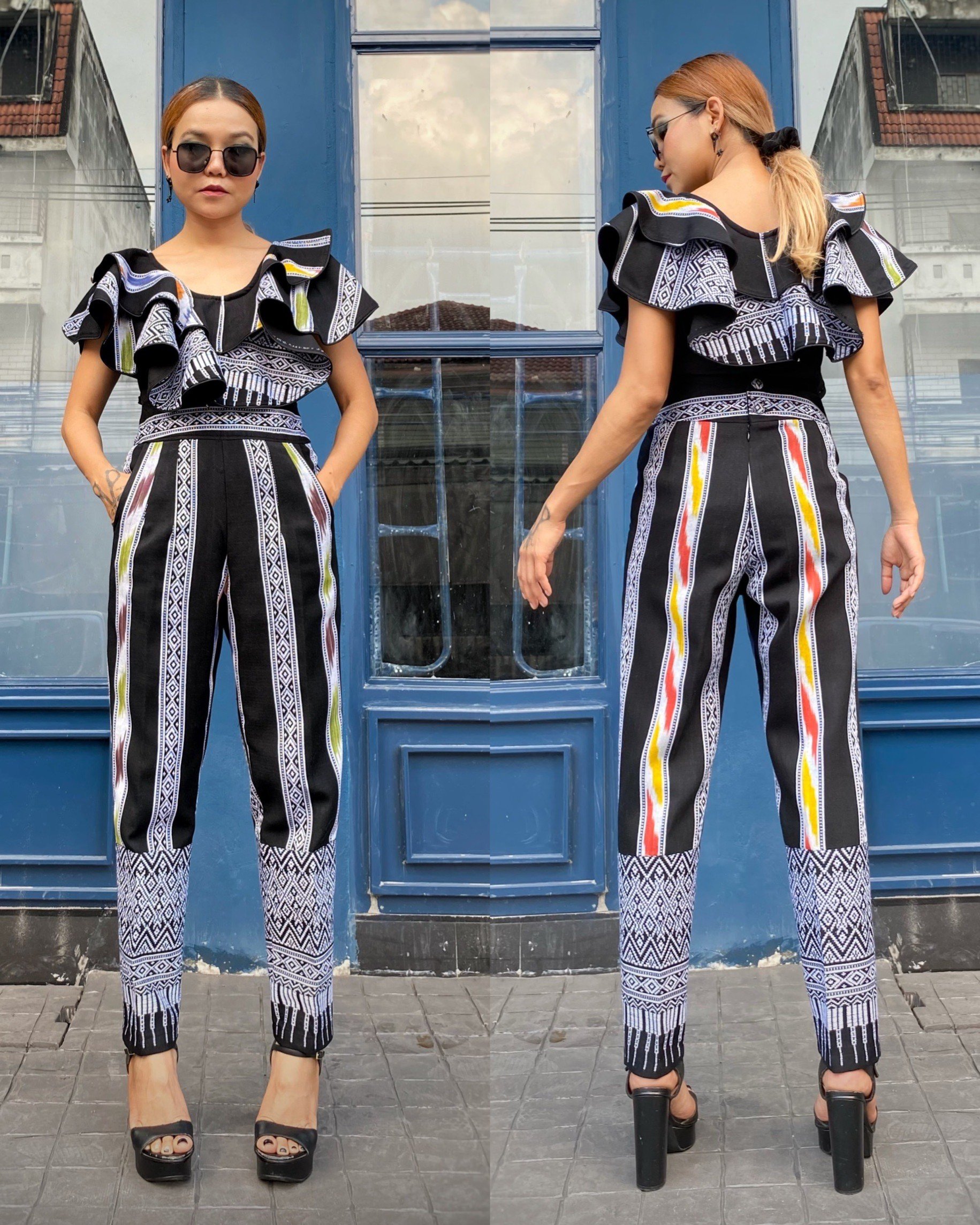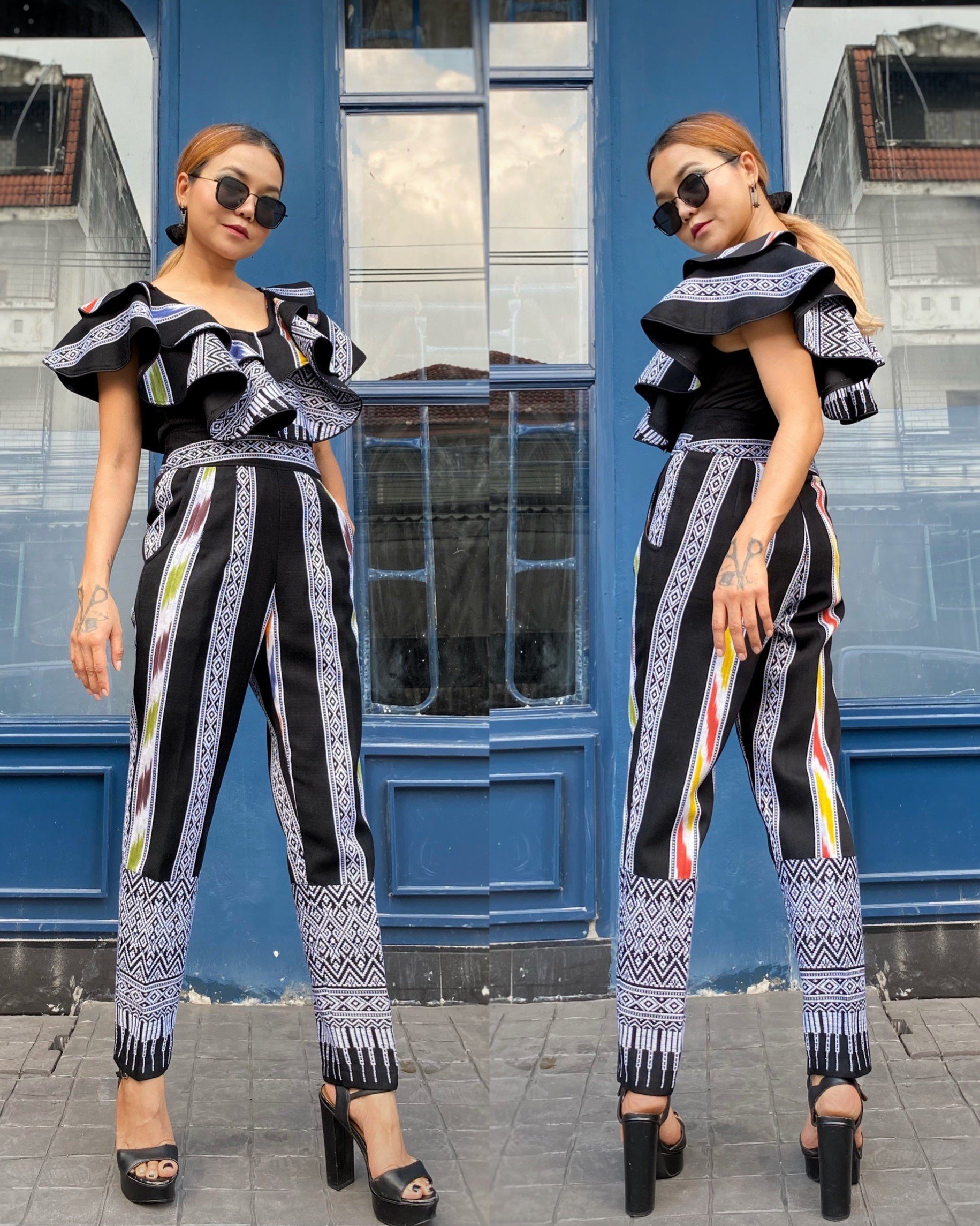 สื้อยืดคอจับจีบเฉียง มิกซ์แอนด์แมทช์ กับกางเกงจากผ้ามัดหมี่ ของดี จ.ลพบุรี