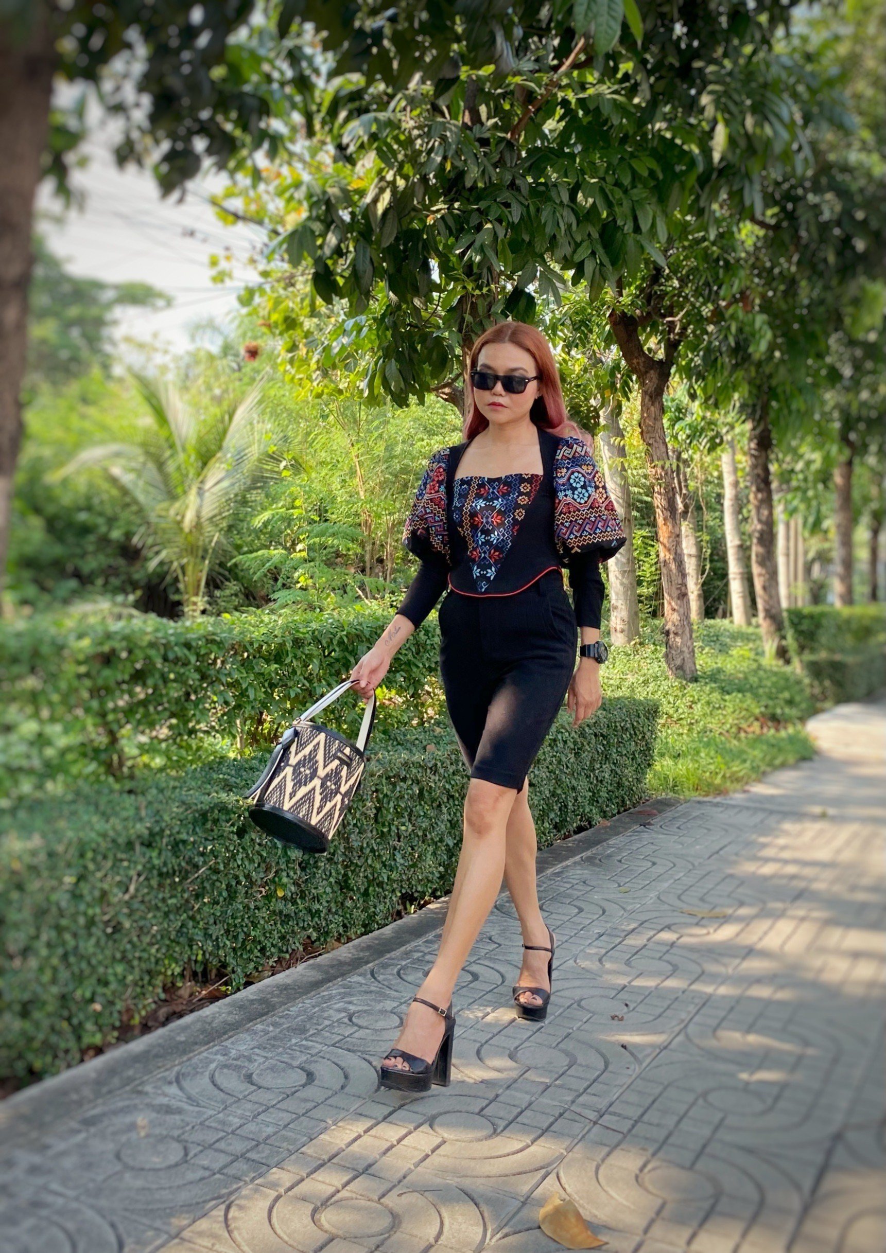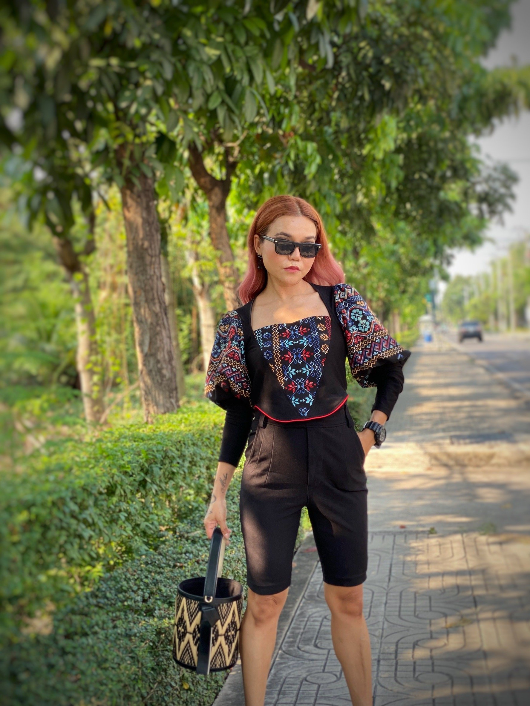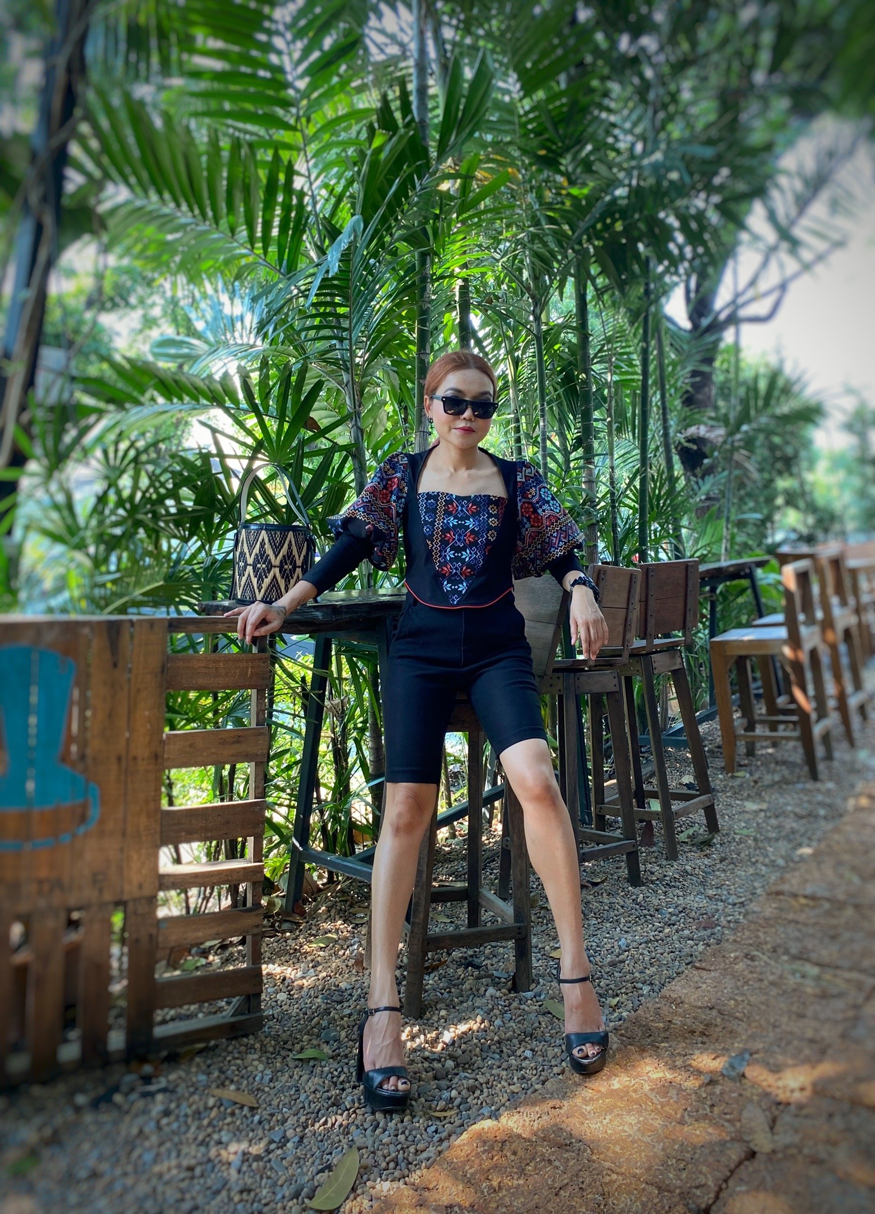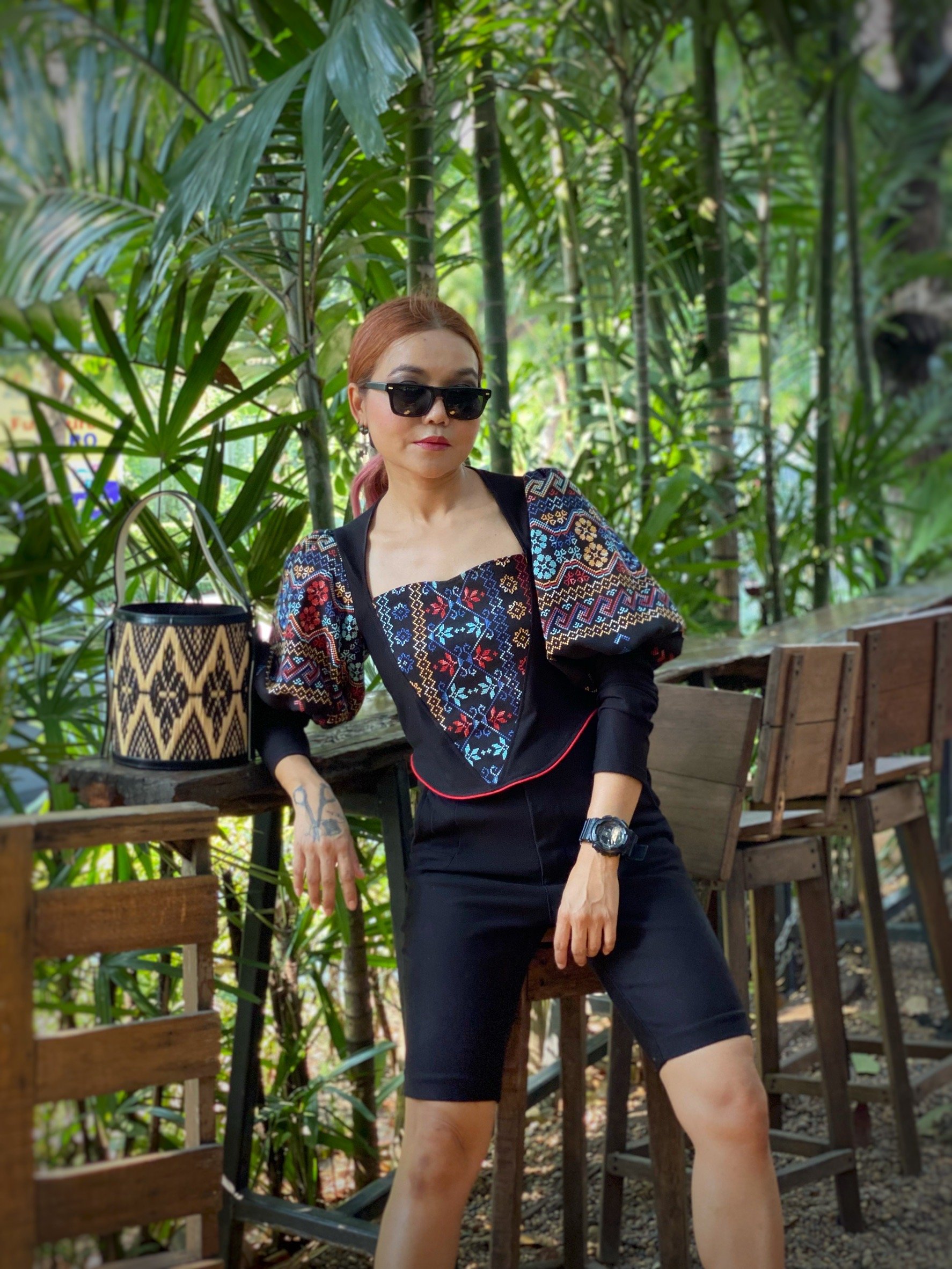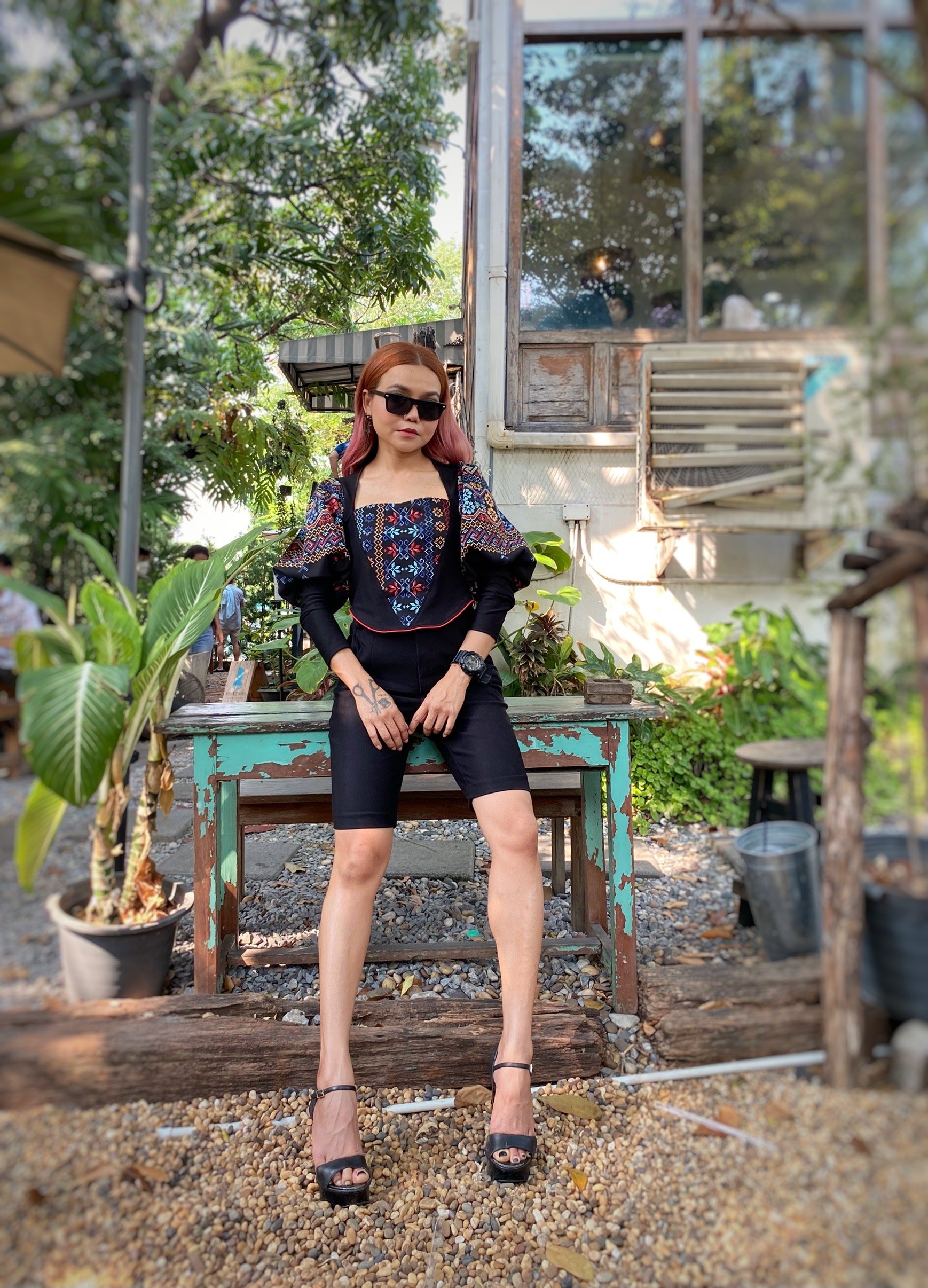 สื้อยืดคอจับจีบเฉียง มิกซ์แอนด์แมทช์ กับกางเกงจากผ้ามัดหมี่ ของดี จ.ลพบุรี