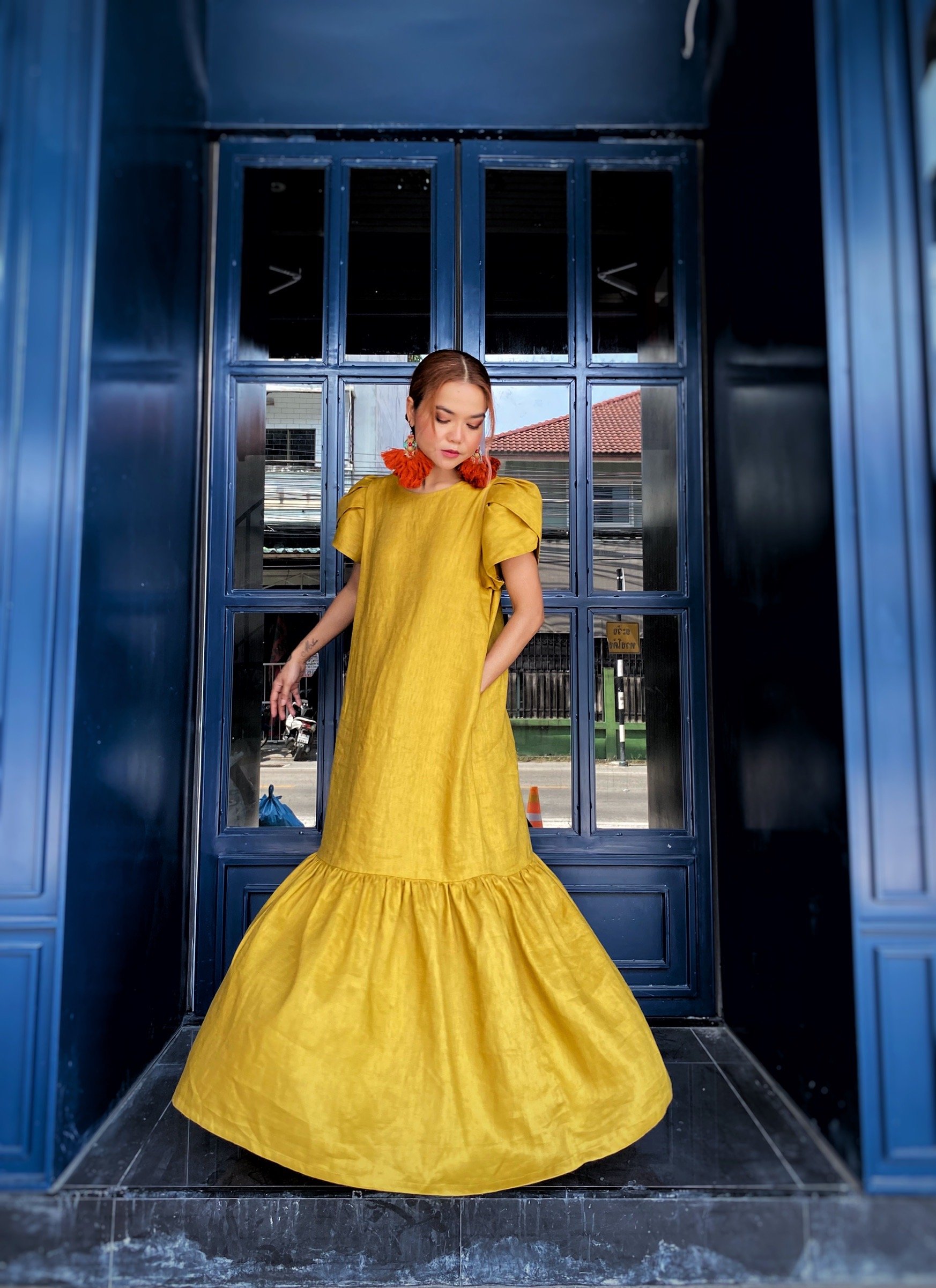 Ruffle Layer Maxi Dress จากผ้าพิมพ์ลายช้าง