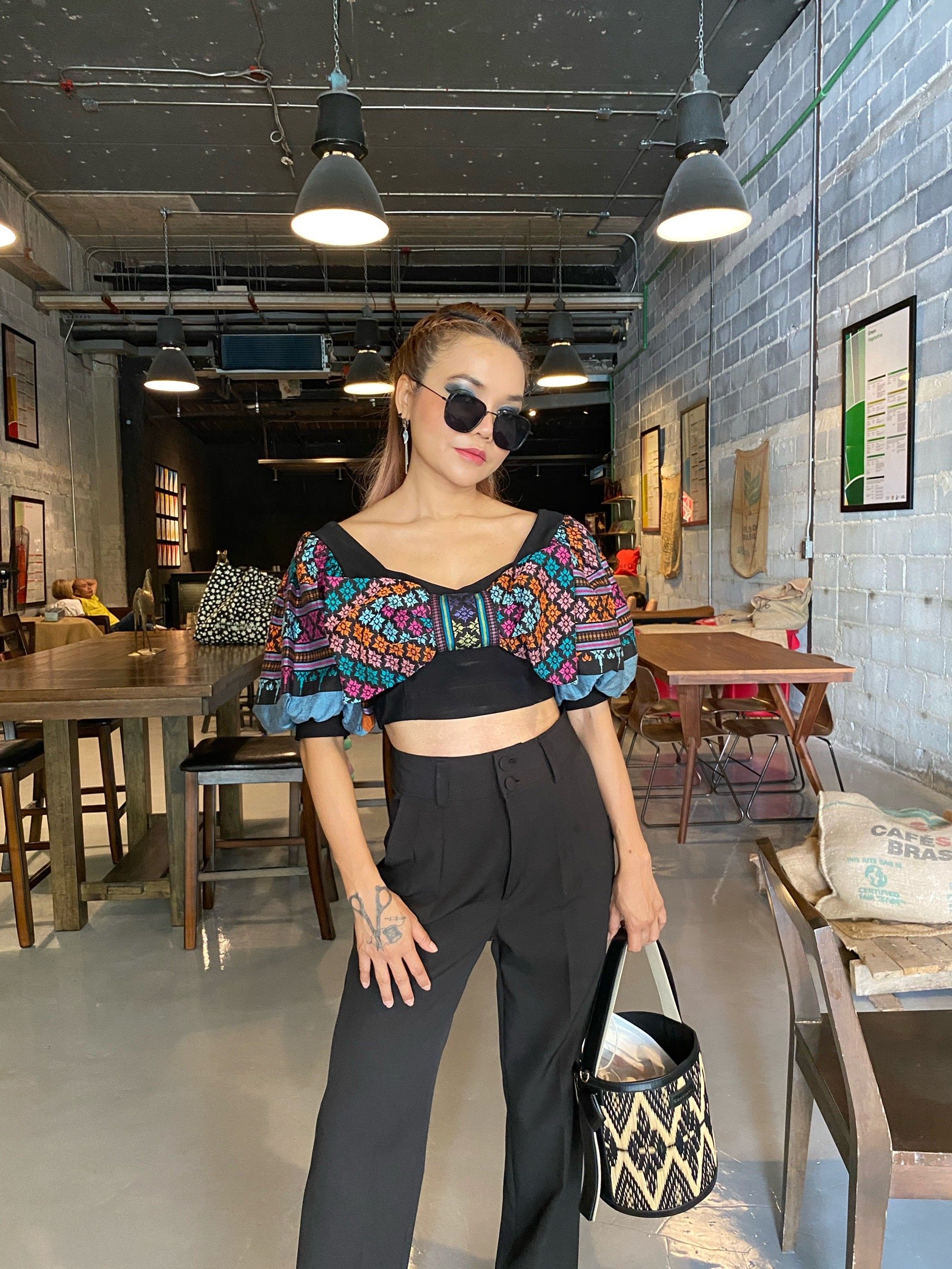สื้อยืดคอจับจีบเฉียง มิกซ์แอนด์แมทช์ กับกางเกงจากผ้ามัดหมี่ ของดี จ.ลพบุรี