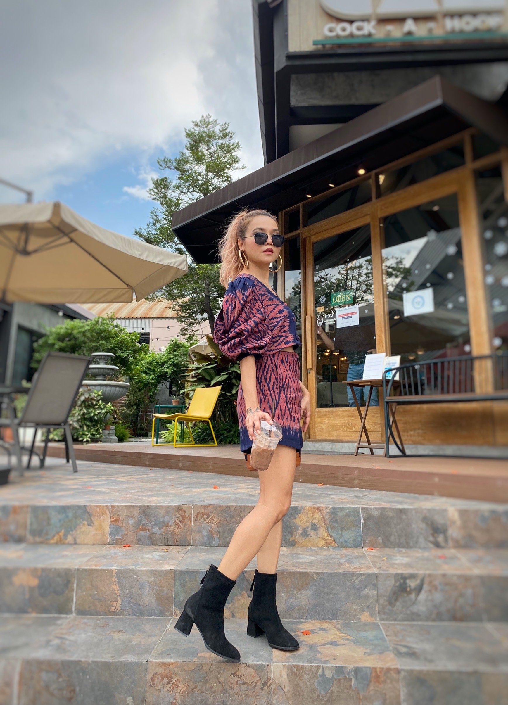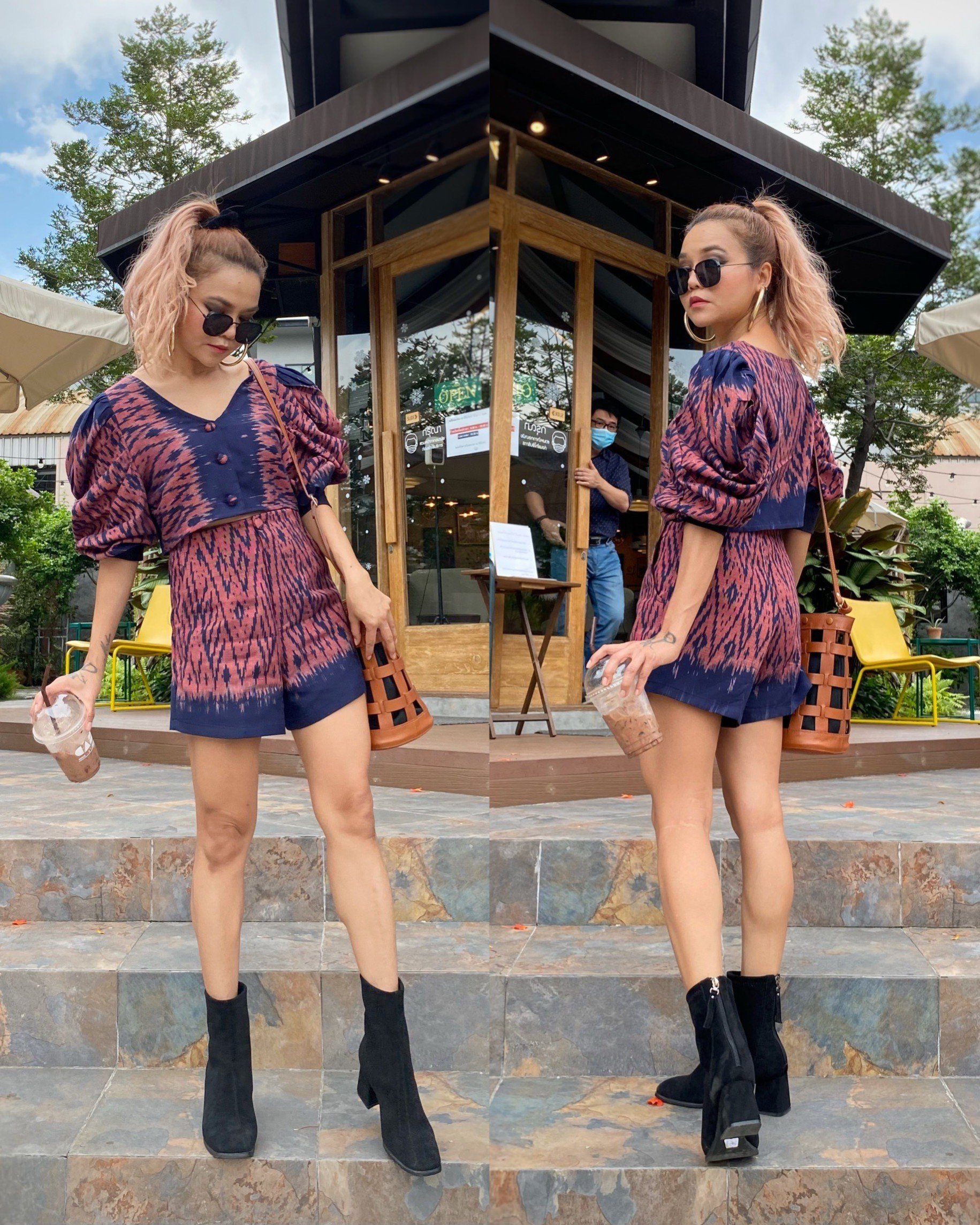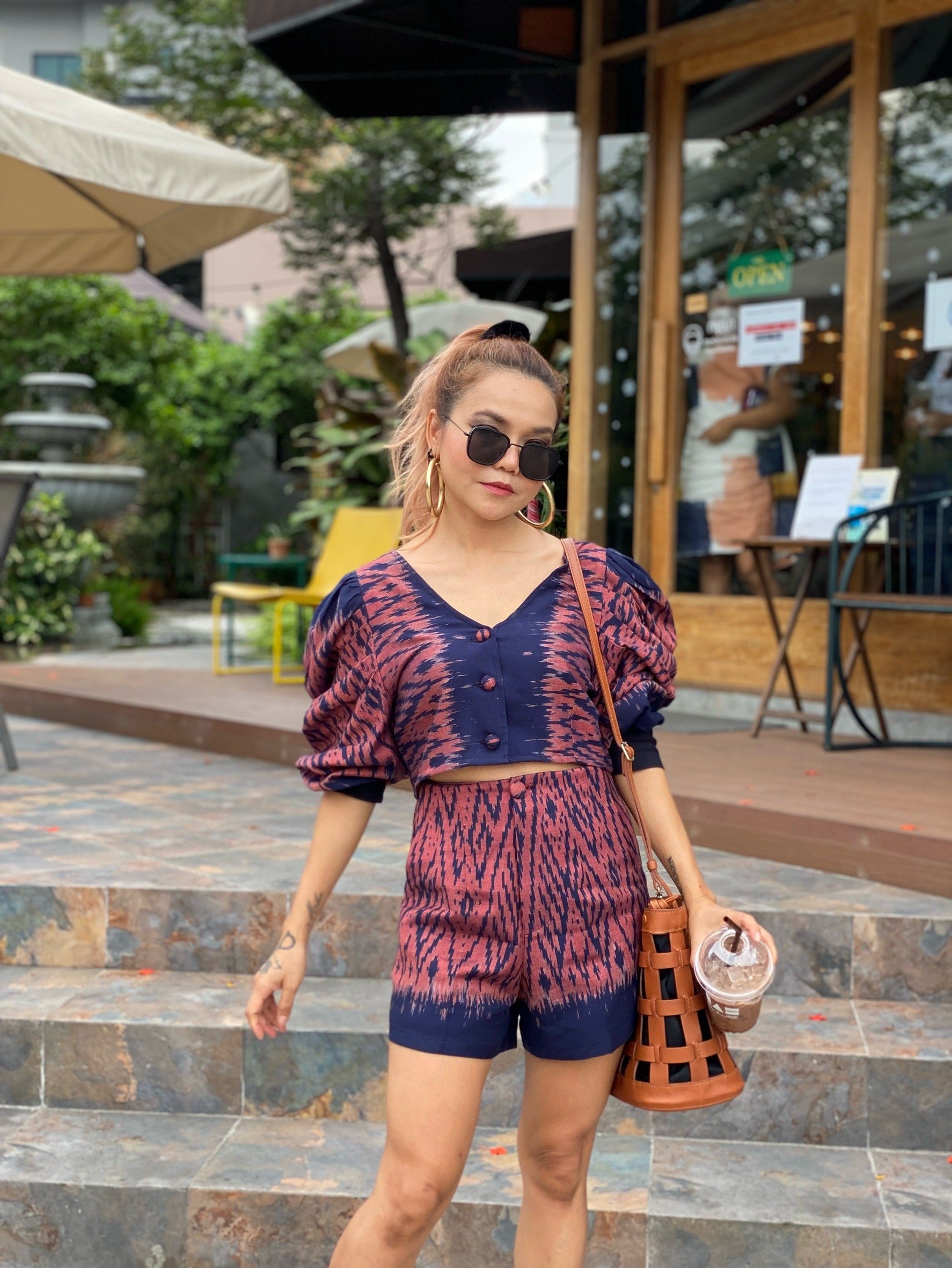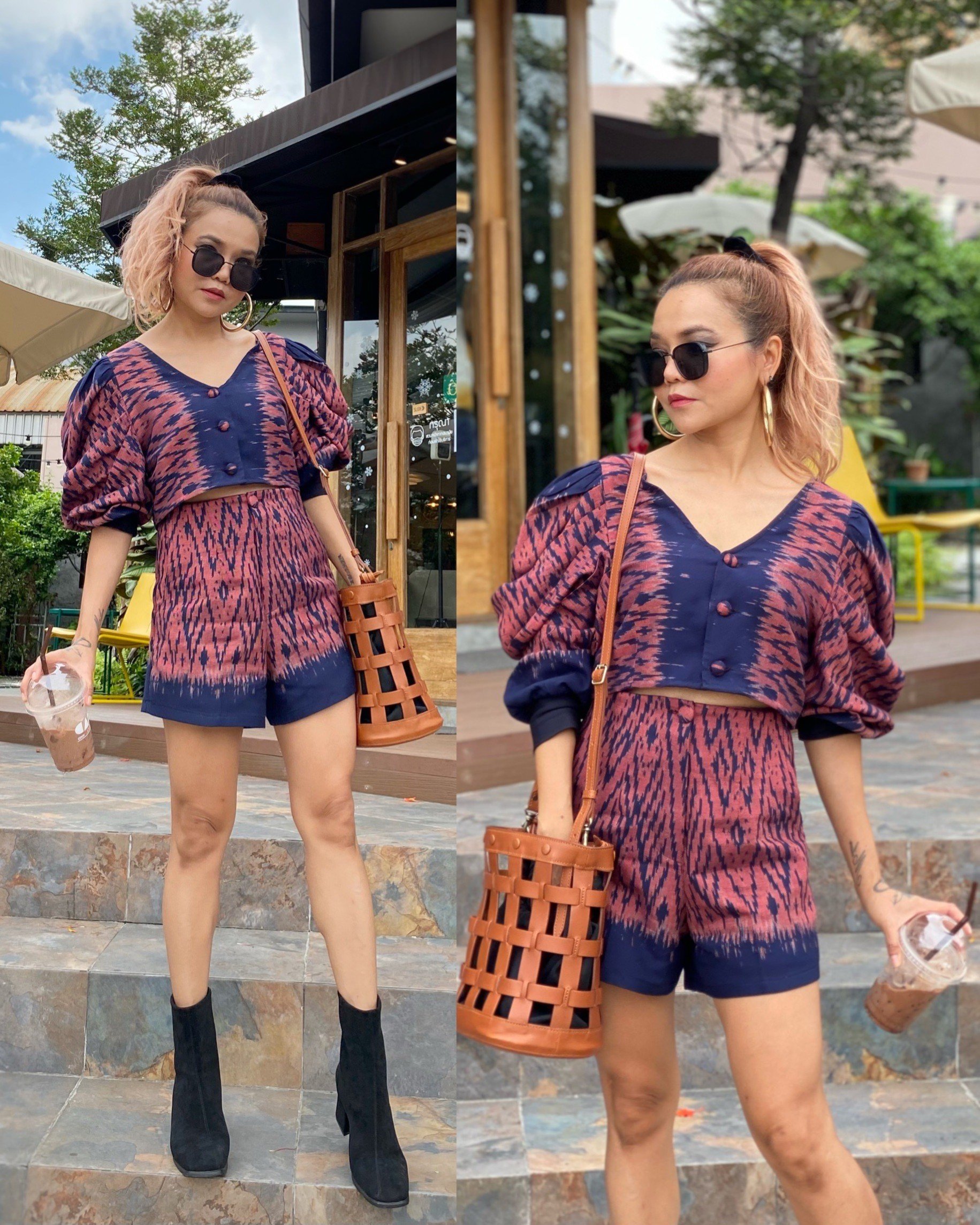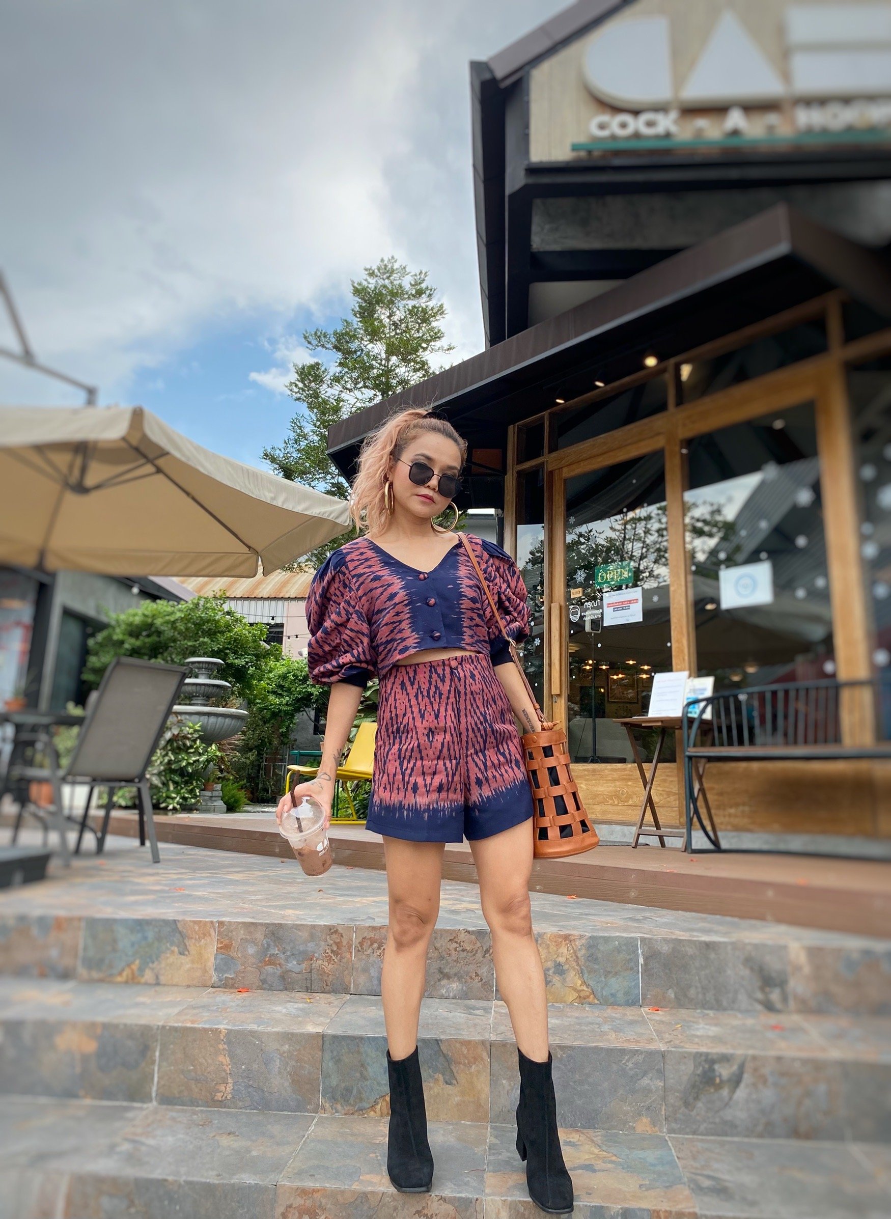 สื้อยืดคอจับจีบเฉียง มิกซ์แอนด์แมทช์ กับกางเกงจากผ้ามัดหมี่ ของดี จ.ลพบุรี