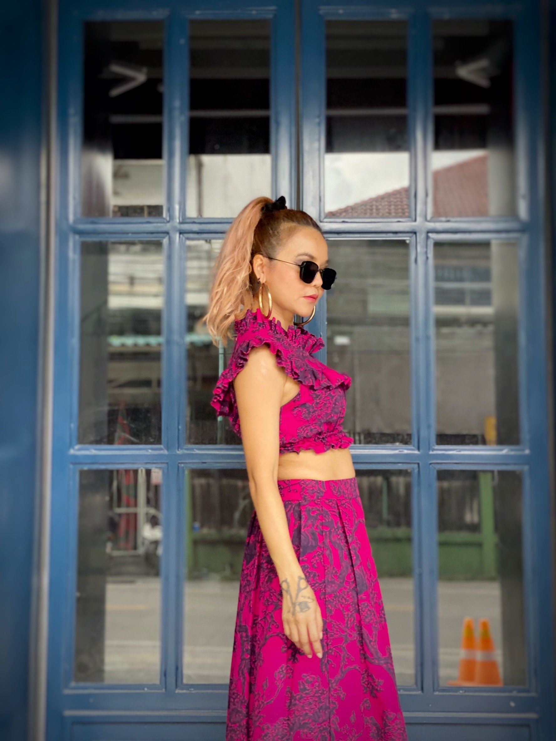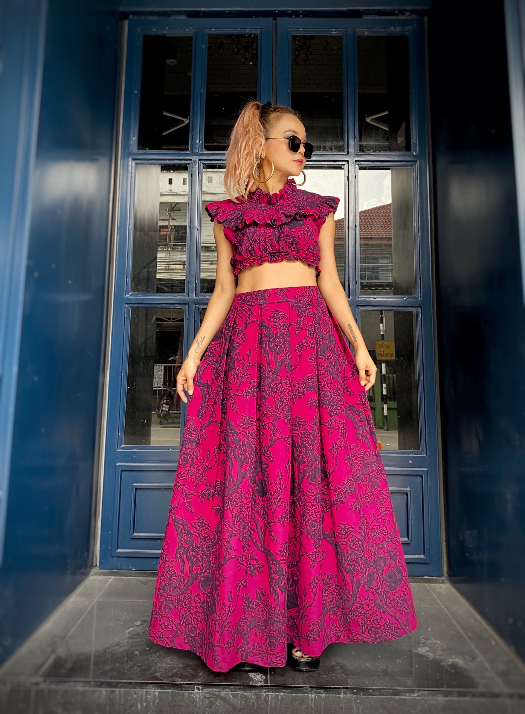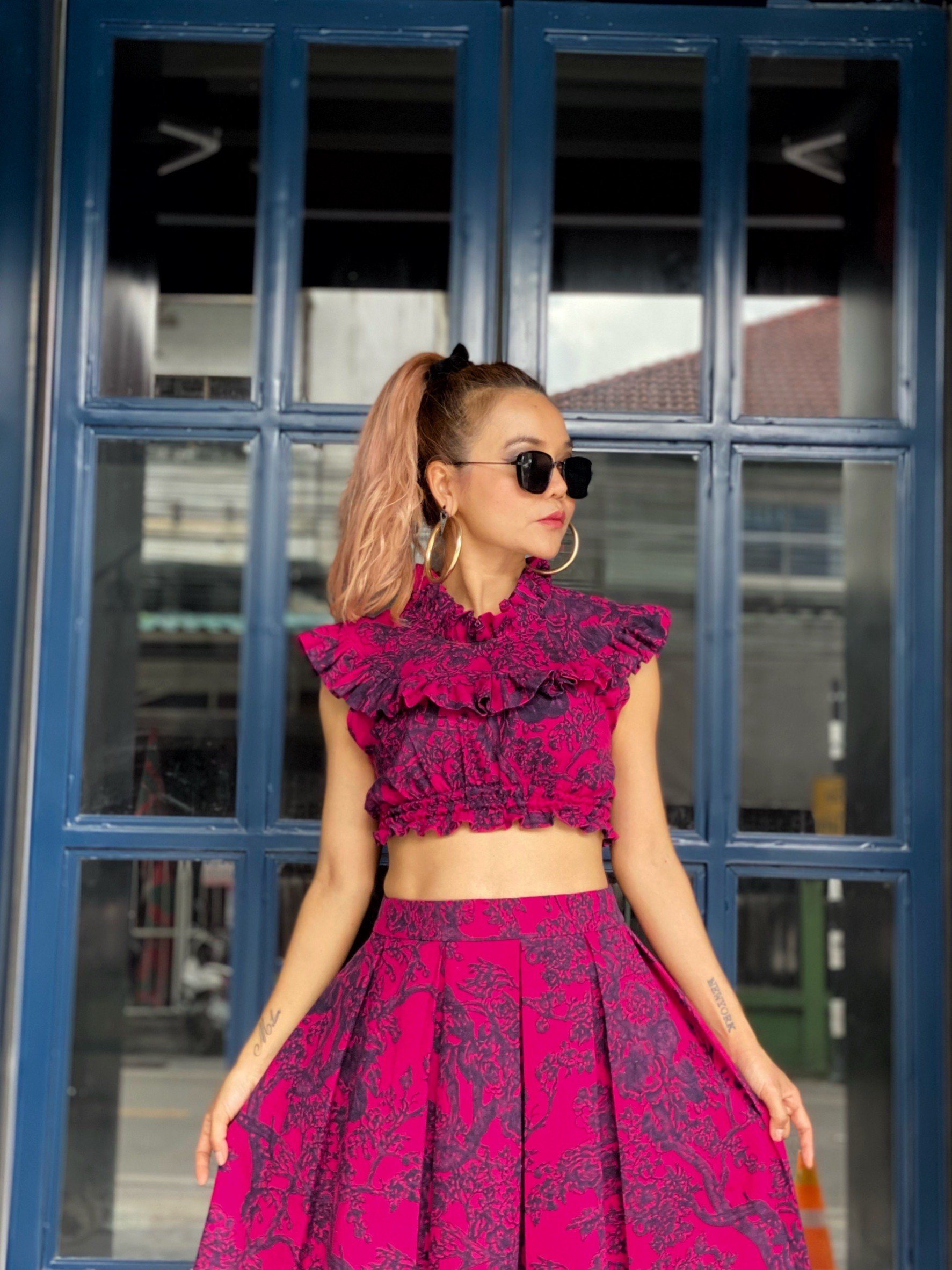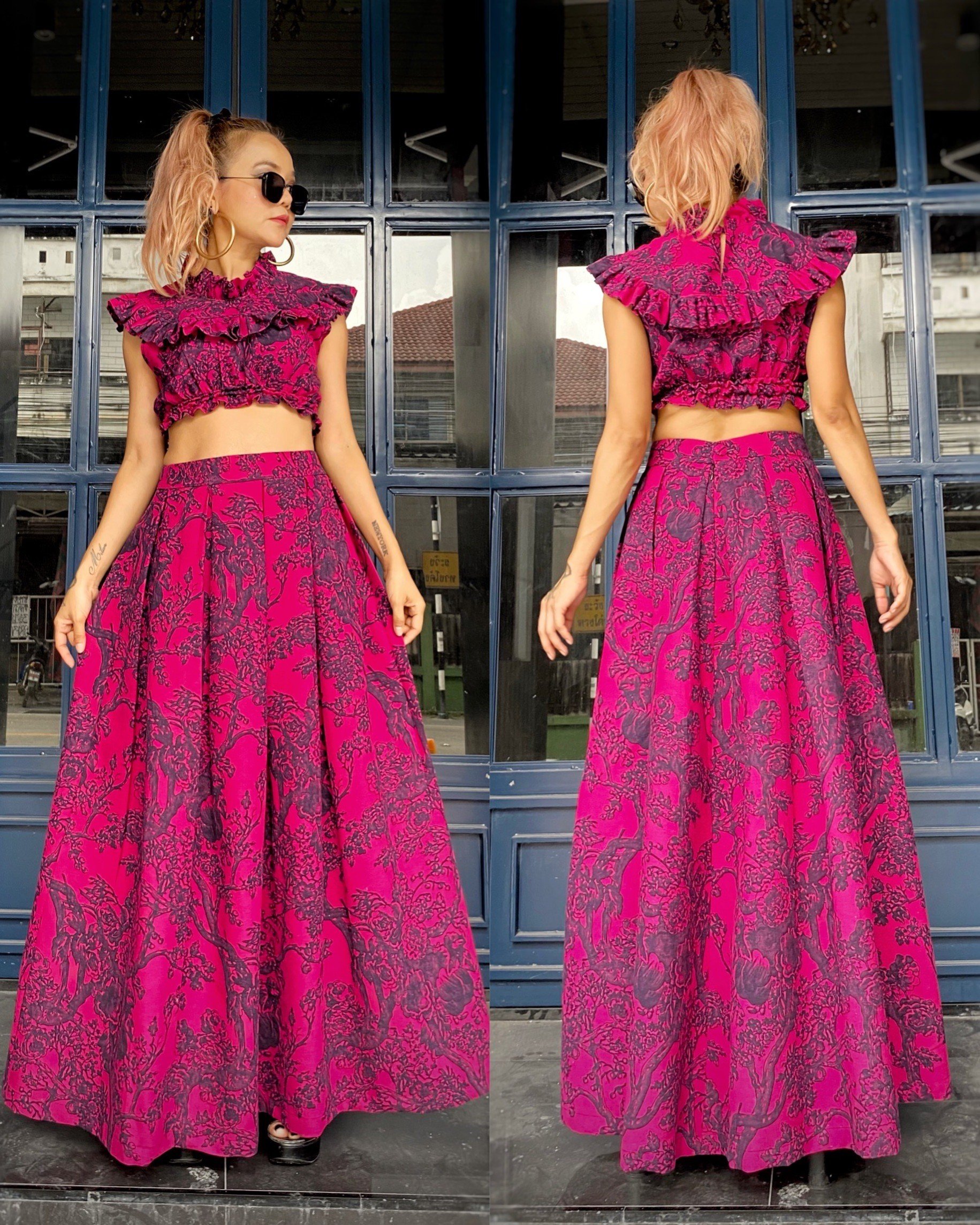 ชุดเซตเสื้อcrop+กระโปรง full skirt