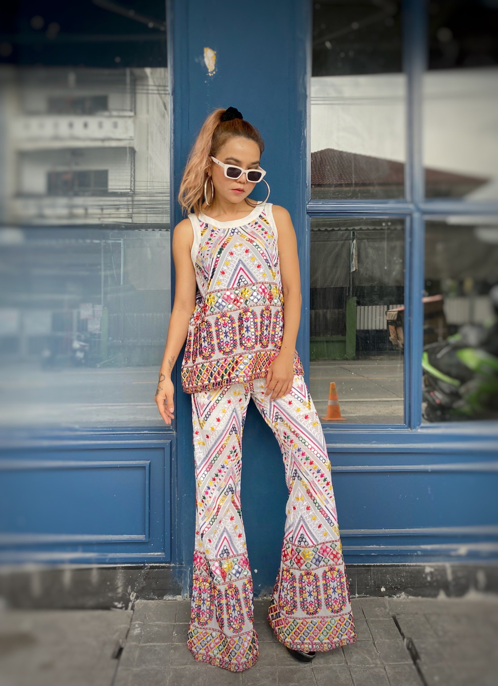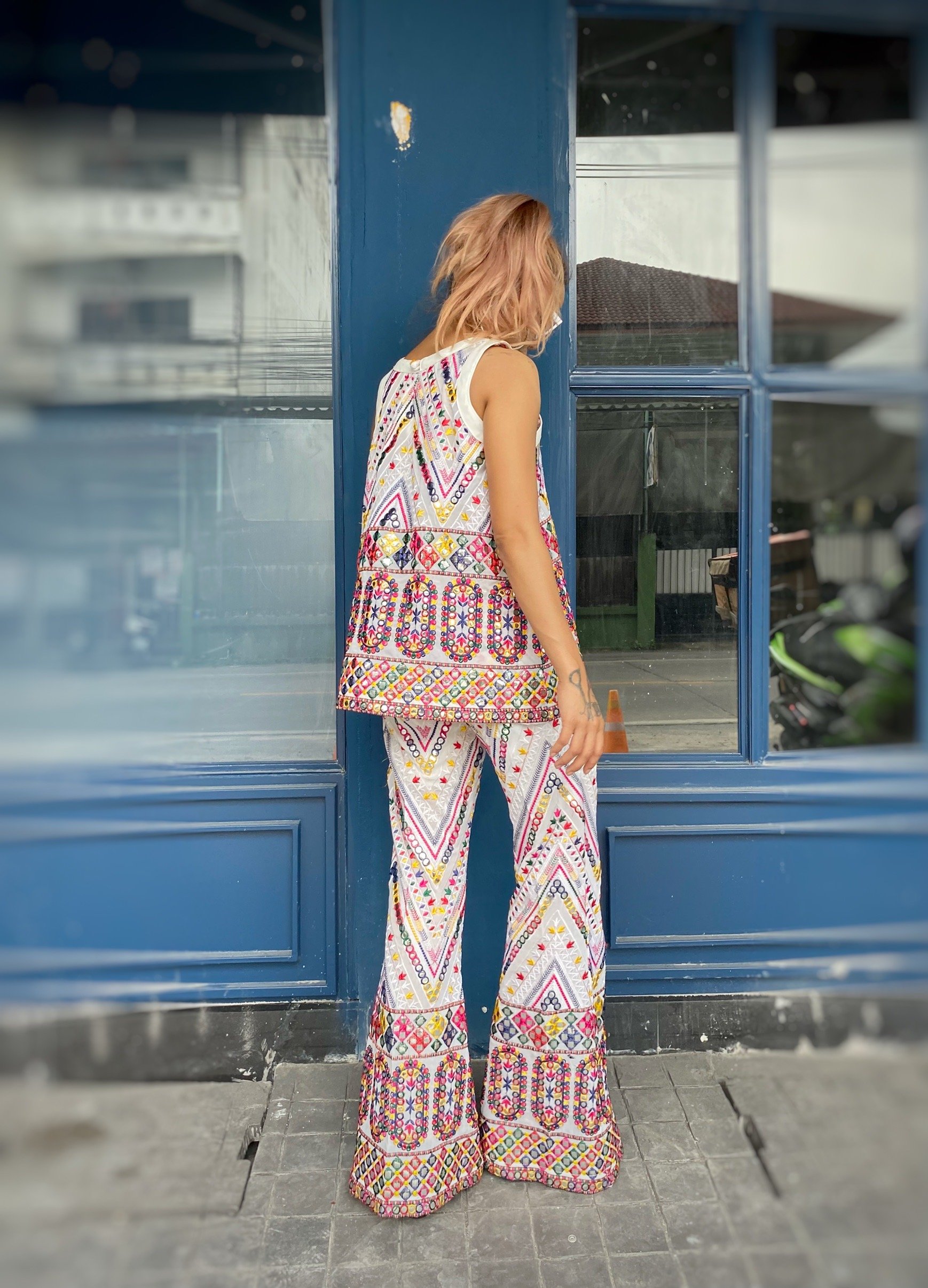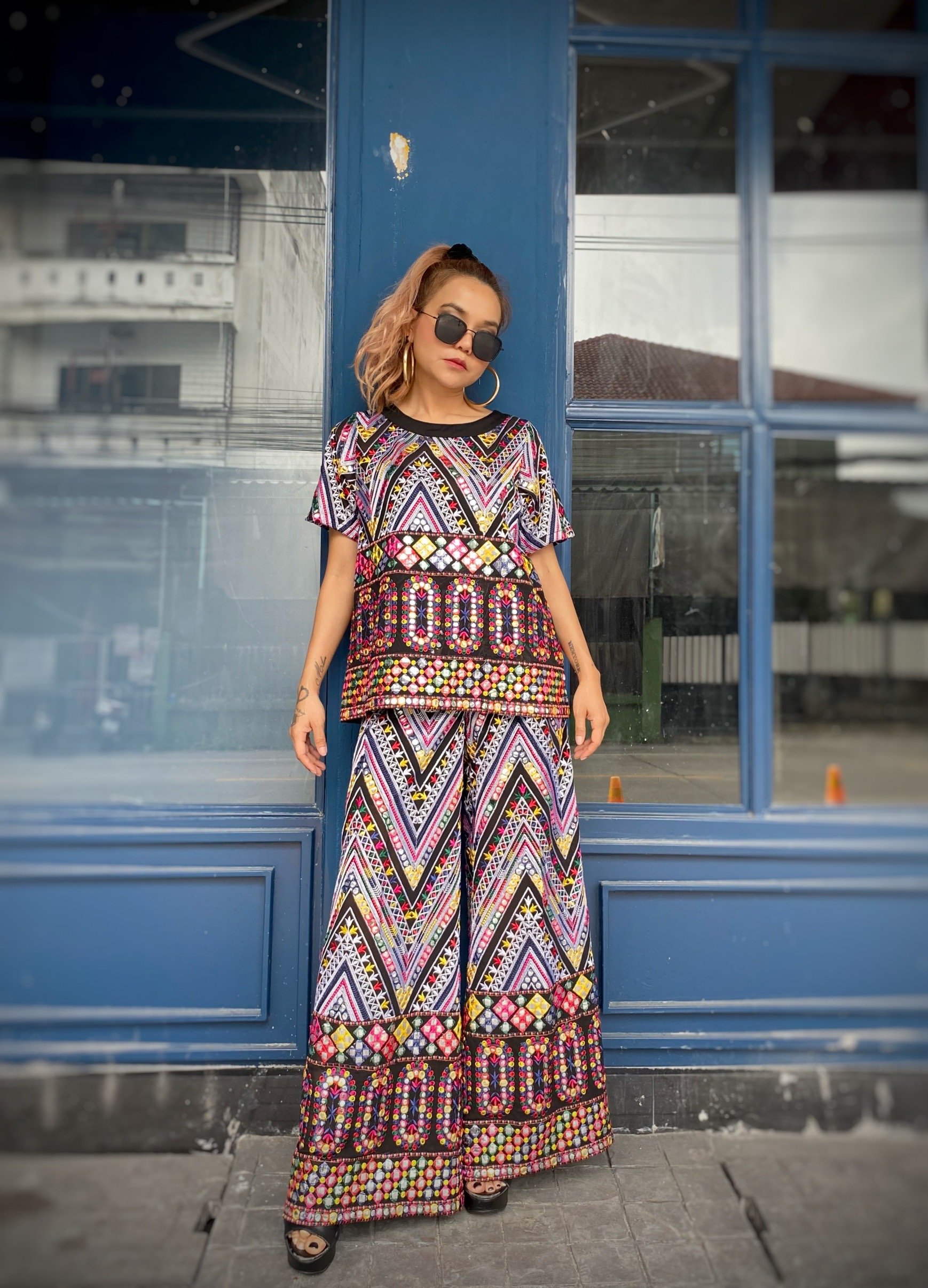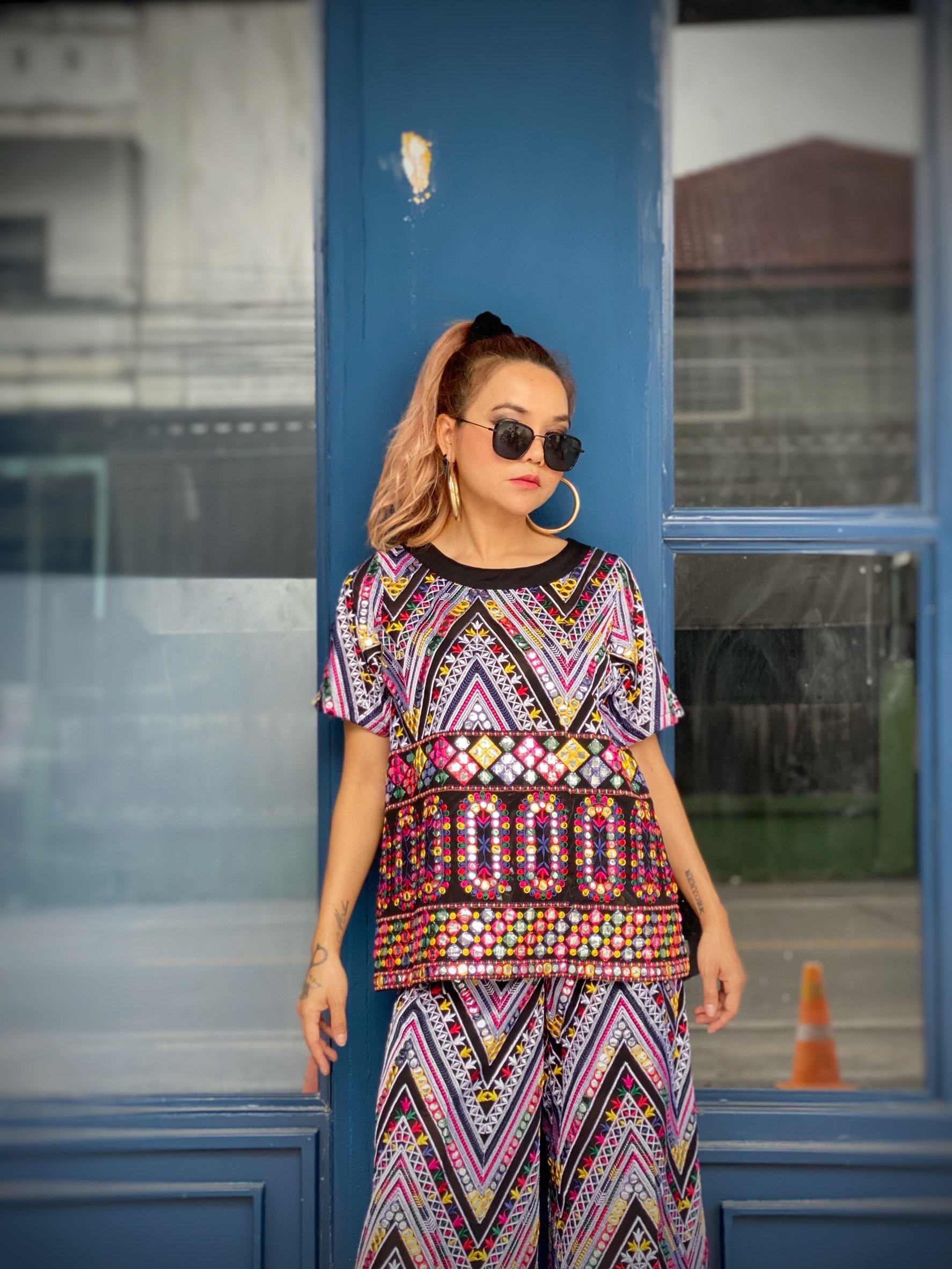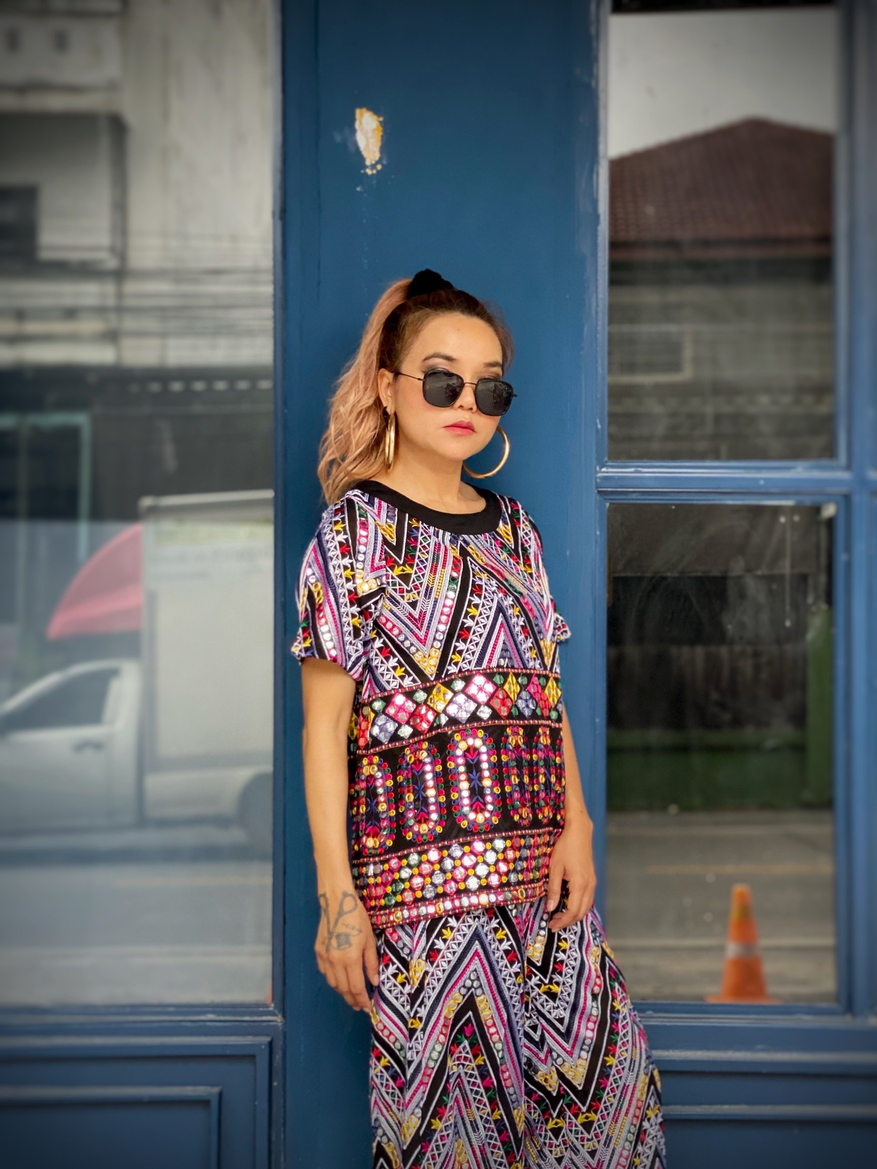สื้อยืดคอจับจีบเฉียง มิกซ์แอนด์แมทช์ กับกางเกงจากผ้ามัดหมี่ ของดี จ.ลพบุรี