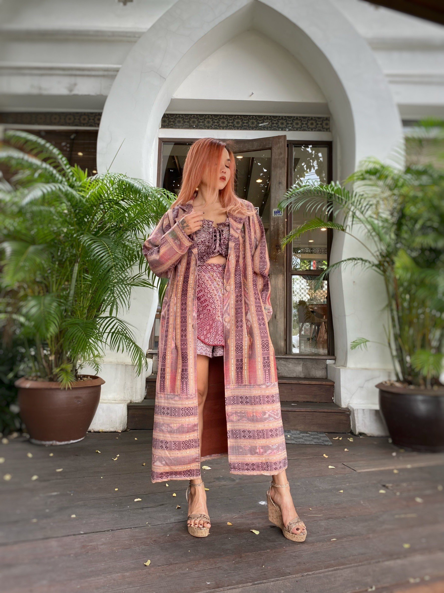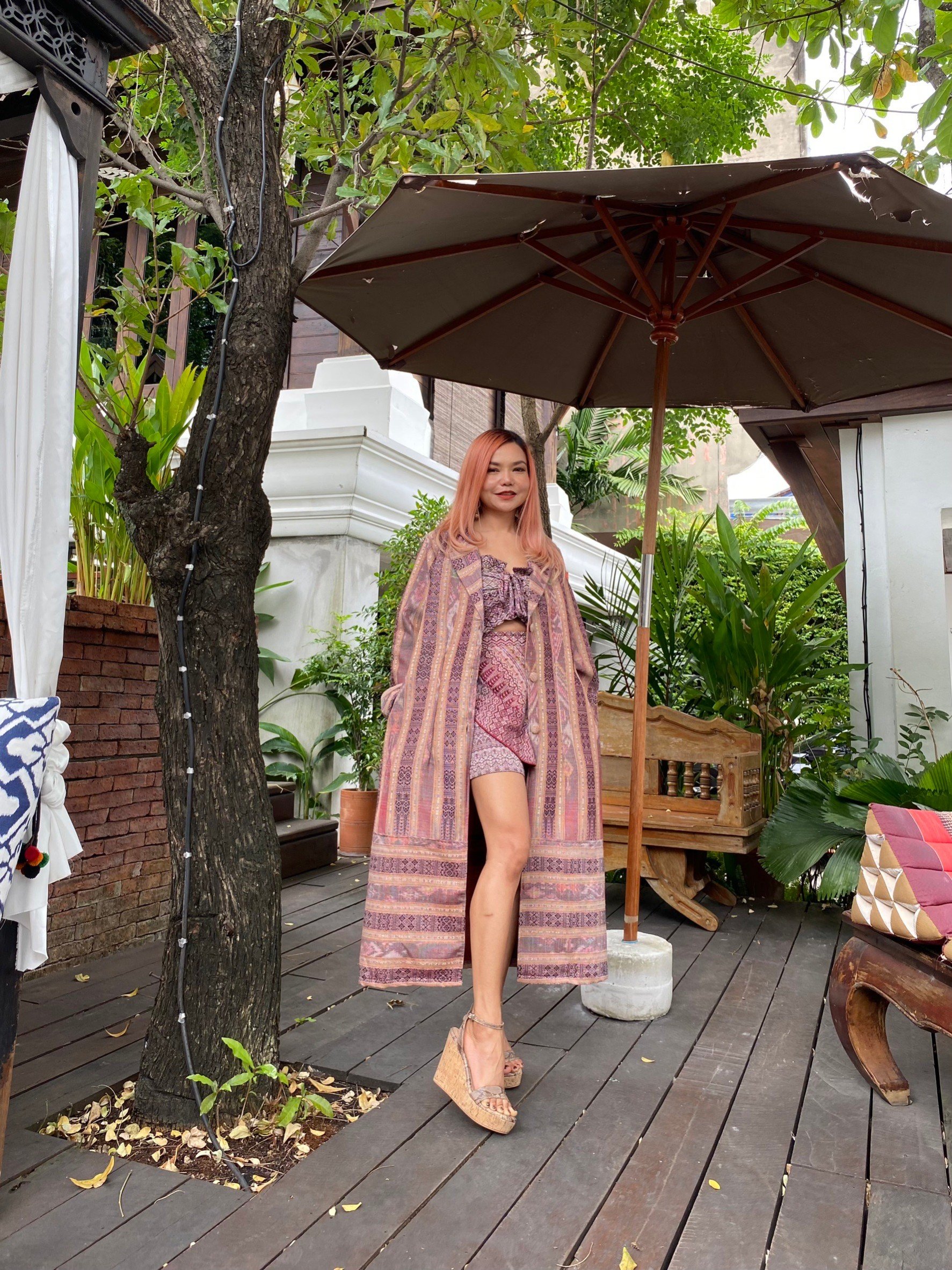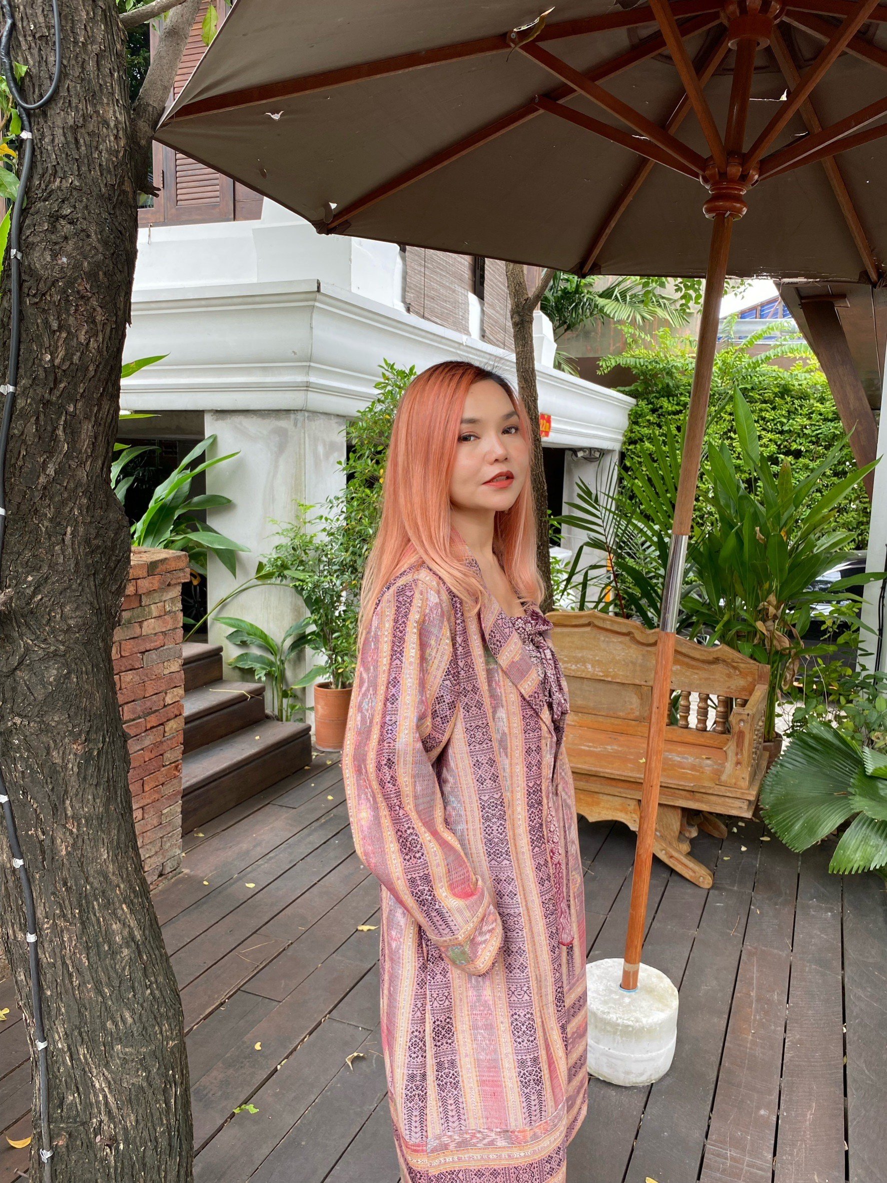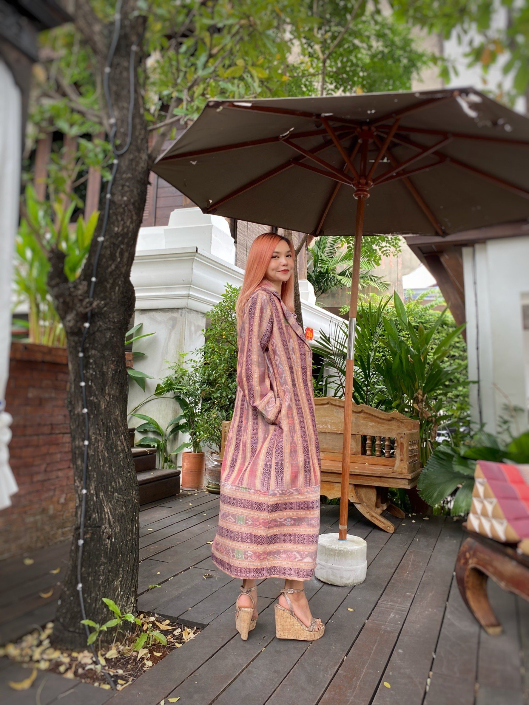 ชุด Set ผ้ามัดหมี่ลายศิลาล้อมเพชร ของดีจ.กำแพงเพชร ตัดเย็บร่วมกับผ้าไทลื้อ ของดี จ.น่าน