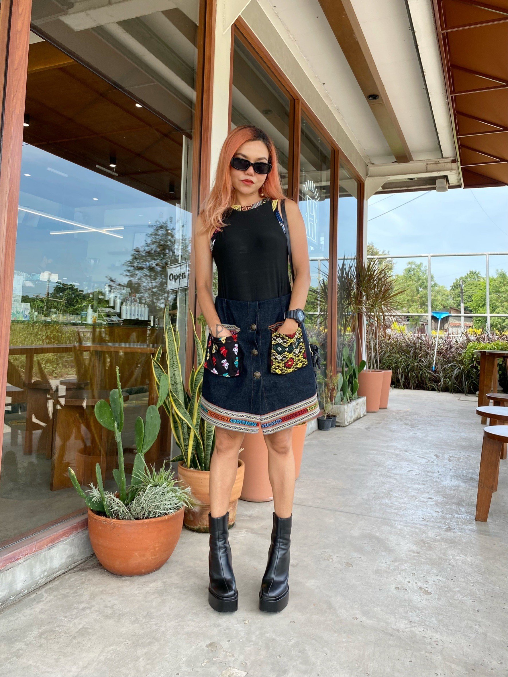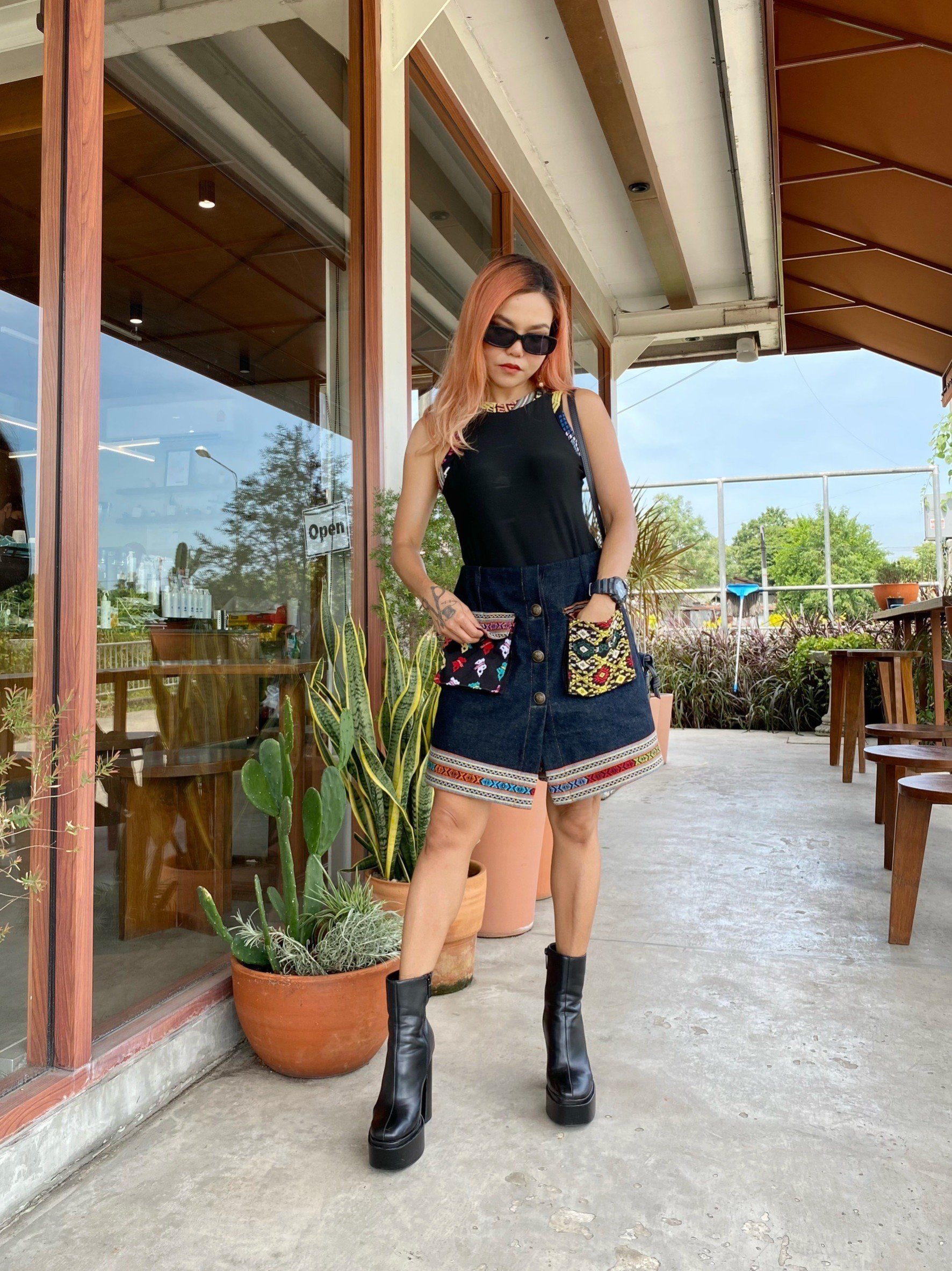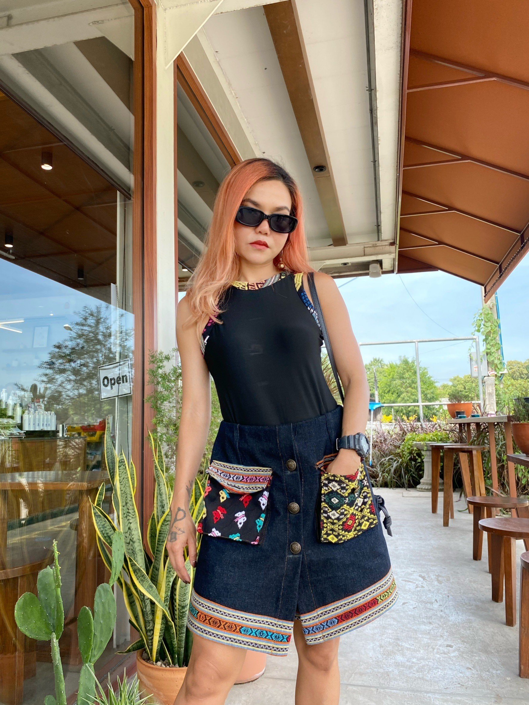 สื้อยืดคอจับจีบเฉียง มิกซ์แอนด์แมทช์ กับกางเกงจากผ้ามัดหมี่ ของดี จ.ลพบุรี