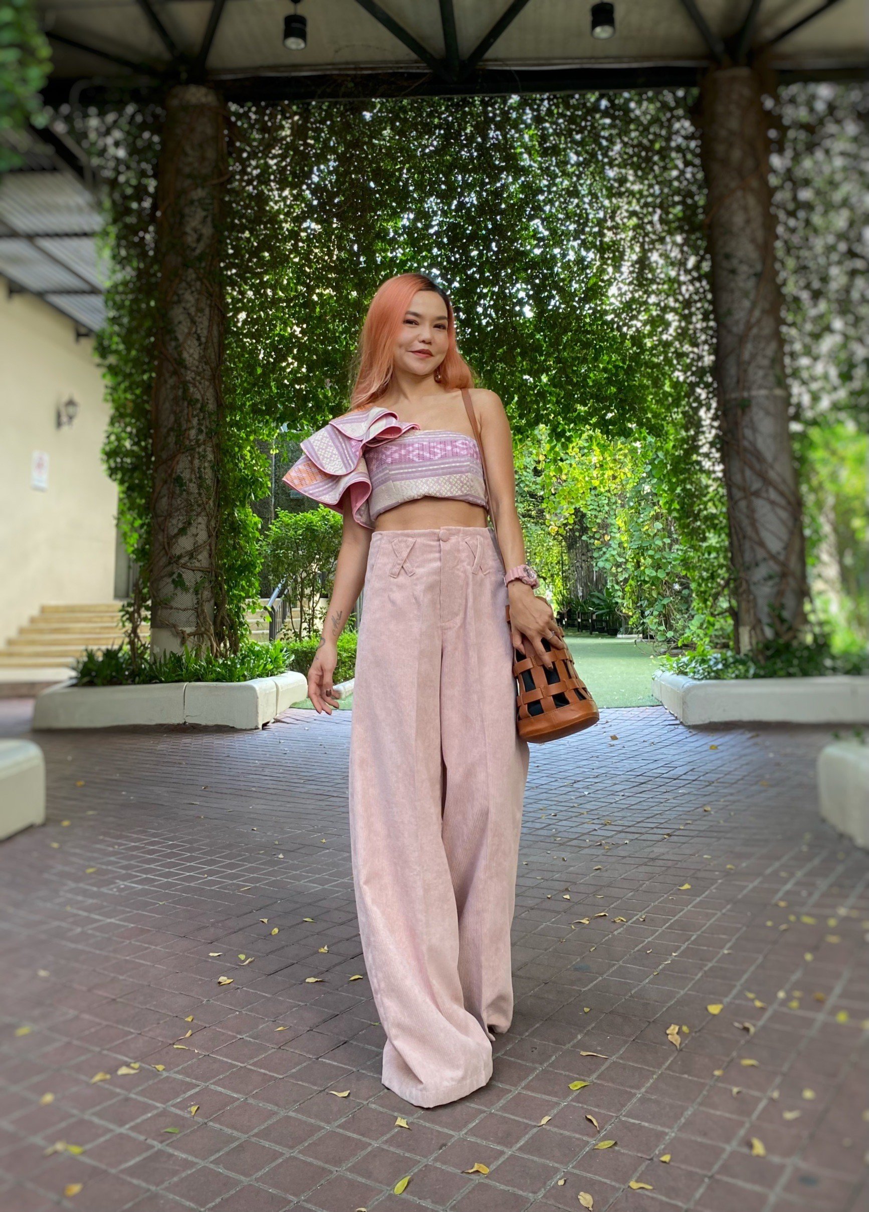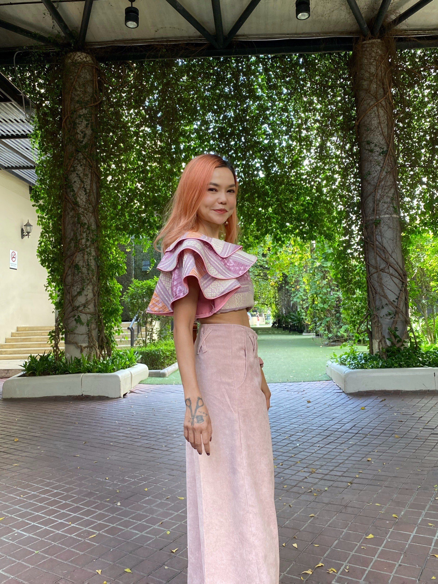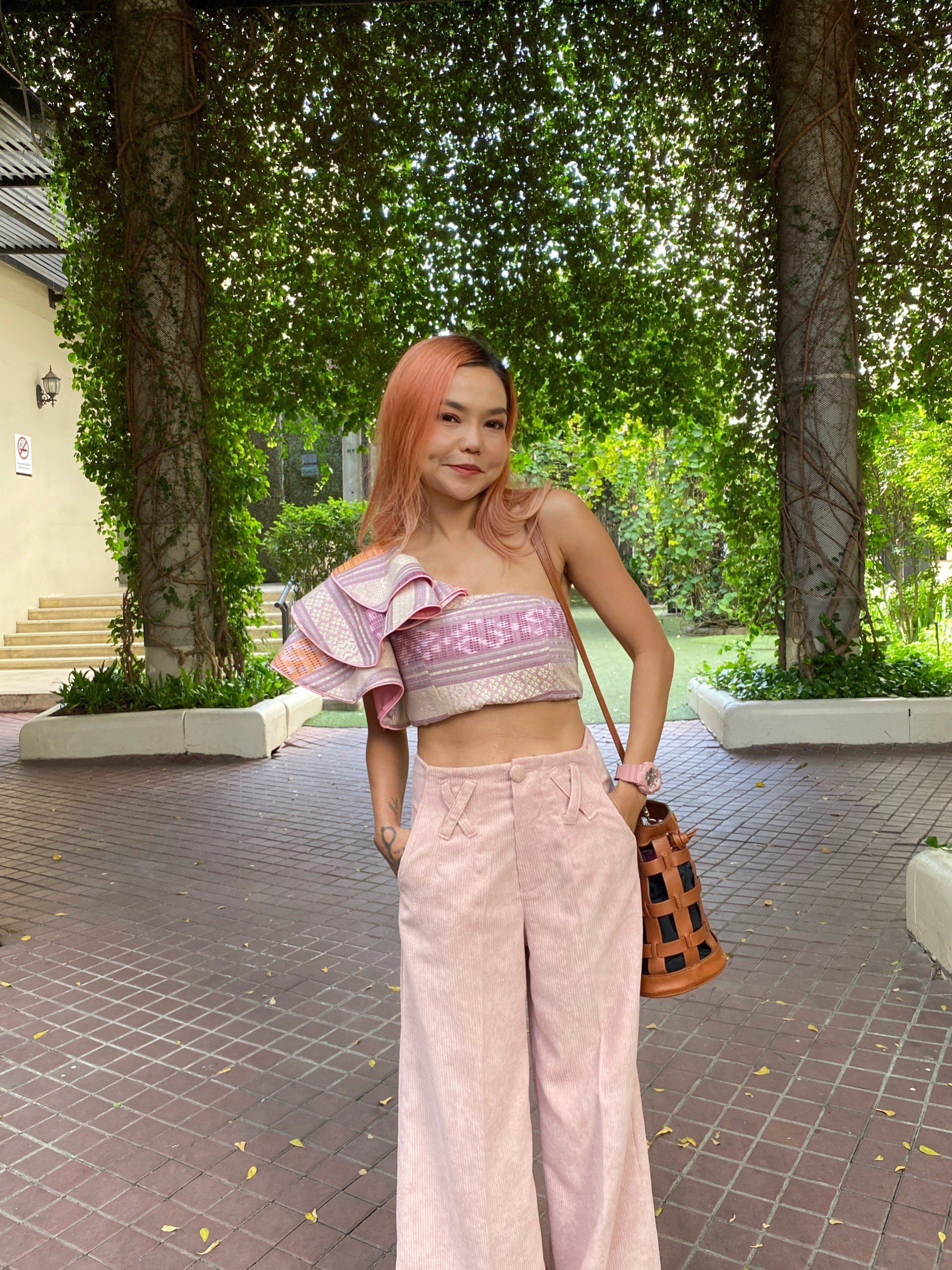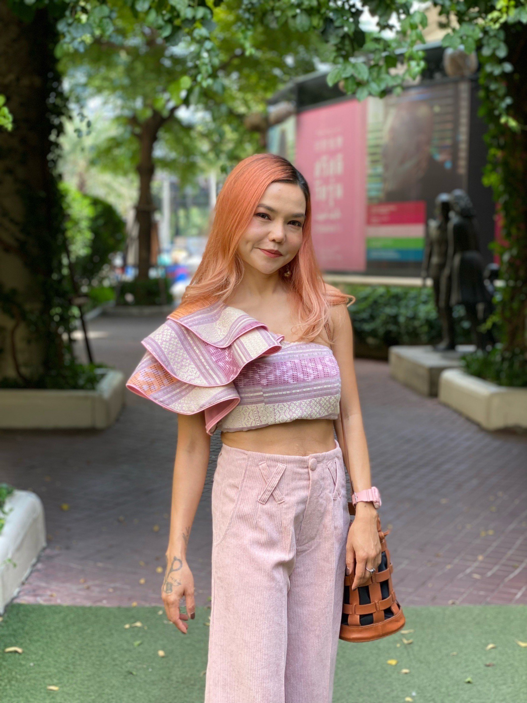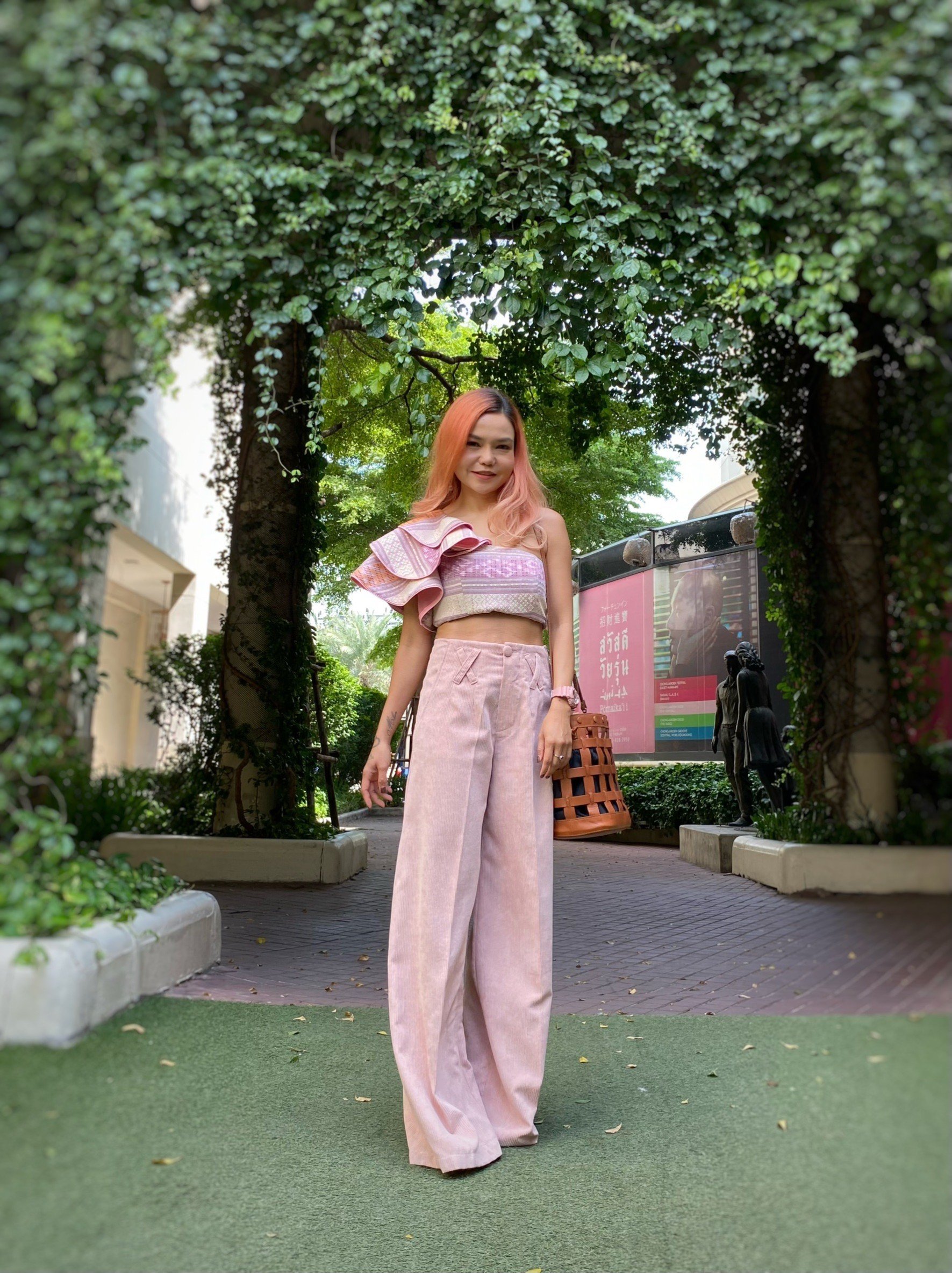 สื้อยืดคอจับจีบเฉียง มิกซ์แอนด์แมทช์ กับกางเกงจากผ้ามัดหมี่ ของดี จ.ลพบุรี