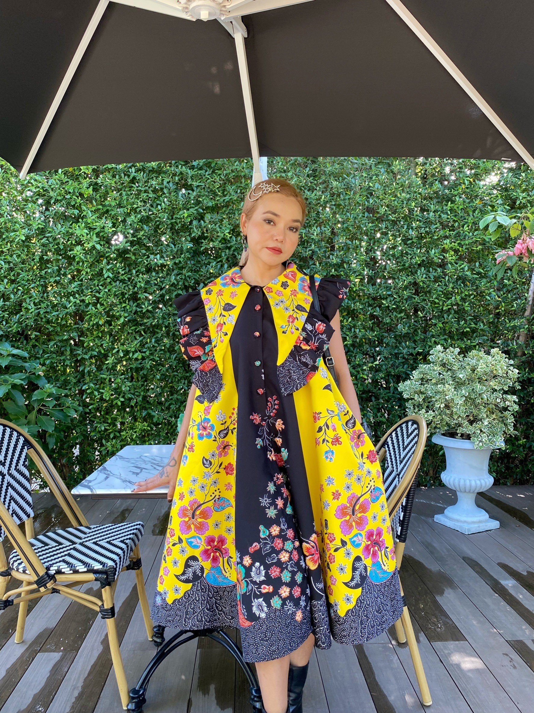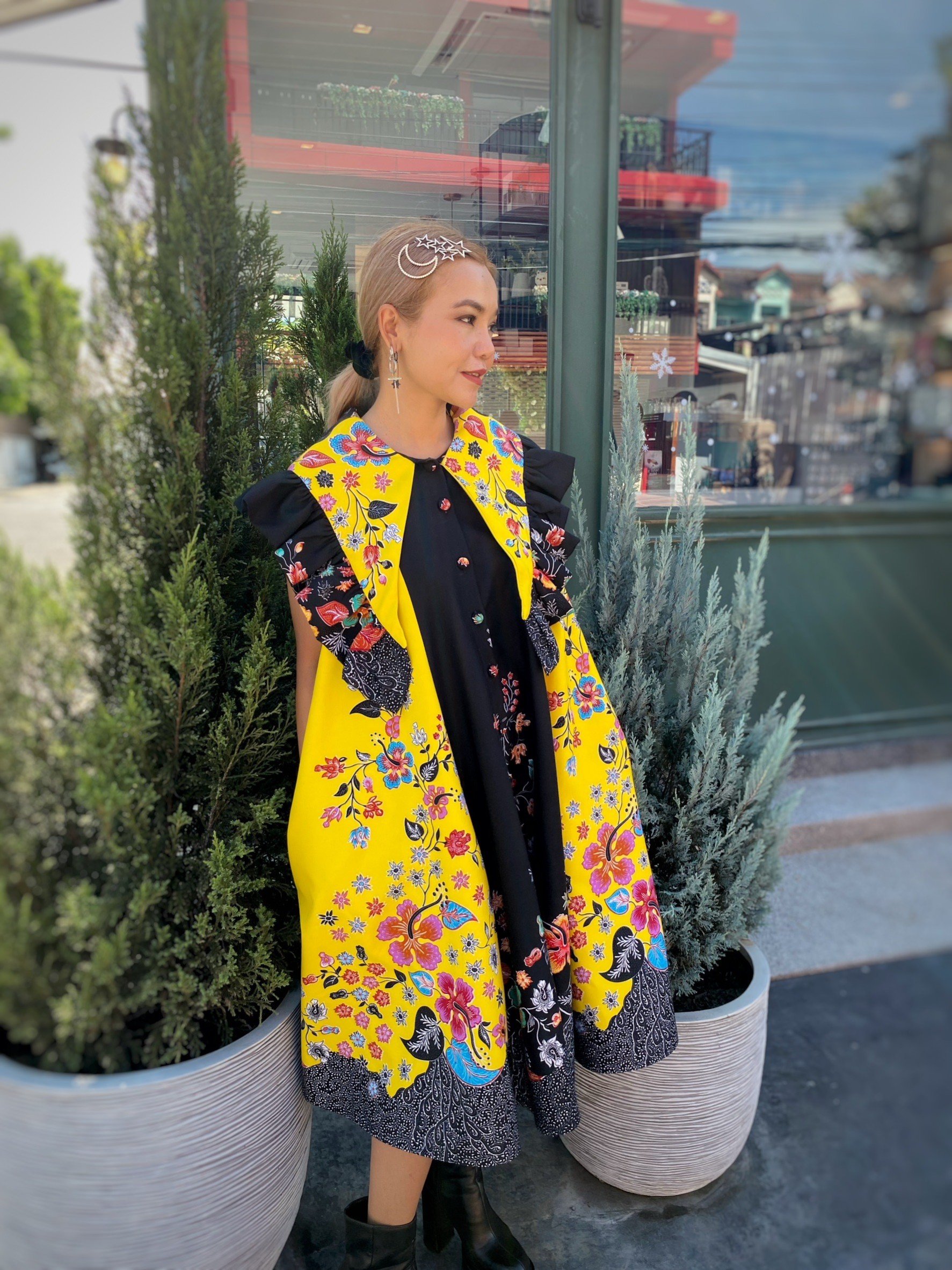 Ruffle Layer Maxi Dress จากผ้าพิมพ์ลายช้าง