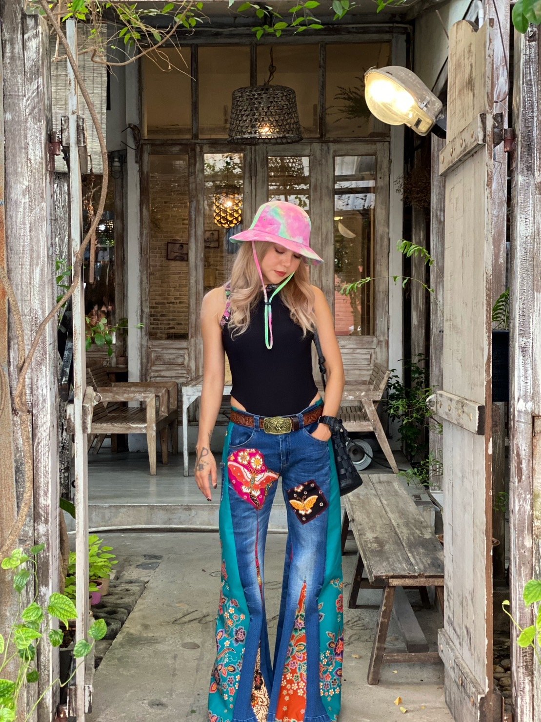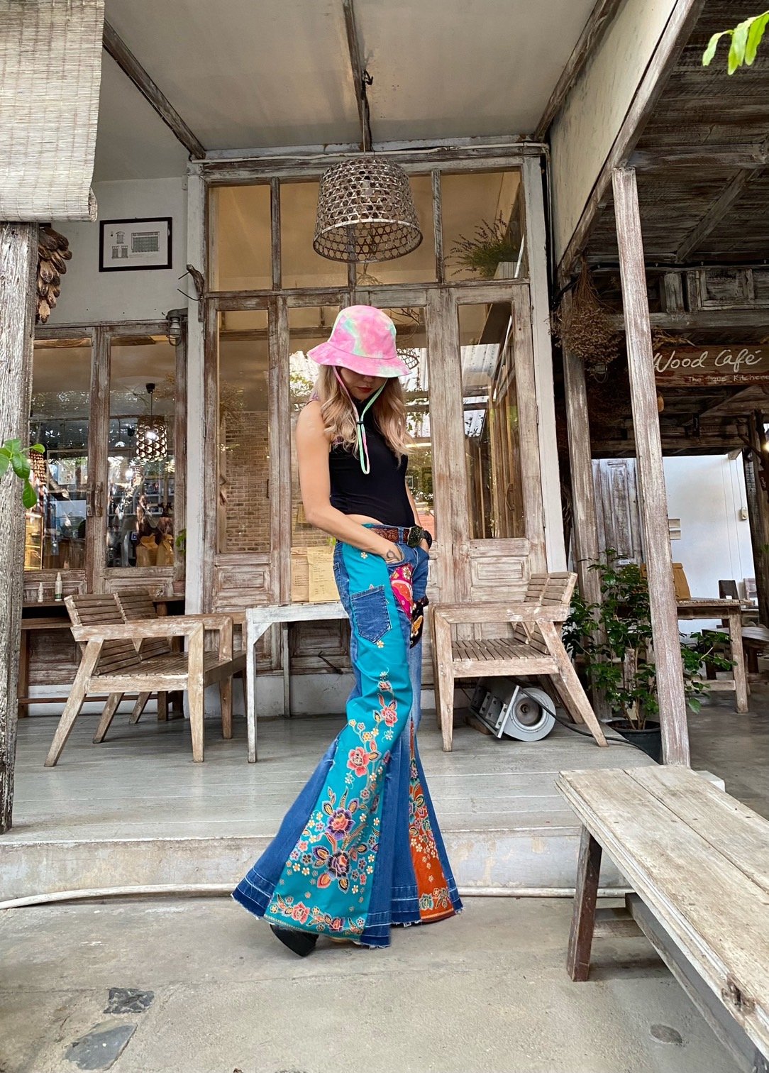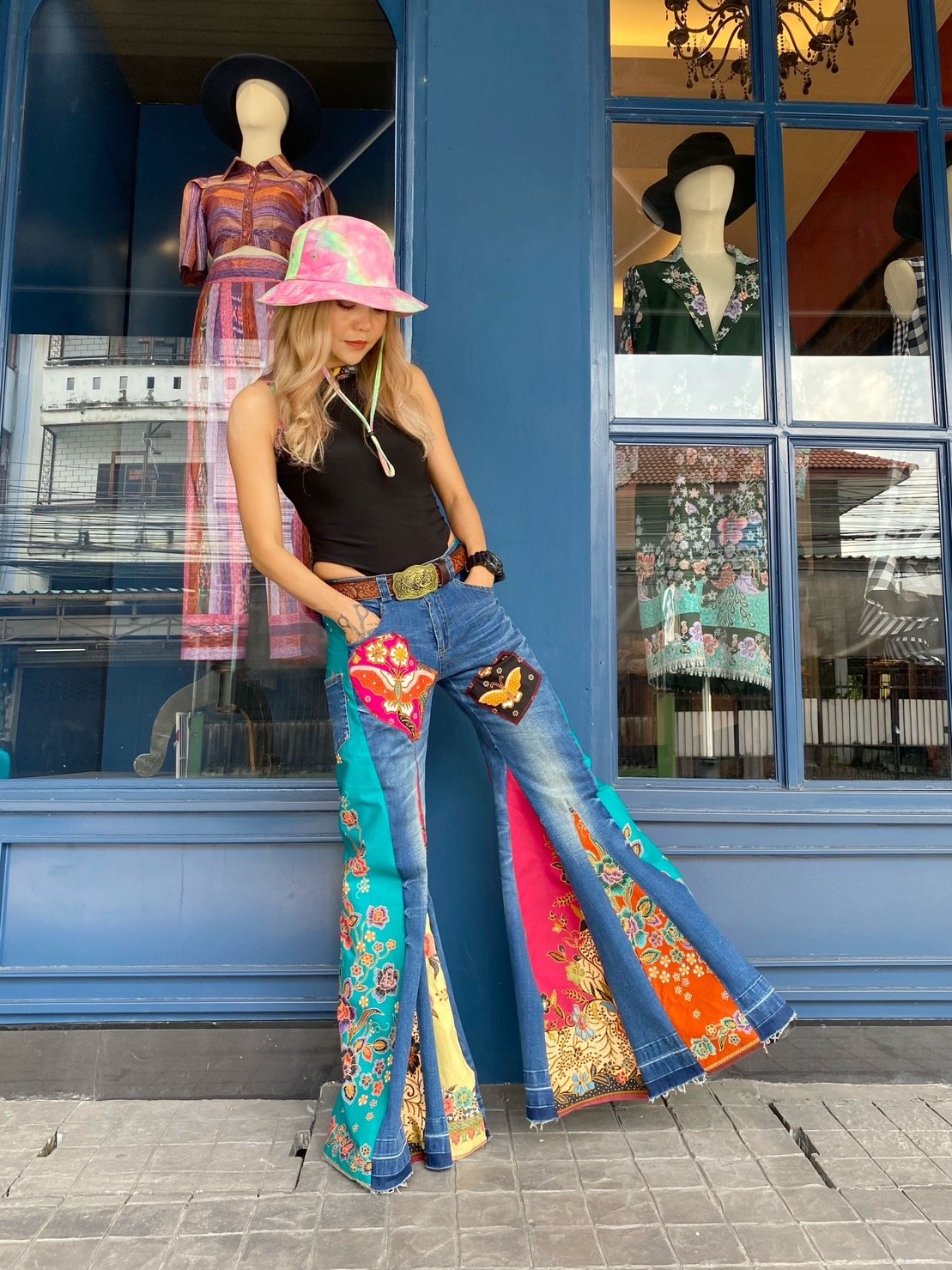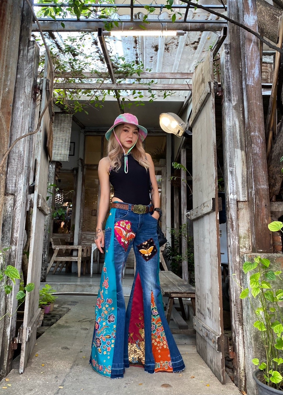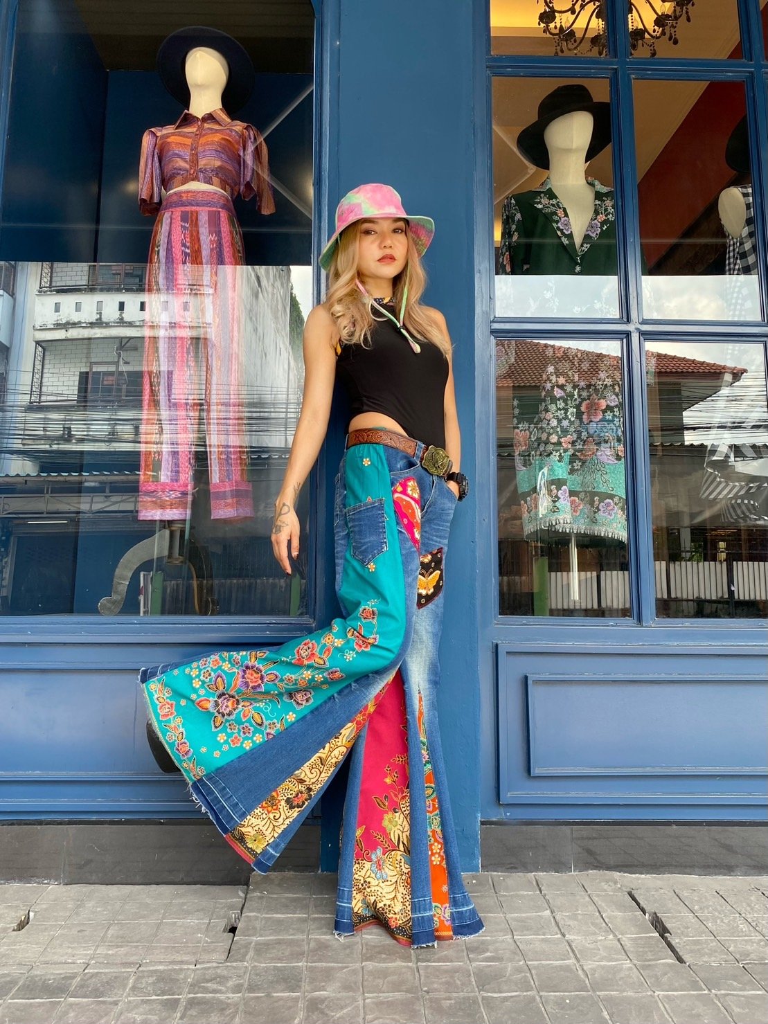 Overcoat ชุดนี้ตัดเย็บจากผ้าไทลื้อ จ.น่าน Cargo Pants ตัดเย็บจากผ้าฝ้ายฟอกนิ่ม จ.เชียงใหม่ x ผ้าไทลื้อ