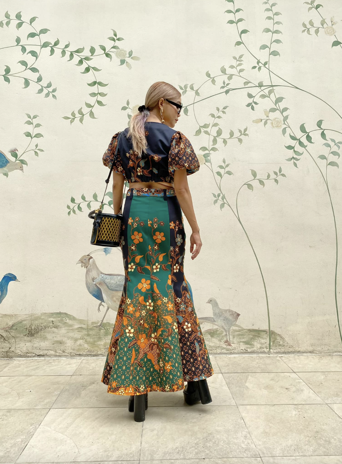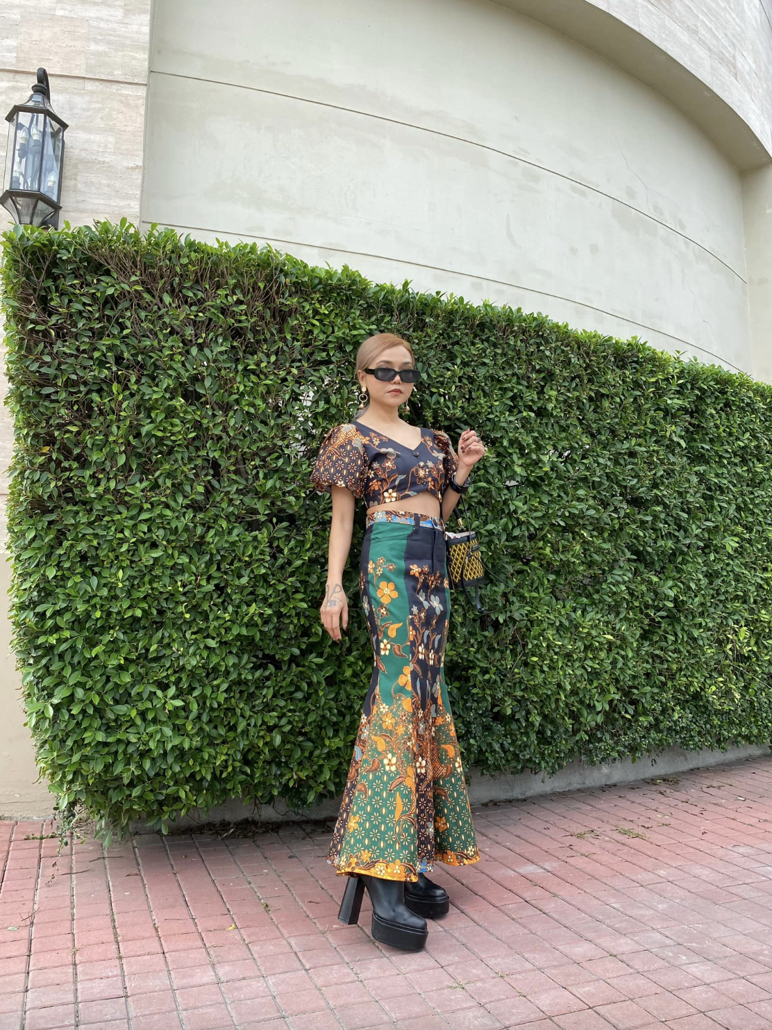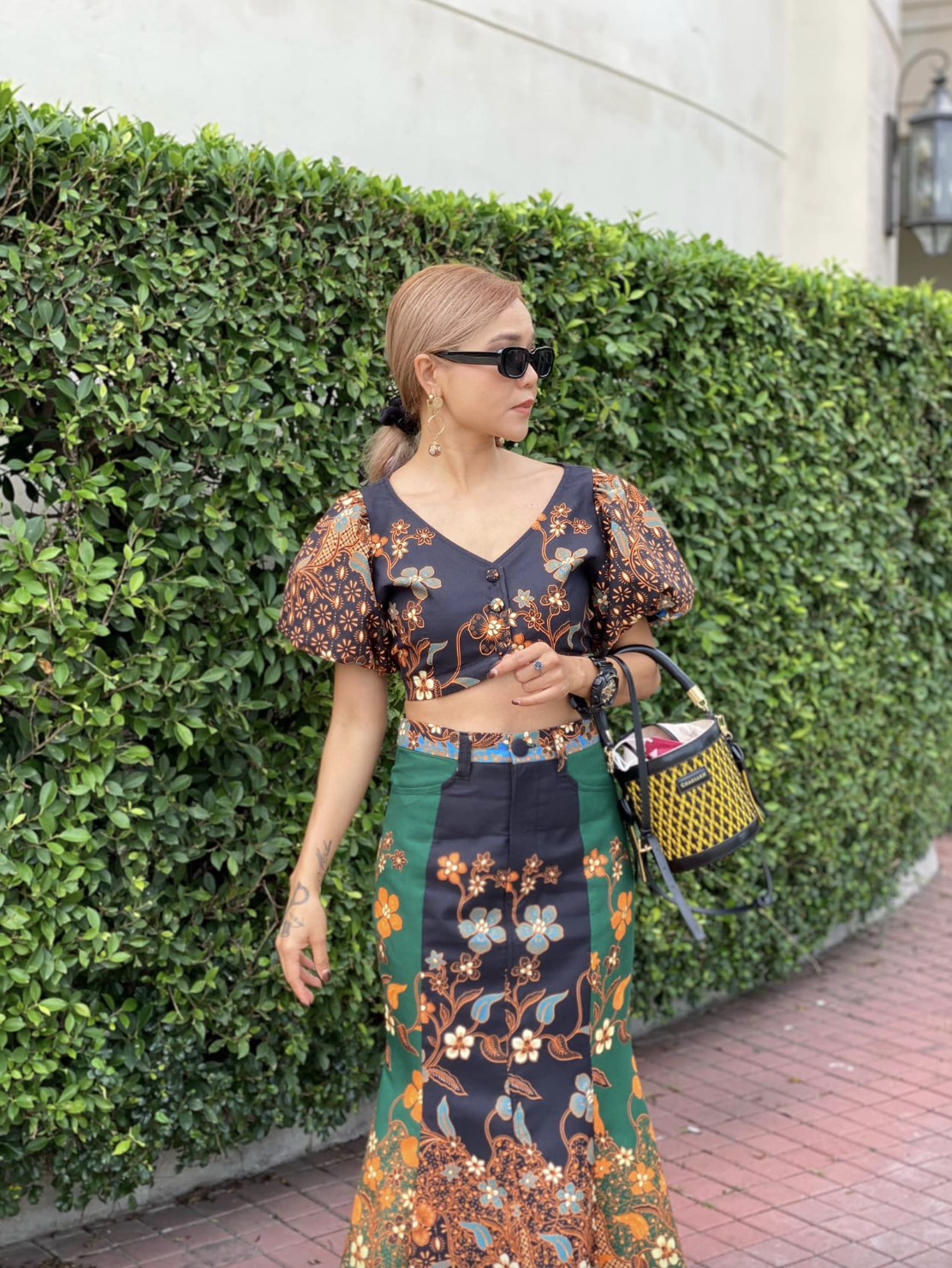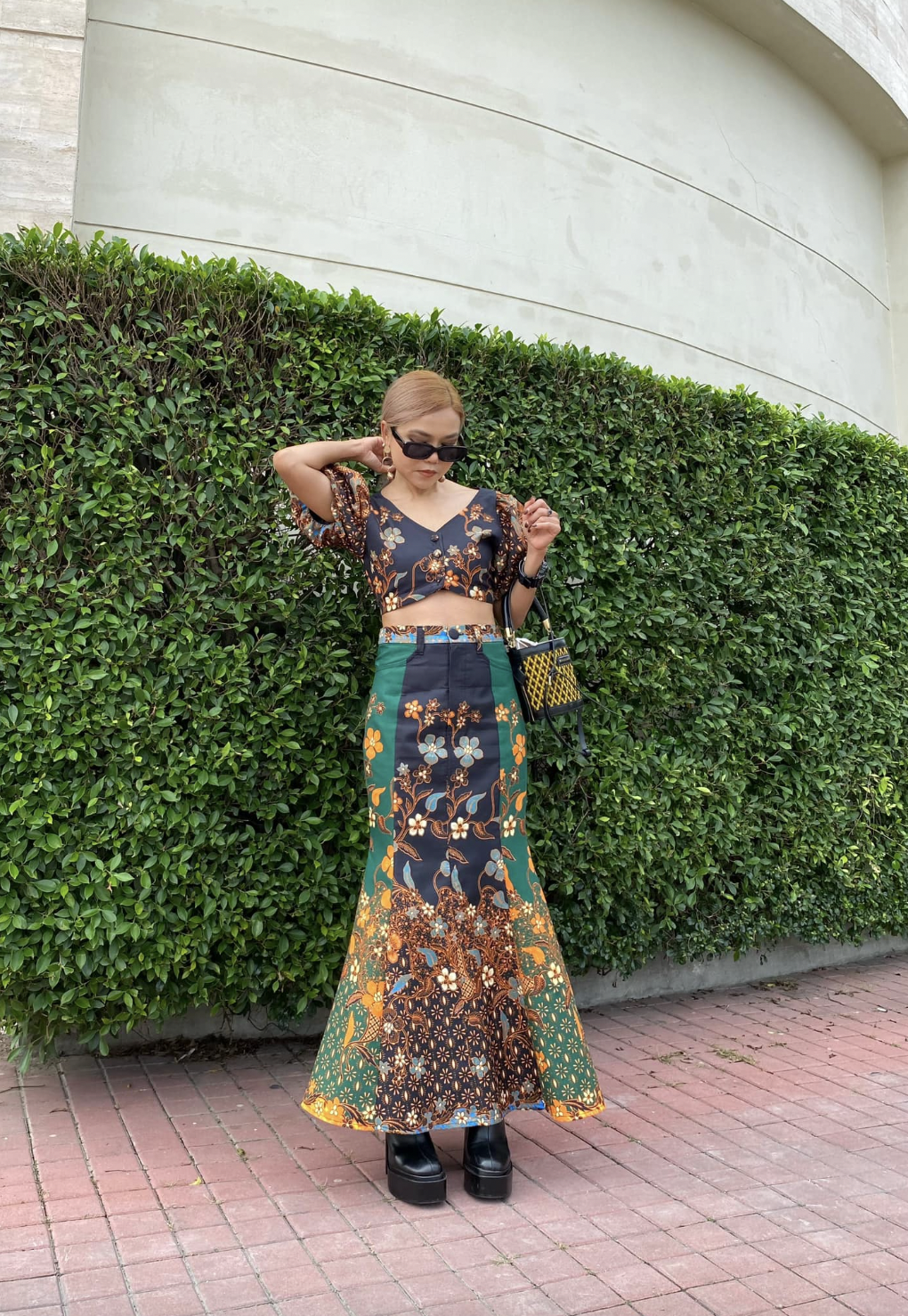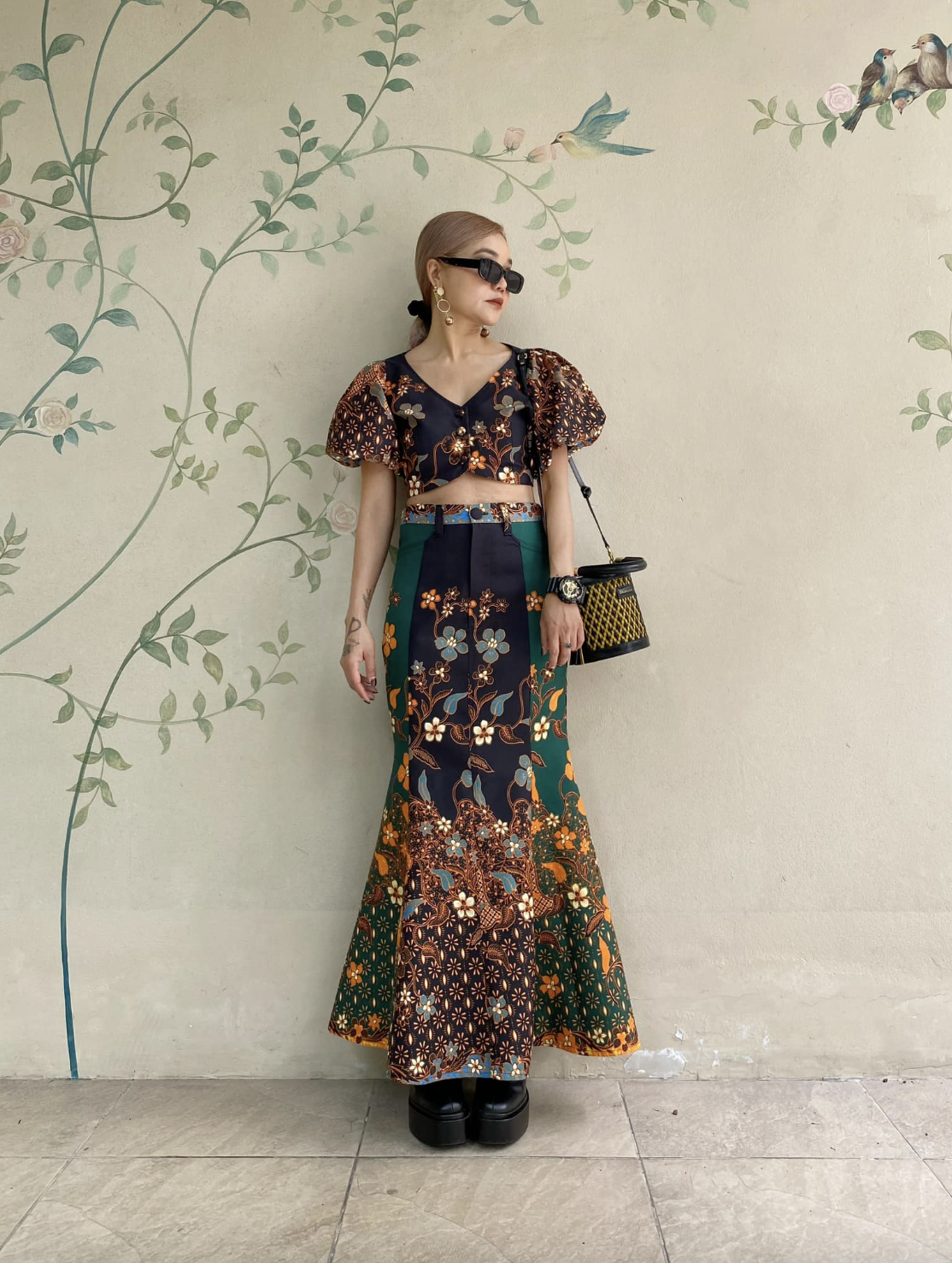 สื้อยืดคอจับจีบเฉียง มิกซ์แอนด์แมทช์ กับกางเกงจากผ้ามัดหมี่ ของดี จ.ลพบุรี
