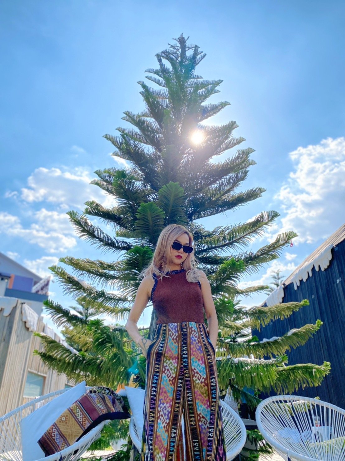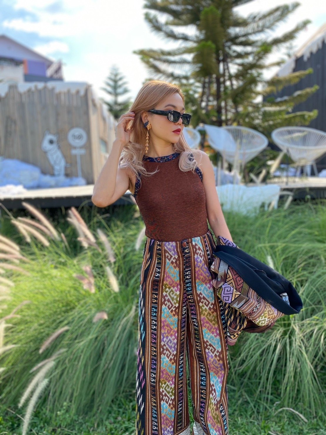 สื้อยืดคอจับจีบเฉียง มิกซ์แอนด์แมทช์ กับกางเกงจากผ้ามัดหมี่ ของดี จ.ลพบุรี
