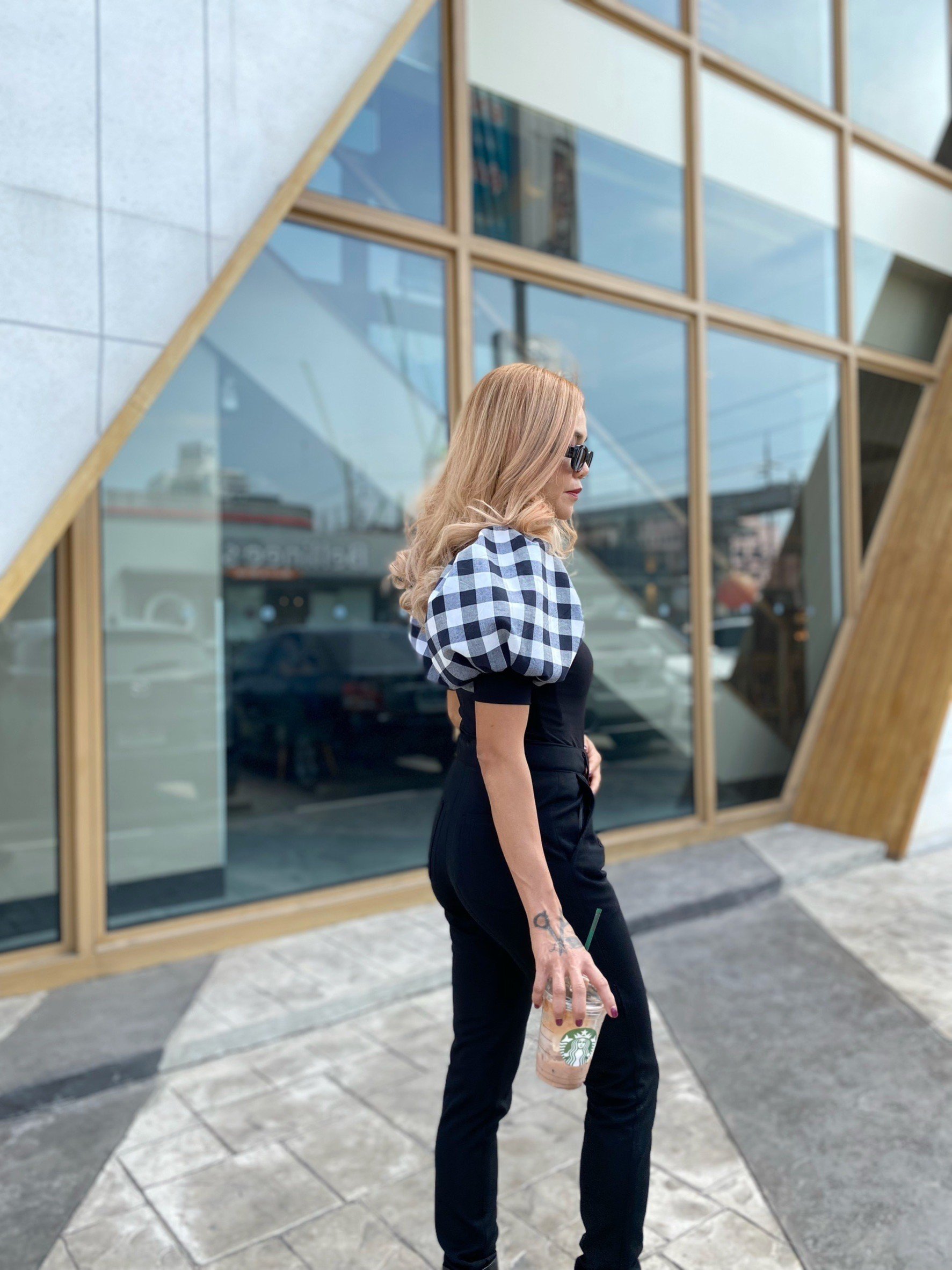Bodysuit แต่งแขนตุ๊กตาด้วยผ้าขาวม้า ราคา 690฿