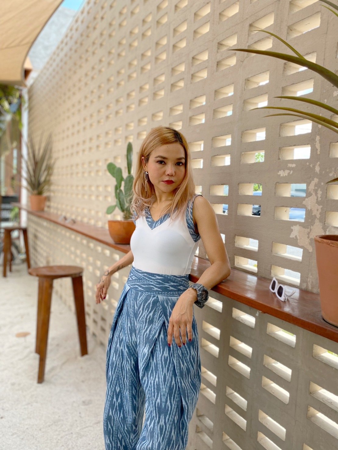 สื้อยืดคอจับจีบเฉียง มิกซ์แอนด์แมทช์ กับกางเกงจากผ้ามัดหมี่ ของดี จ.ลพบุรี