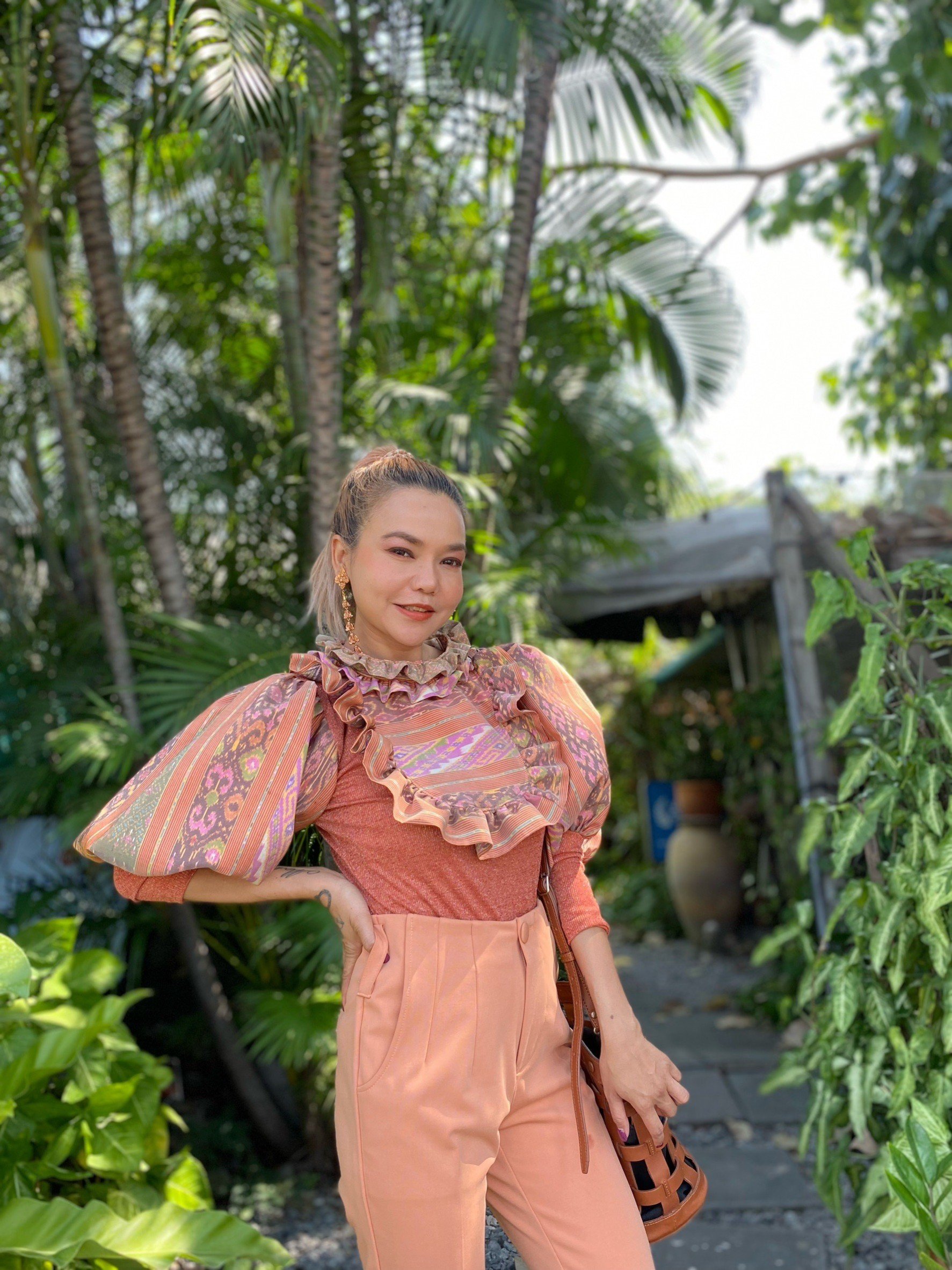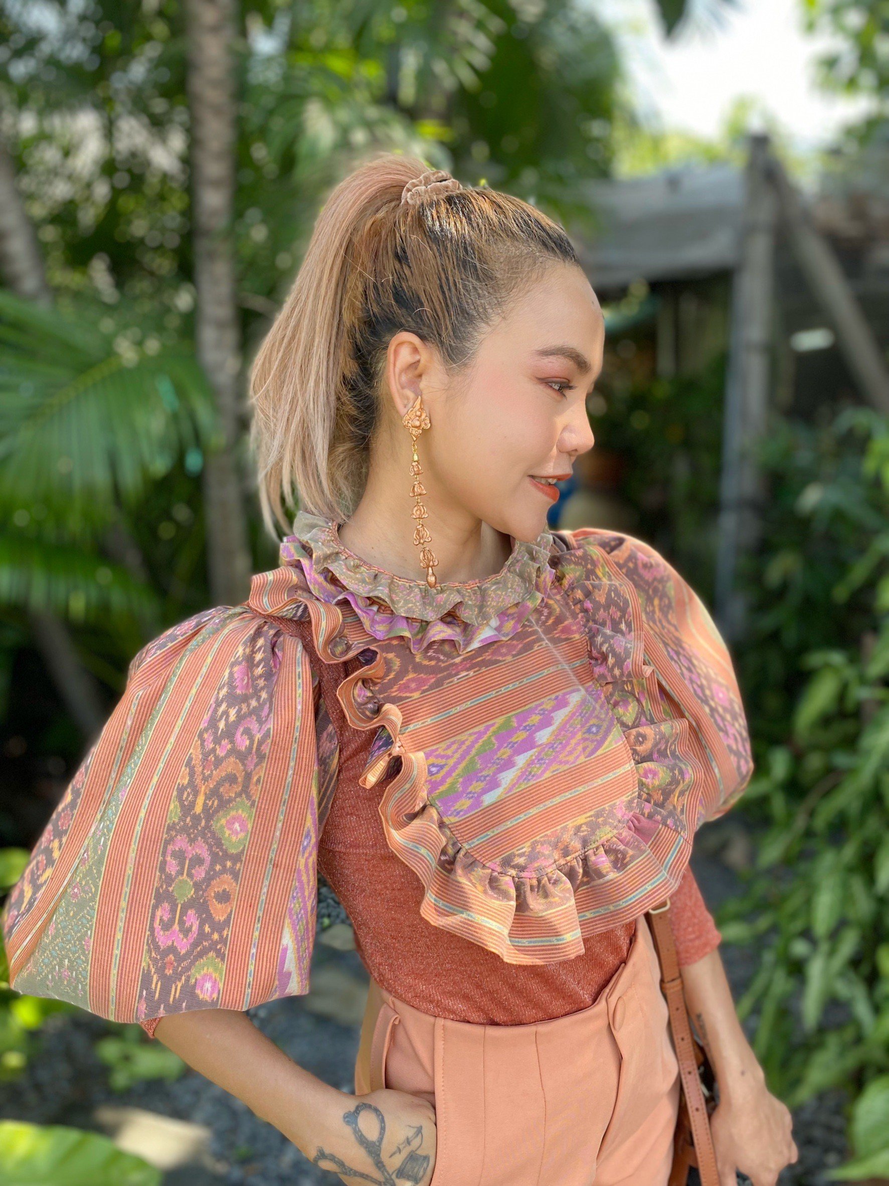 สื้อยืดคอจับจีบเฉียง มิกซ์แอนด์แมทช์ กับกางเกงจากผ้ามัดหมี่ ของดี จ.ลพบุรี