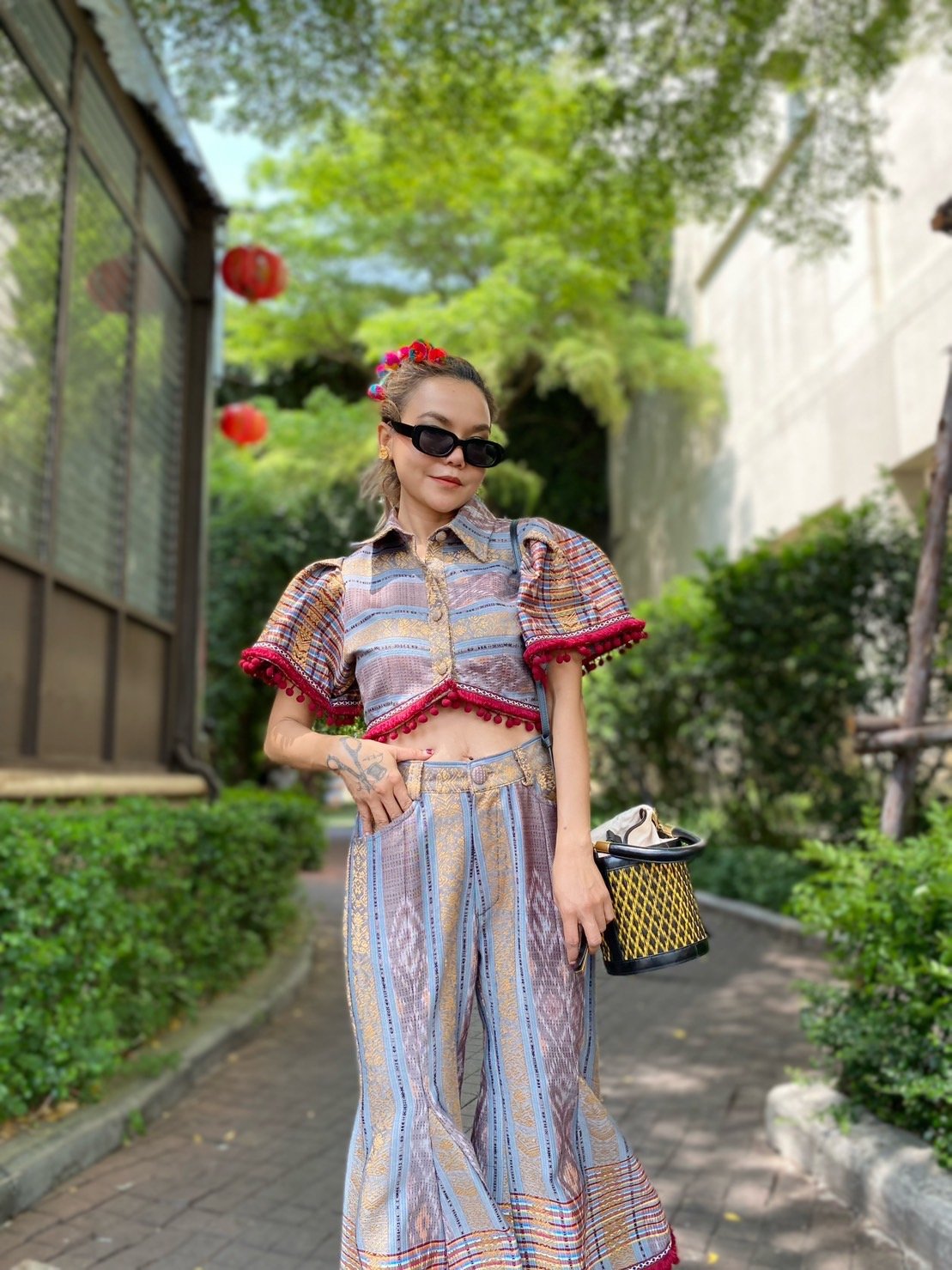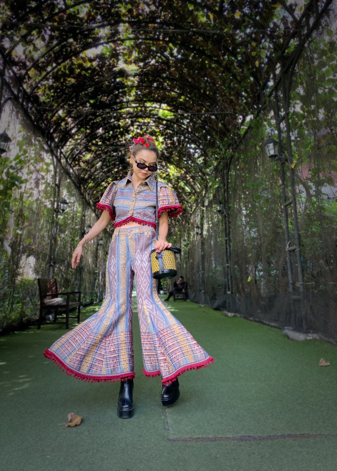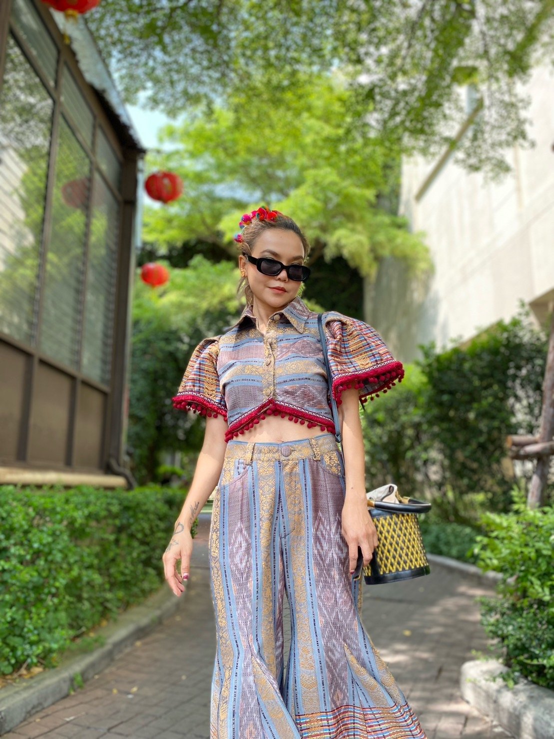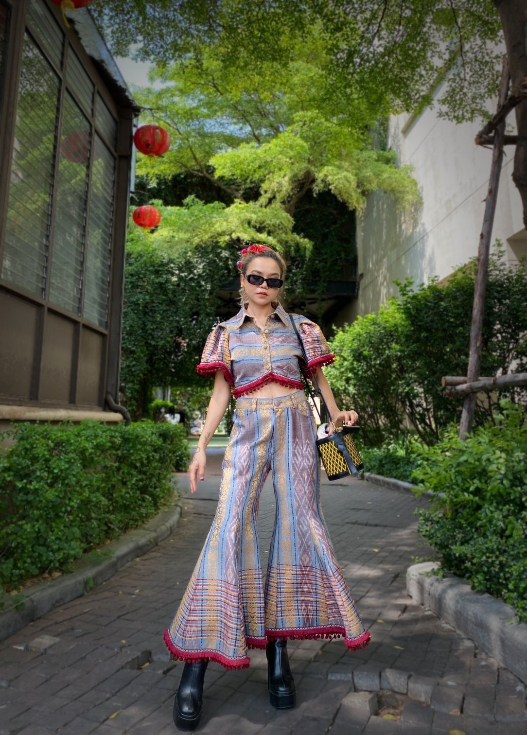 สื้อยืดคอจับจีบเฉียง มิกซ์แอนด์แมทช์ กับกางเกงจากผ้ามัดหมี่ ของดี จ.ลพบุรี