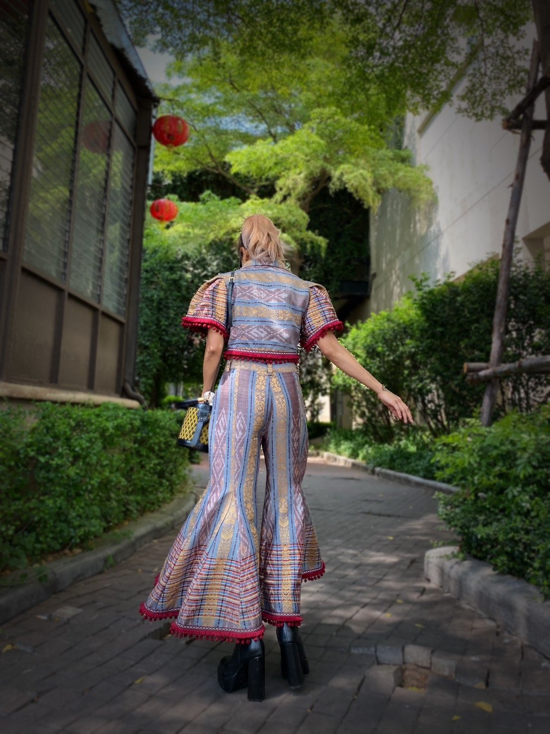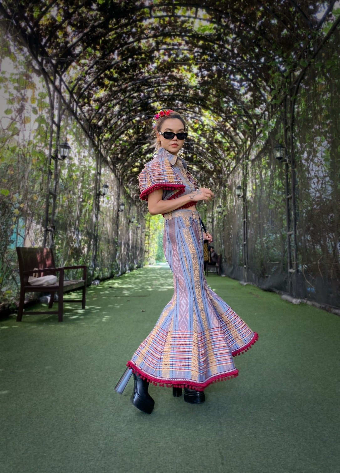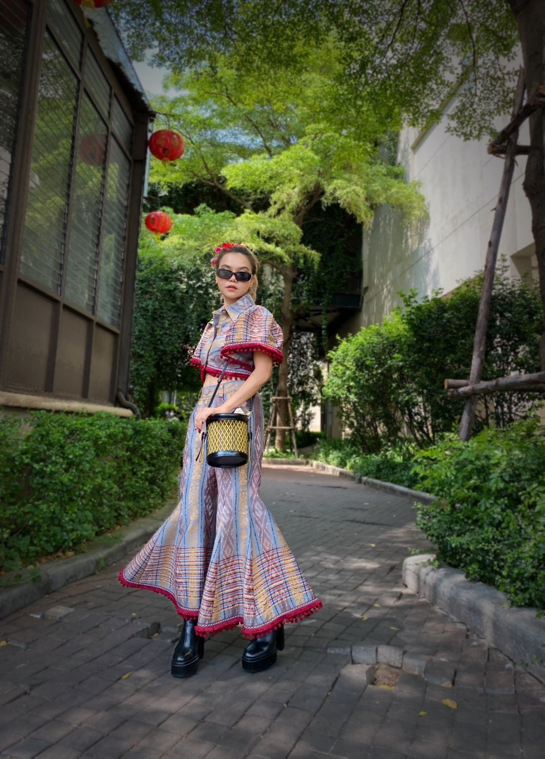 ชุด Set ผ้ามัดหมี่ลายศิลาล้อมเพชร ของดีจ.กำแพงเพชร ตัดเย็บร่วมกับผ้าไทลื้อ ของดี จ.น่าน