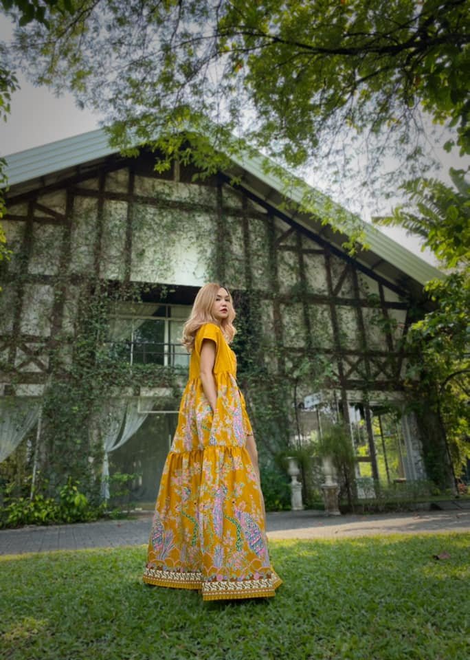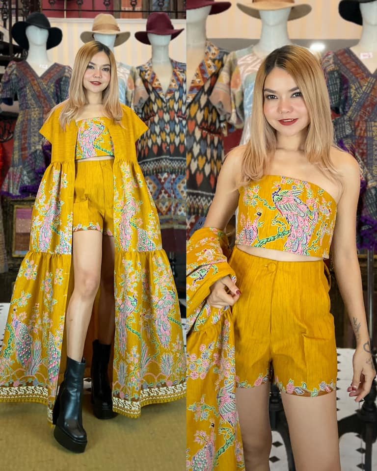 สื้อยืดคอจับจีบเฉียง มิกซ์แอนด์แมทช์ กับกางเกงจากผ้ามัดหมี่ ของดี จ.ลพบุรี