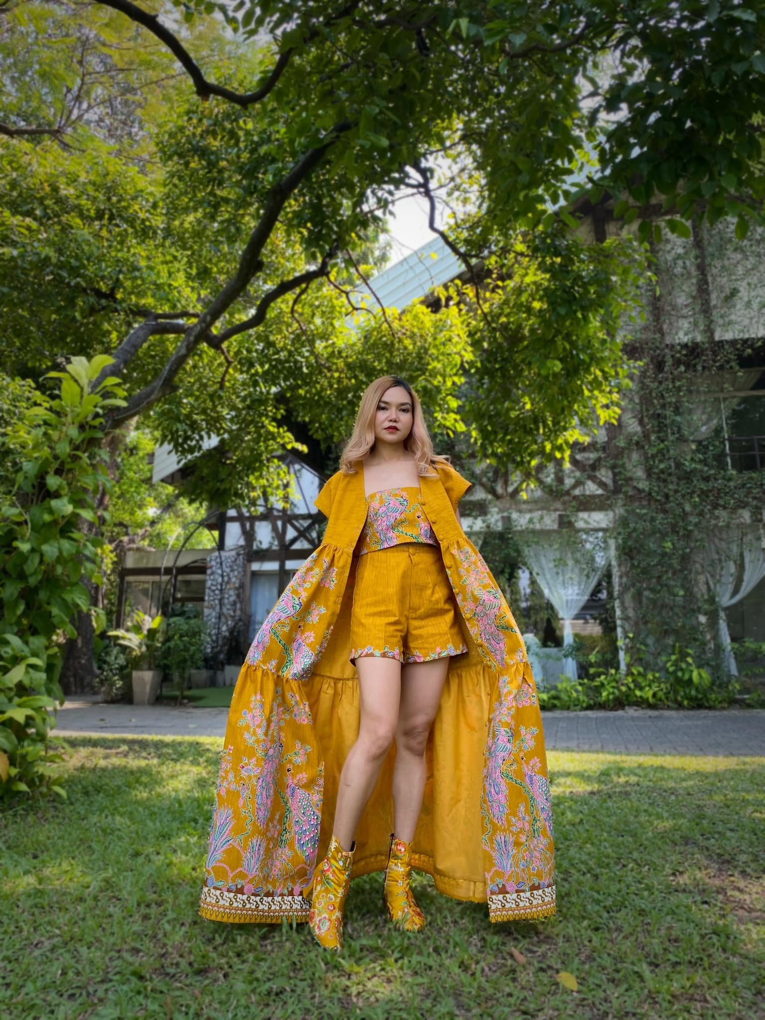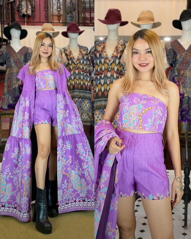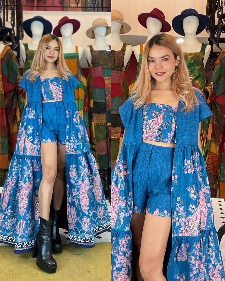 ชุด Set ผ้ามัดหมี่ลายศิลาล้อมเพชร ของดีจ.กำแพงเพชร ตัดเย็บร่วมกับผ้าไทลื้อ ของดี จ.น่าน