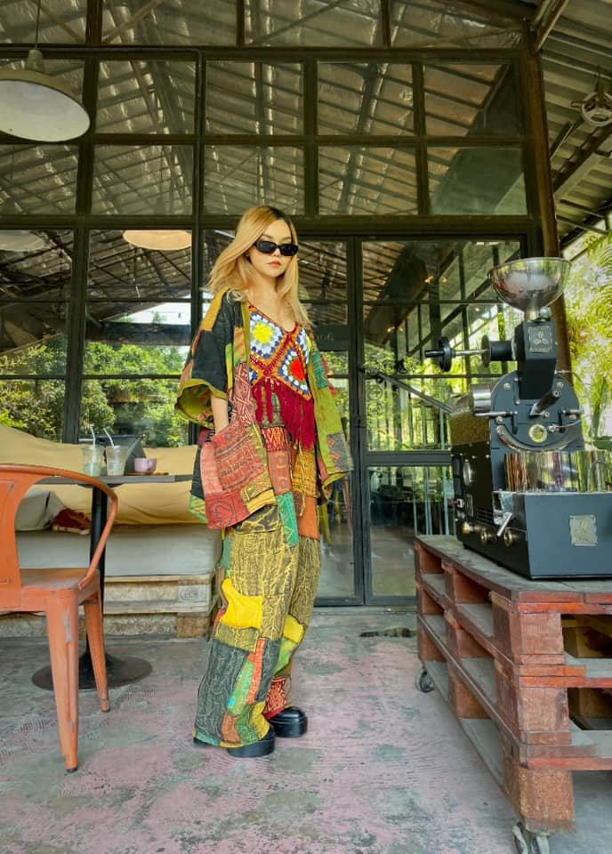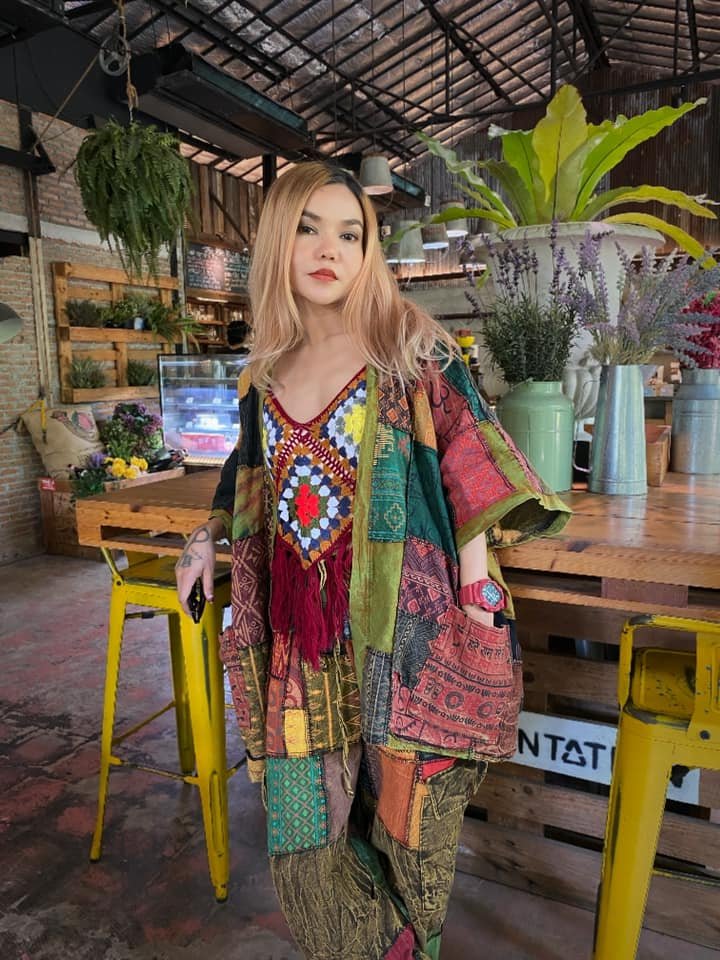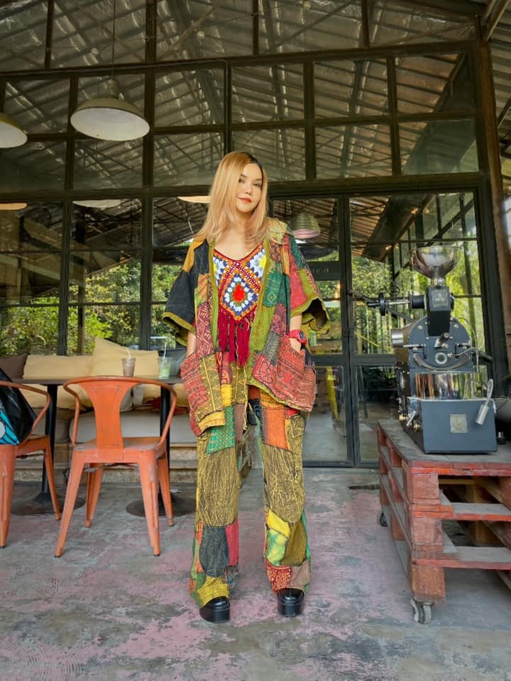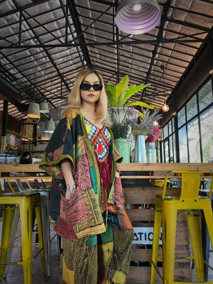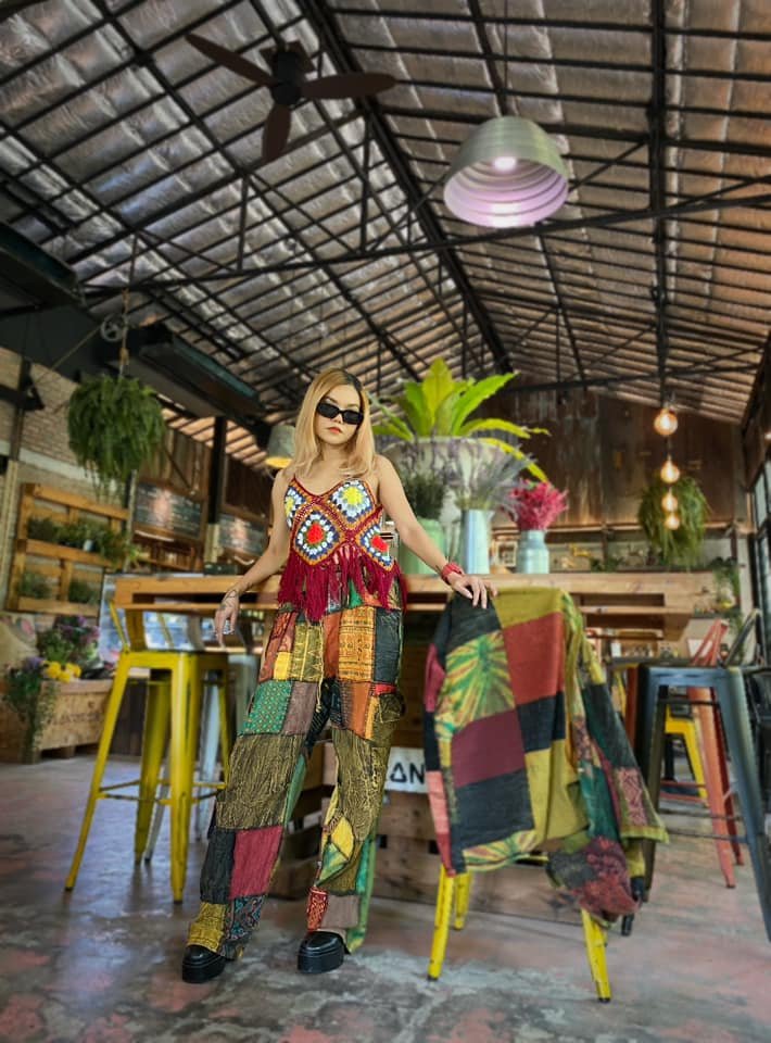 สื้อยืดคอจับจีบเฉียง มิกซ์แอนด์แมทช์ กับกางเกงจากผ้ามัดหมี่ ของดี จ.ลพบุรี