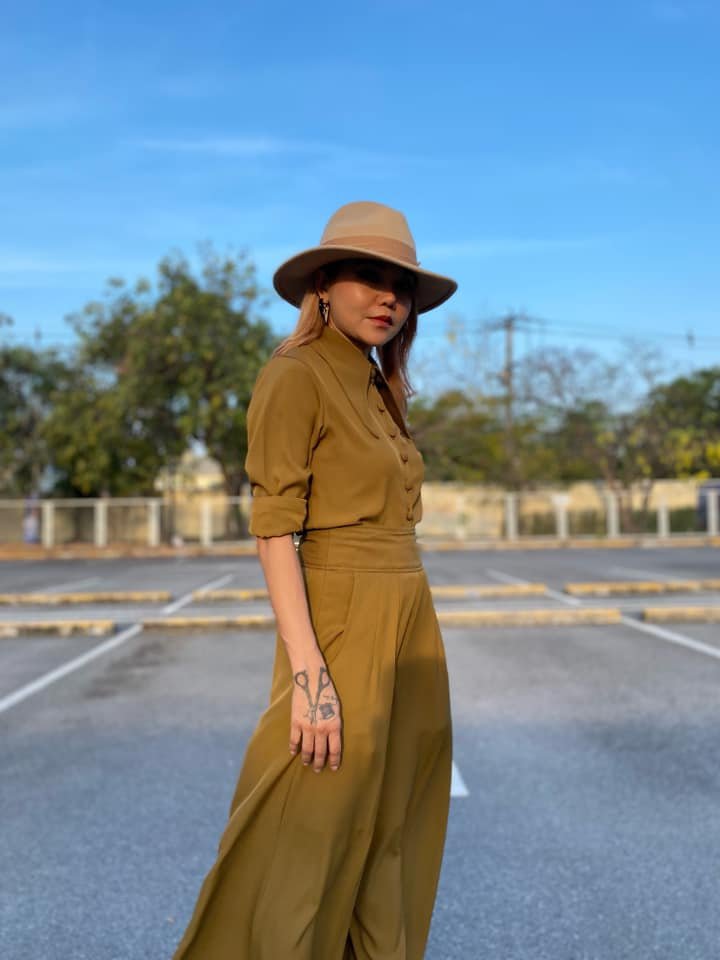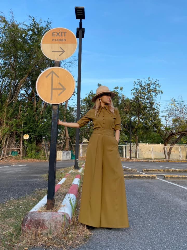 สื้อยืดคอจับจีบเฉียง มิกซ์แอนด์แมทช์ กับกางเกงจากผ้ามัดหมี่ ของดี จ.ลพบุรี