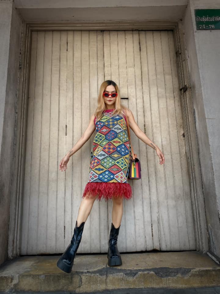 Mini Dress จากผ้าไทลื้อ x ผ้าฝ้ายทอมือ ย้อมสีธรรมชาติผลิตภัณฑ์ OTOP ของดี อําเภอเกษตรวิสัย จังหวัดร้อยเอ็ด