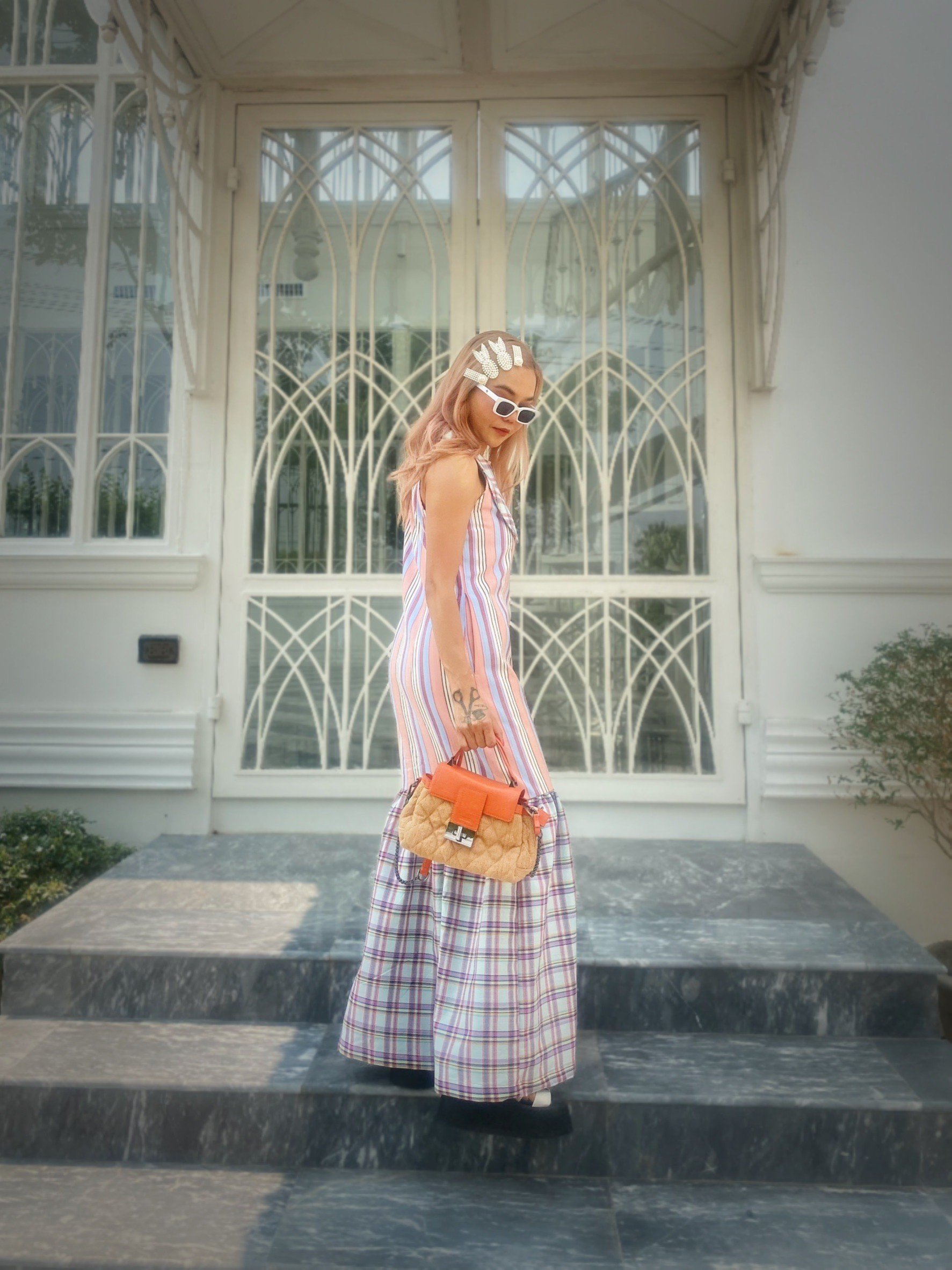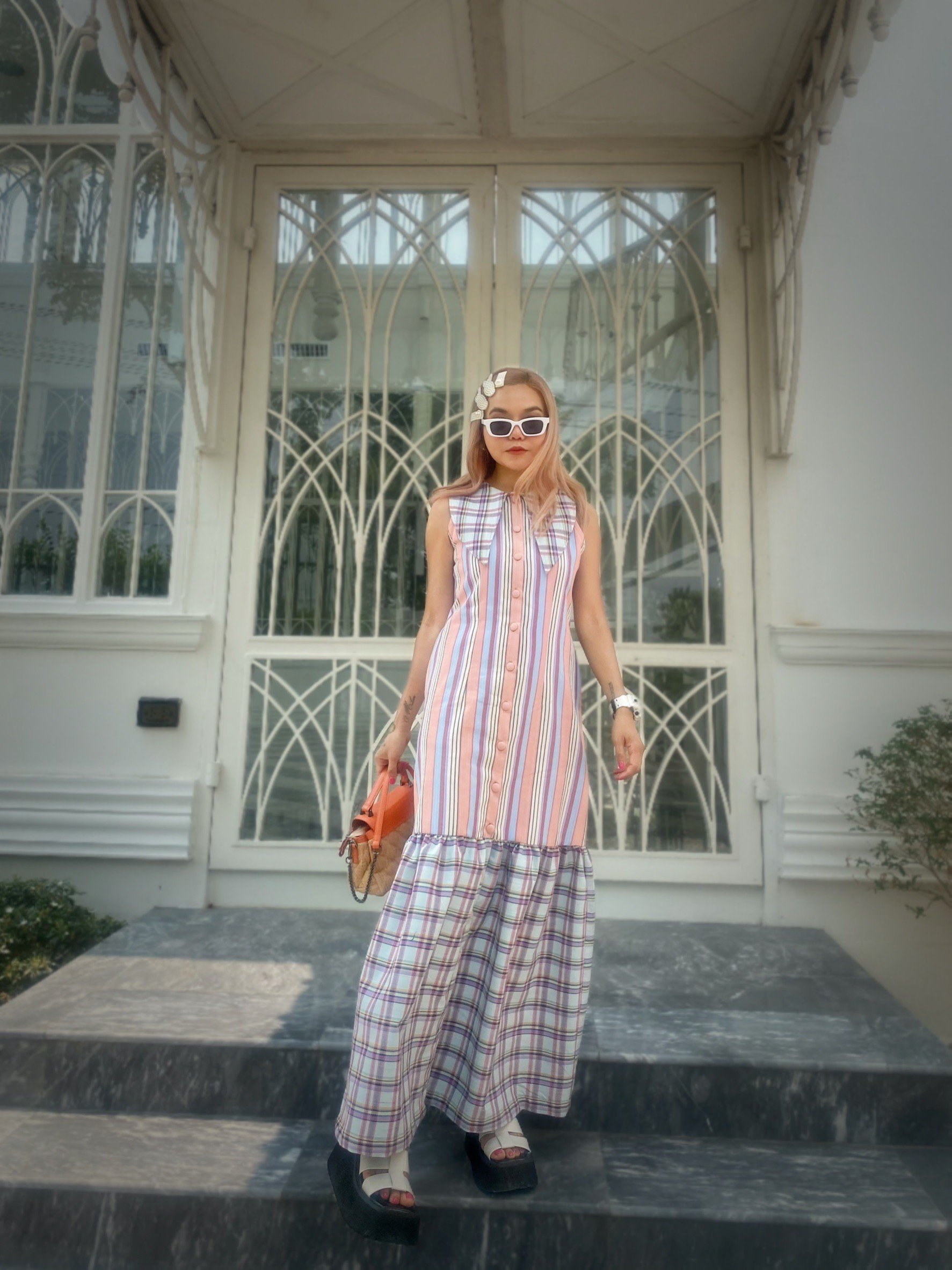 Maxi Dress จากผ้าขาวม้า ทอจากโรงทอจังหวัดราชบุรี