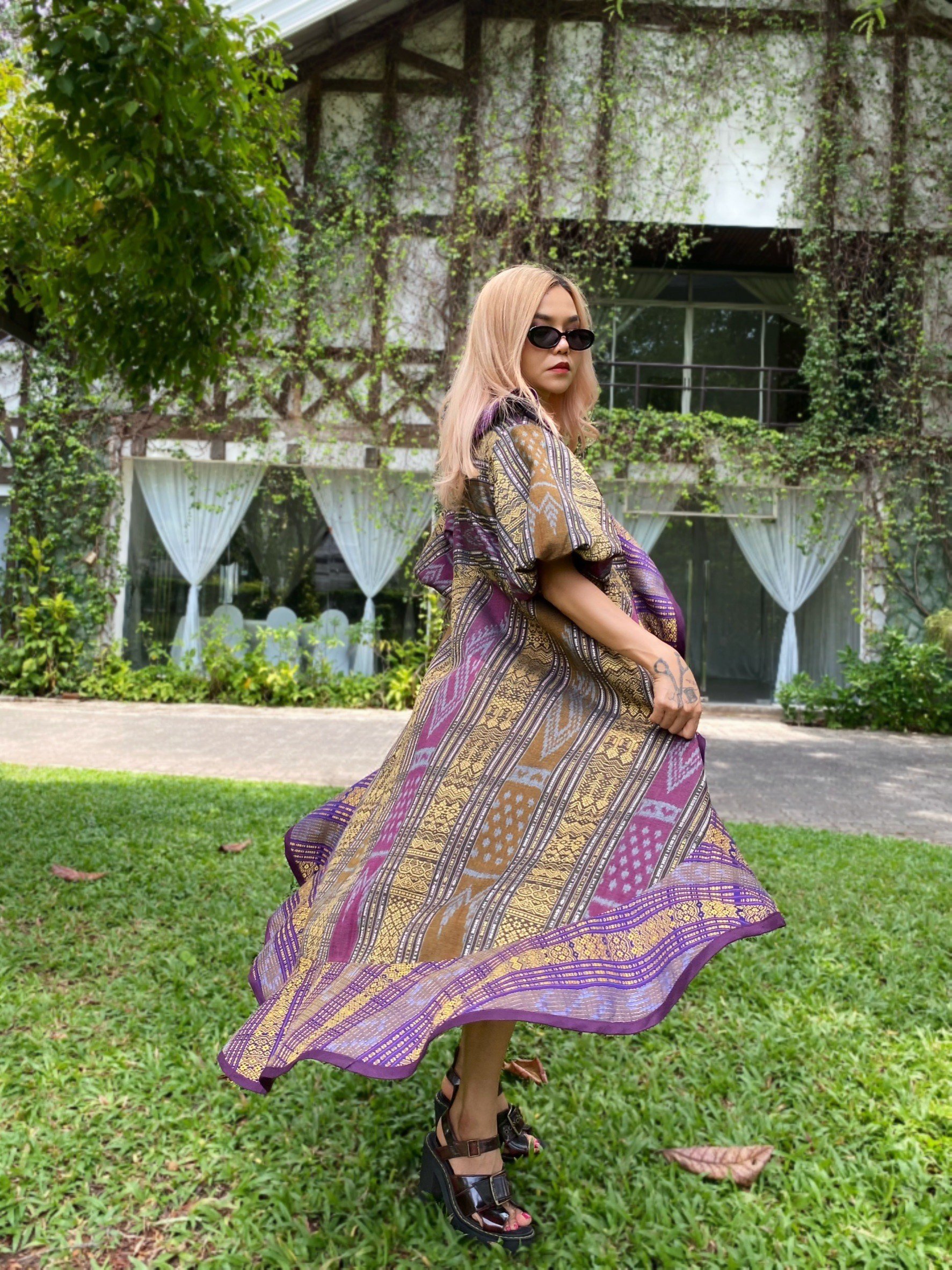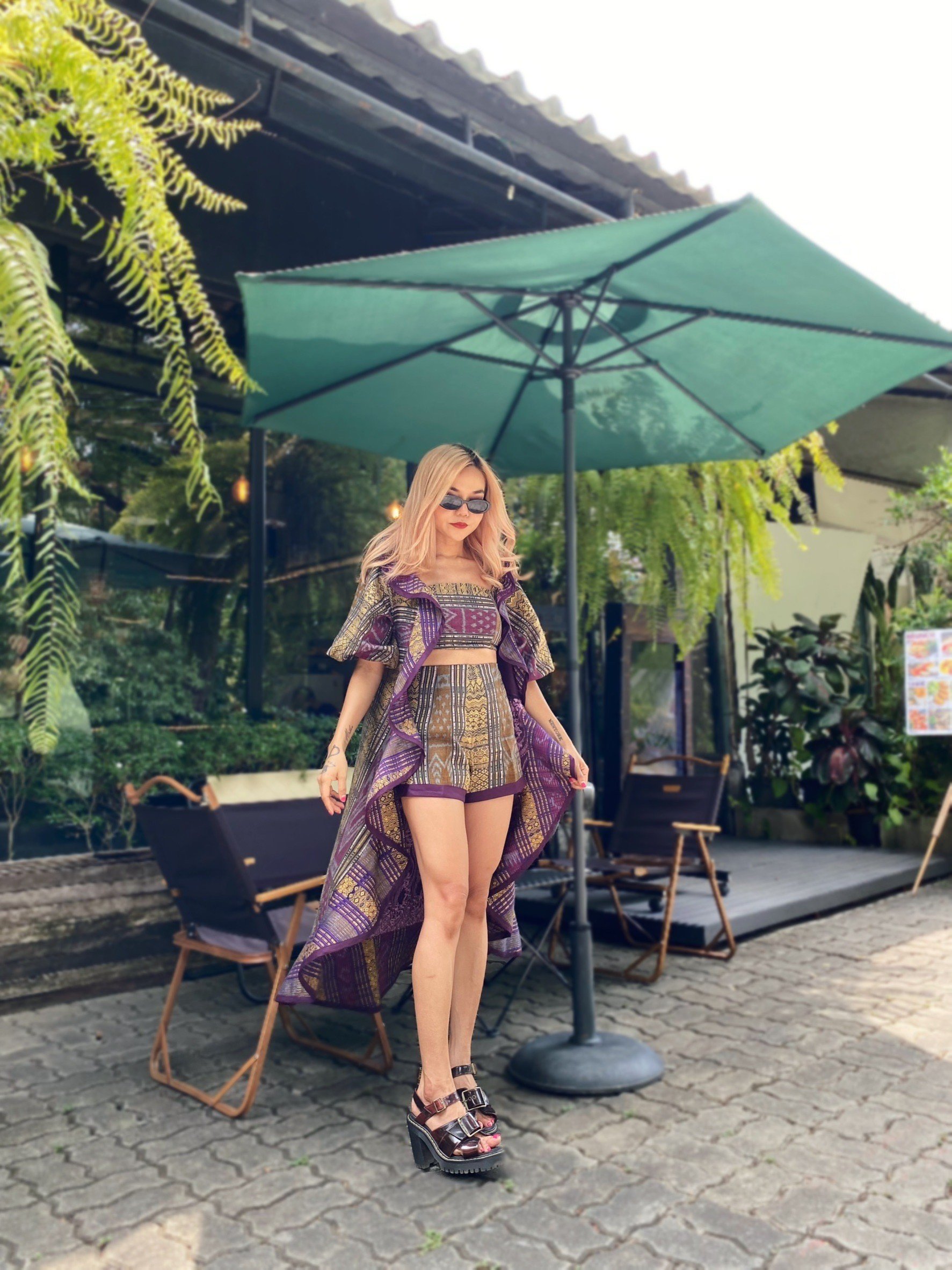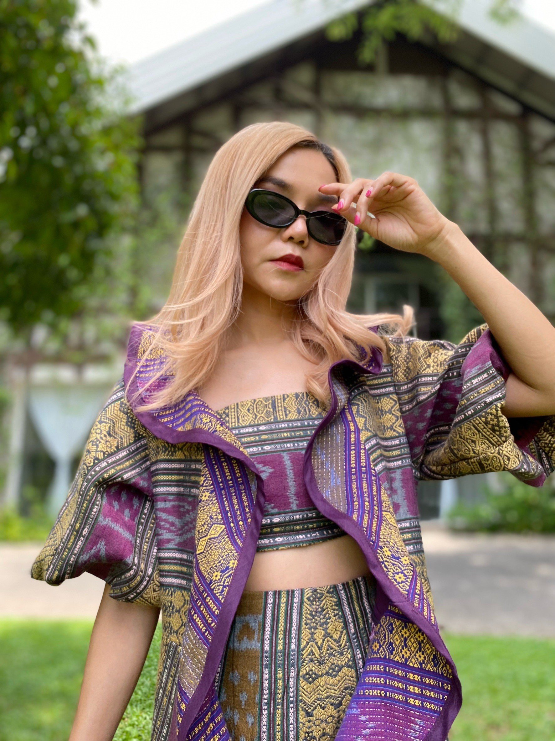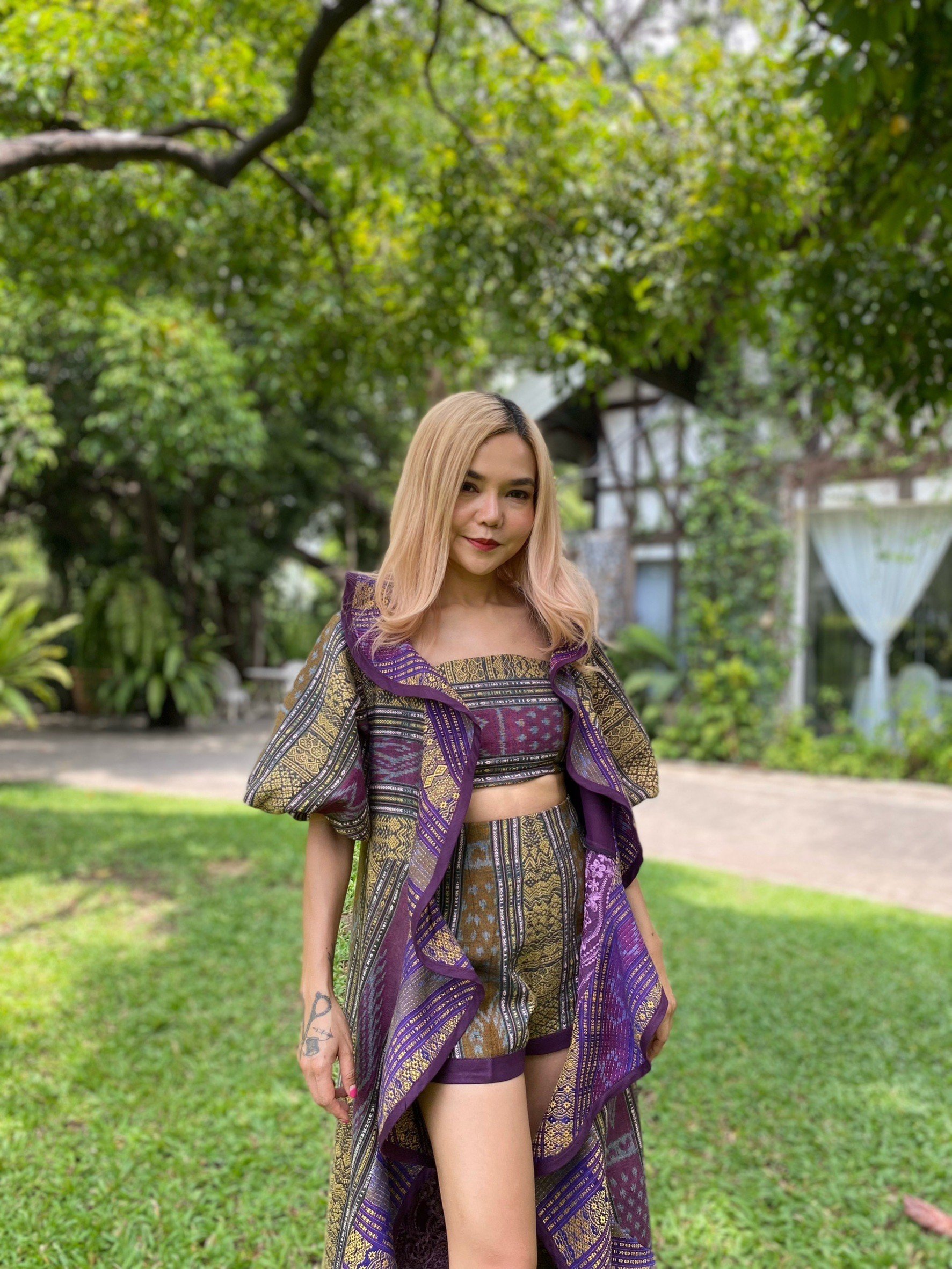 ชุด Set ผ้ามัดหมี่ลายศิลาล้อมเพชร ของดีจ.กำแพงเพชร ตัดเย็บร่วมกับผ้าไทลื้อ ของดี จ.น่าน