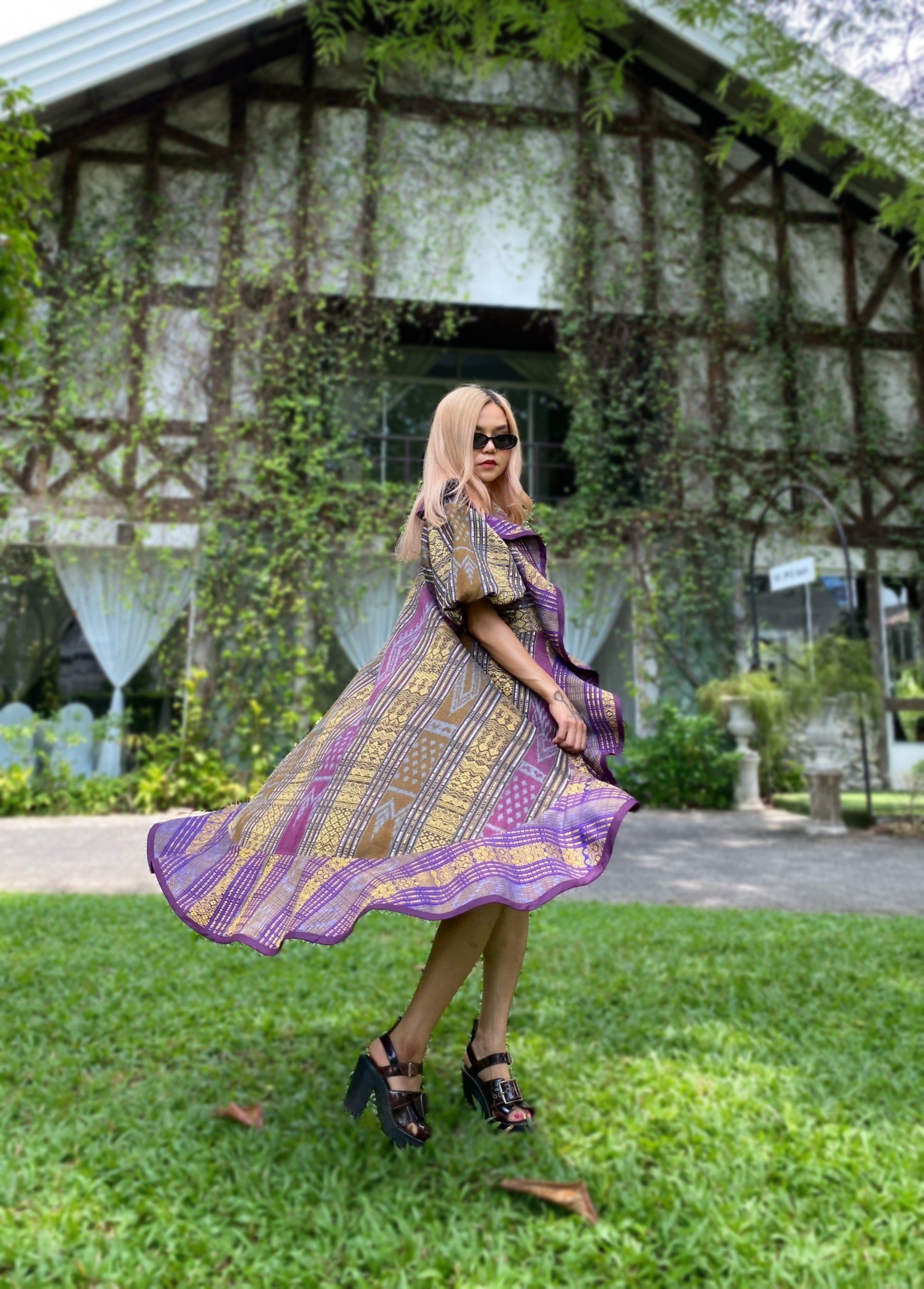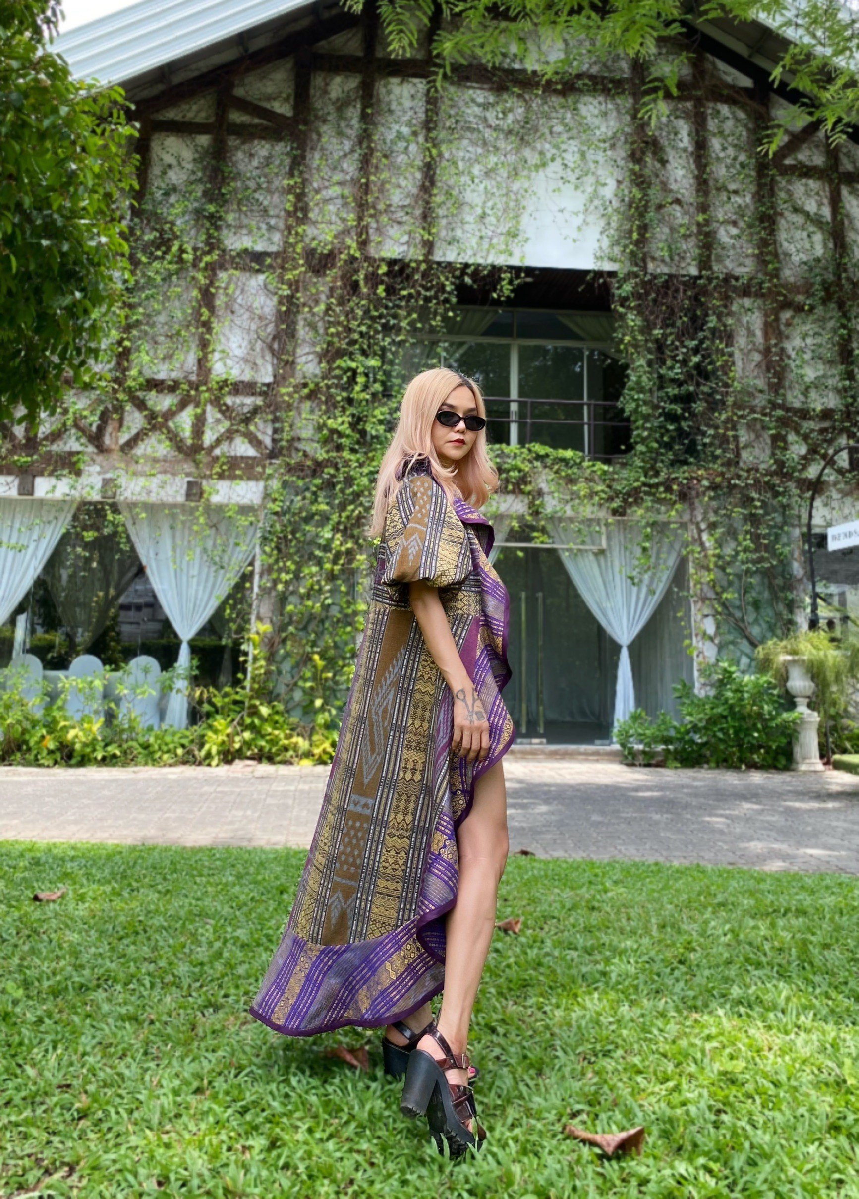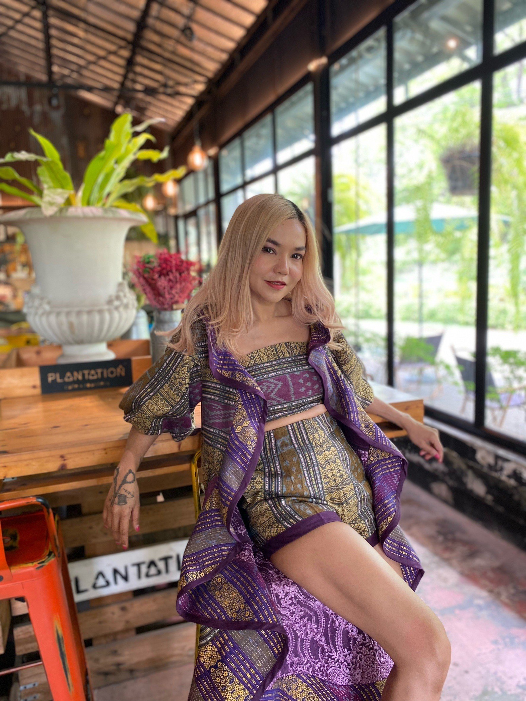 สื้อยืดคอจับจีบเฉียง มิกซ์แอนด์แมทช์ กับกางเกงจากผ้ามัดหมี่ ของดี จ.ลพบุรี