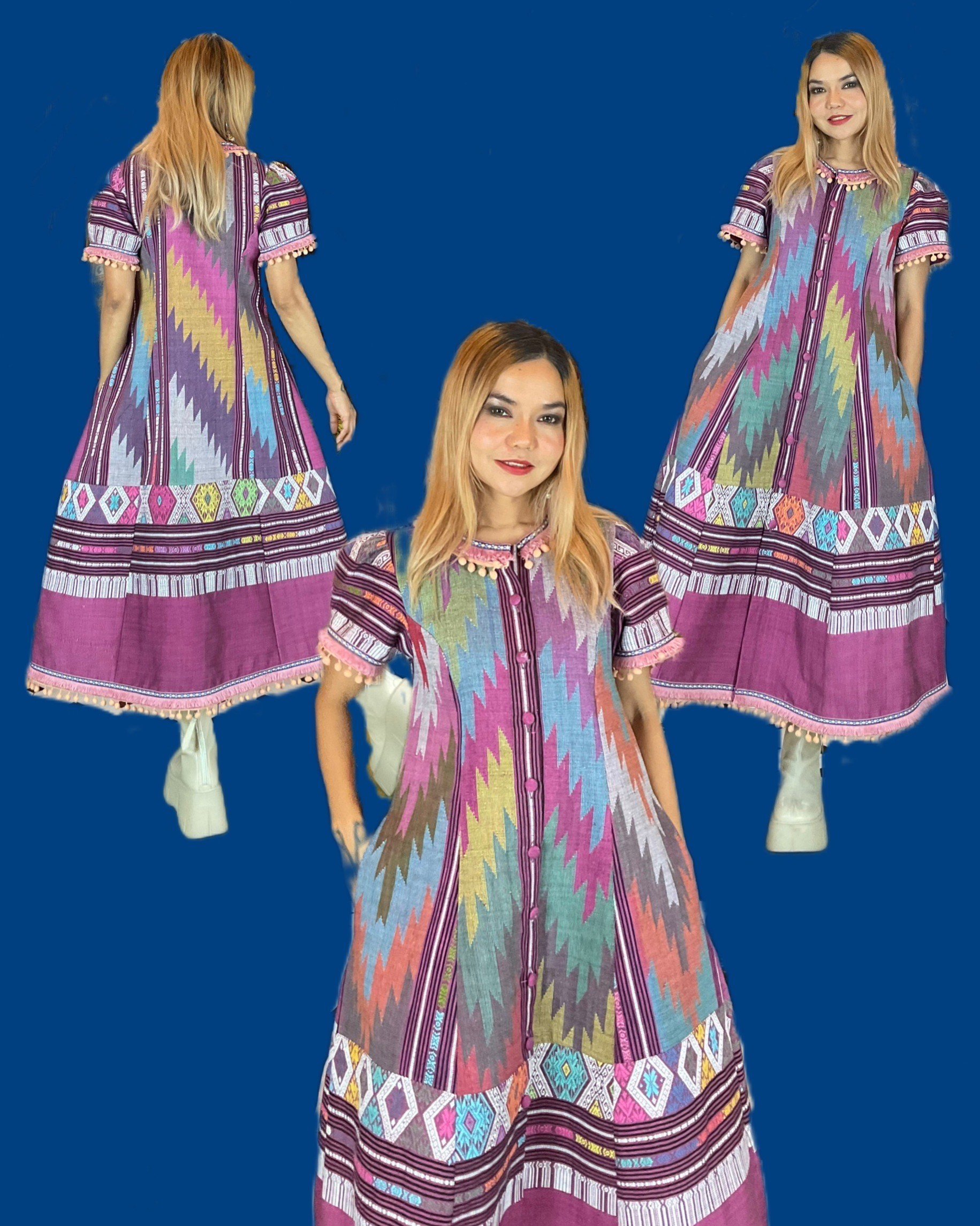 Mini Dress จากผ้าไทลื้อ x ผ้าฝ้ายทอมือ ย้อมสีธรรมชาติผลิตภัณฑ์ OTOP ของดี อําเภอเกษตรวิสัย จังหวัดร้อยเอ็ด