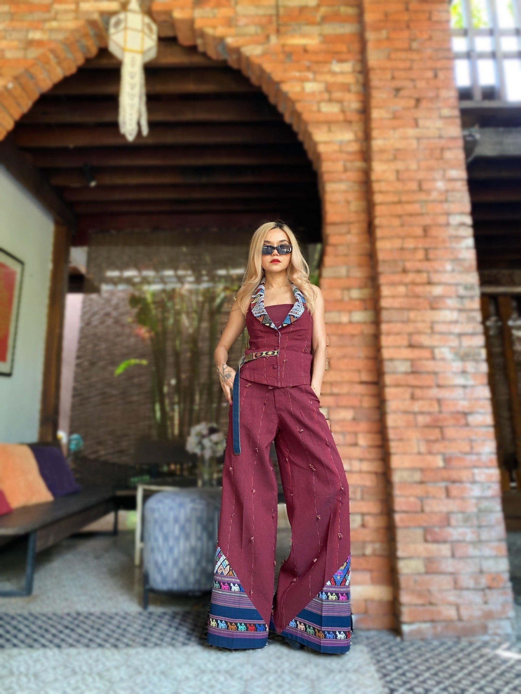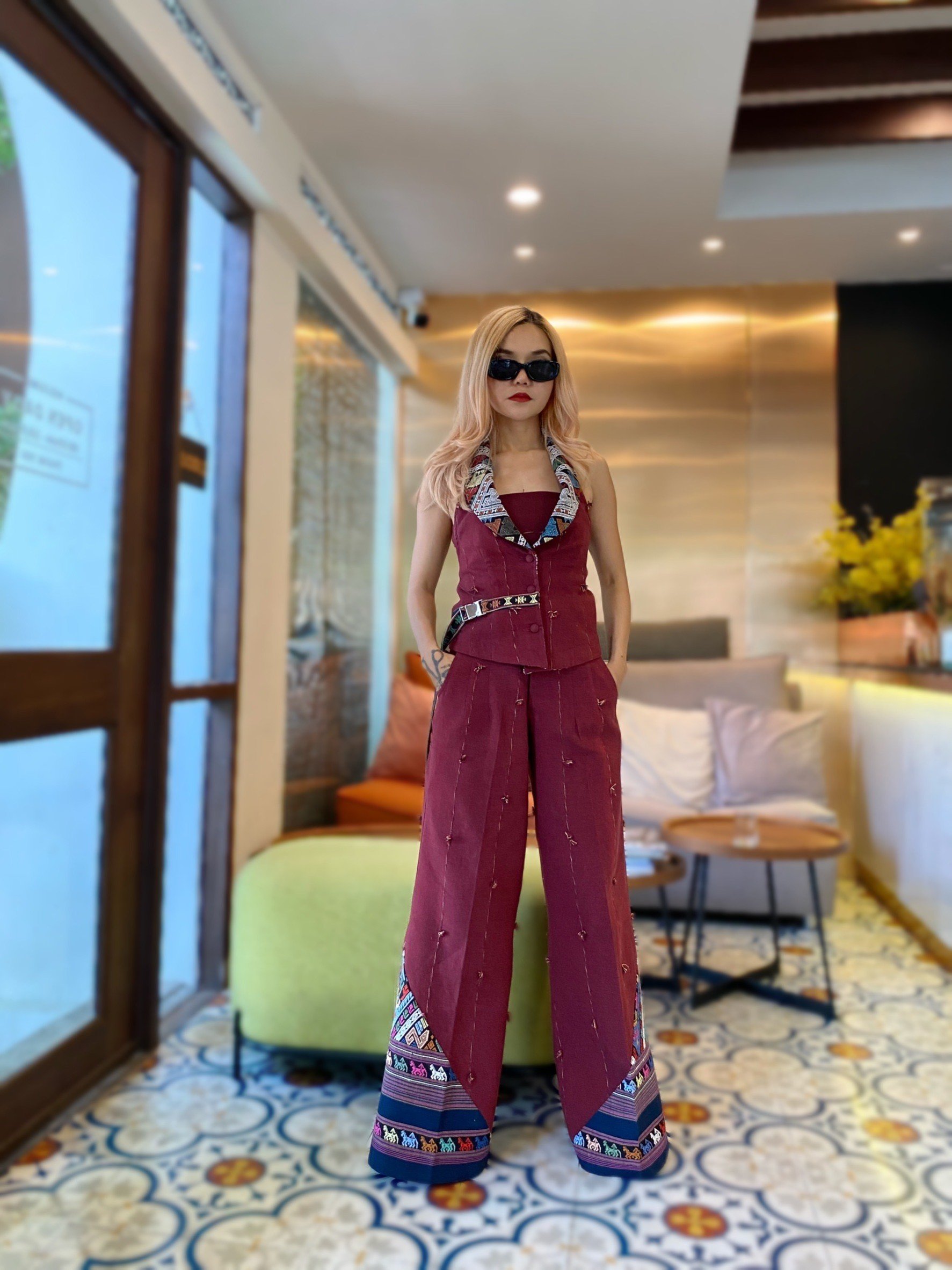 สื้อยืดคอจับจีบเฉียง มิกซ์แอนด์แมทช์ กับกางเกงจากผ้ามัดหมี่ ของดี จ.ลพบุรี