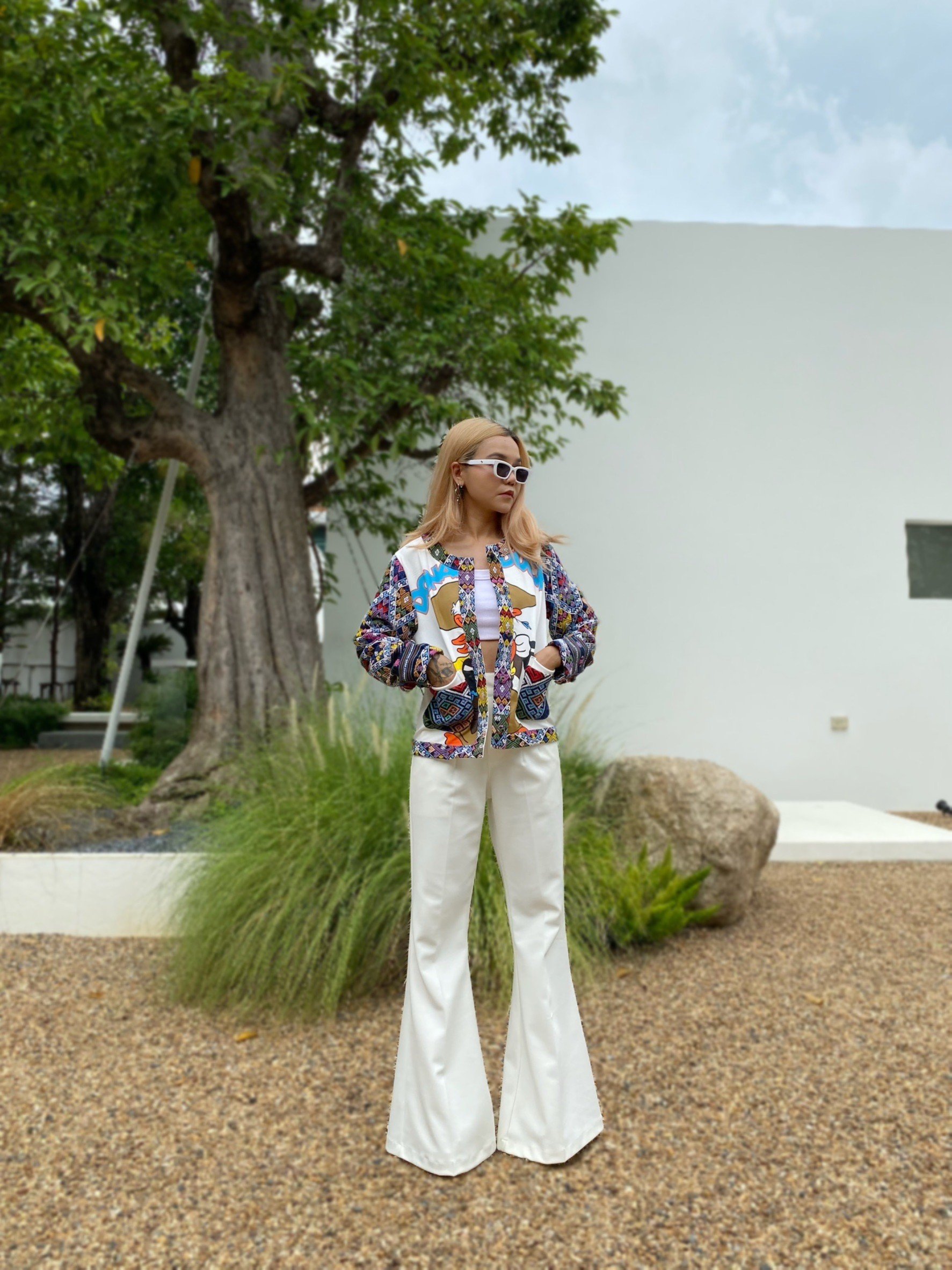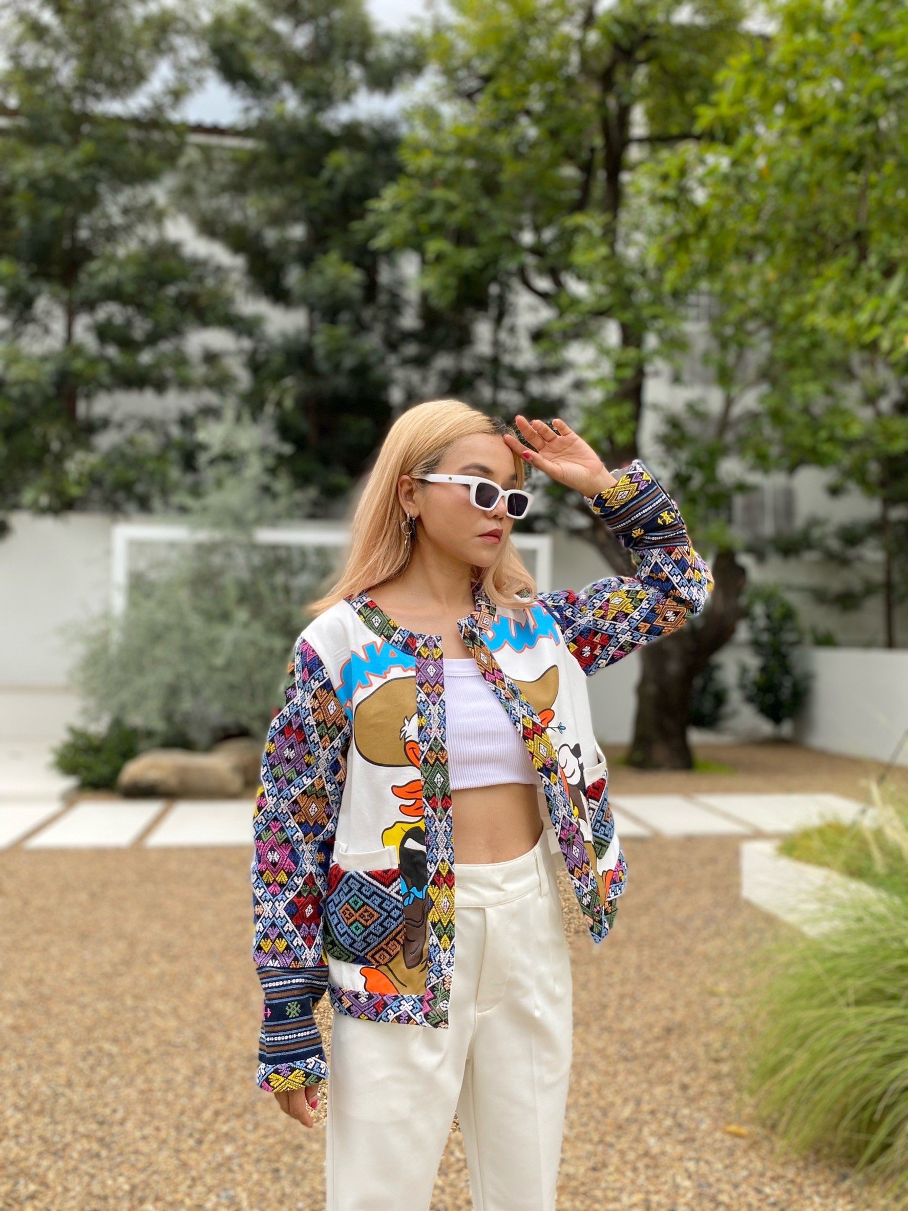 สื้อยืดคอจับจีบเฉียง มิกซ์แอนด์แมทช์ กับกางเกงจากผ้ามัดหมี่ ของดี จ.ลพบุรี