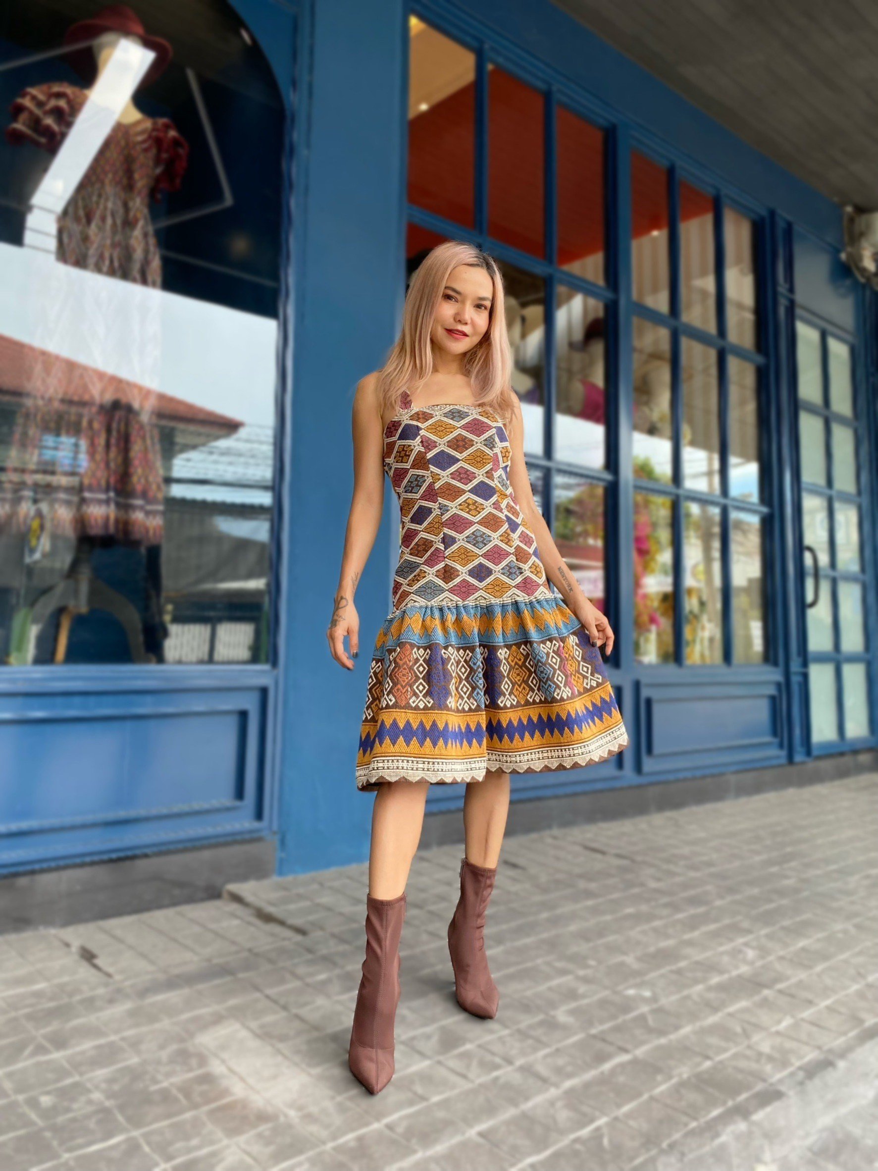 Mini Dress จากผ้าไทลื้อ x ผ้าฝ้ายทอมือ ย้อมสีธรรมชาติผลิตภัณฑ์ OTOP ของดี อําเภอเกษตรวิสัย จังหวัดร้อยเอ็ด