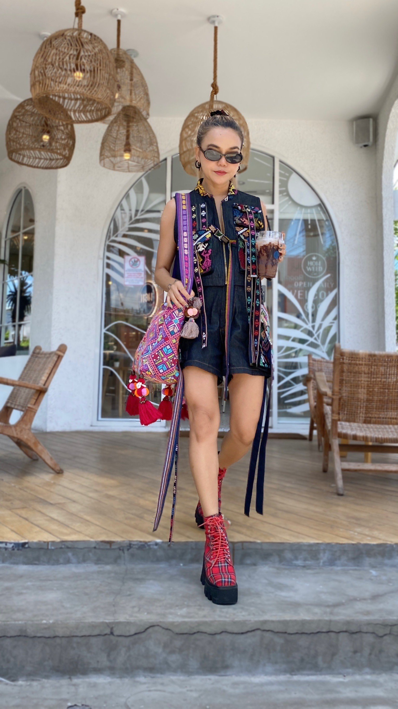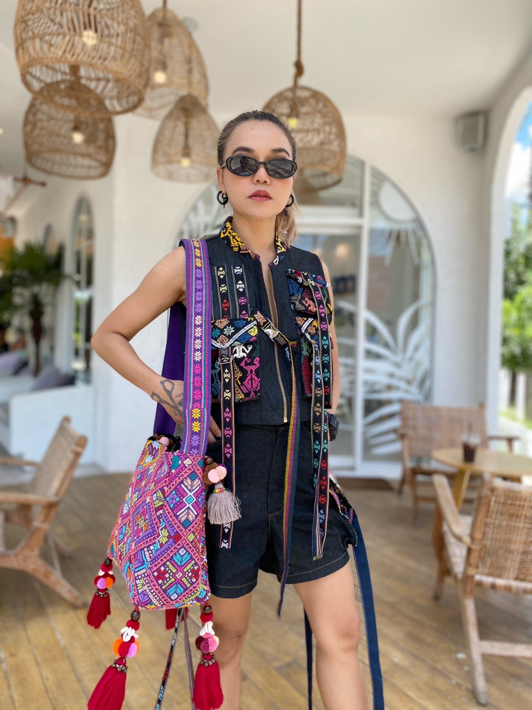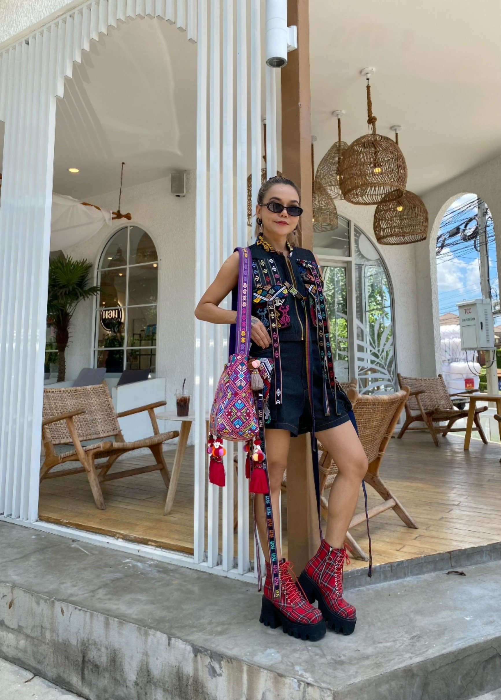 สื้อยืดคอจับจีบเฉียง มิกซ์แอนด์แมทช์ กับกางเกงจากผ้ามัดหมี่ ของดี จ.ลพบุรี