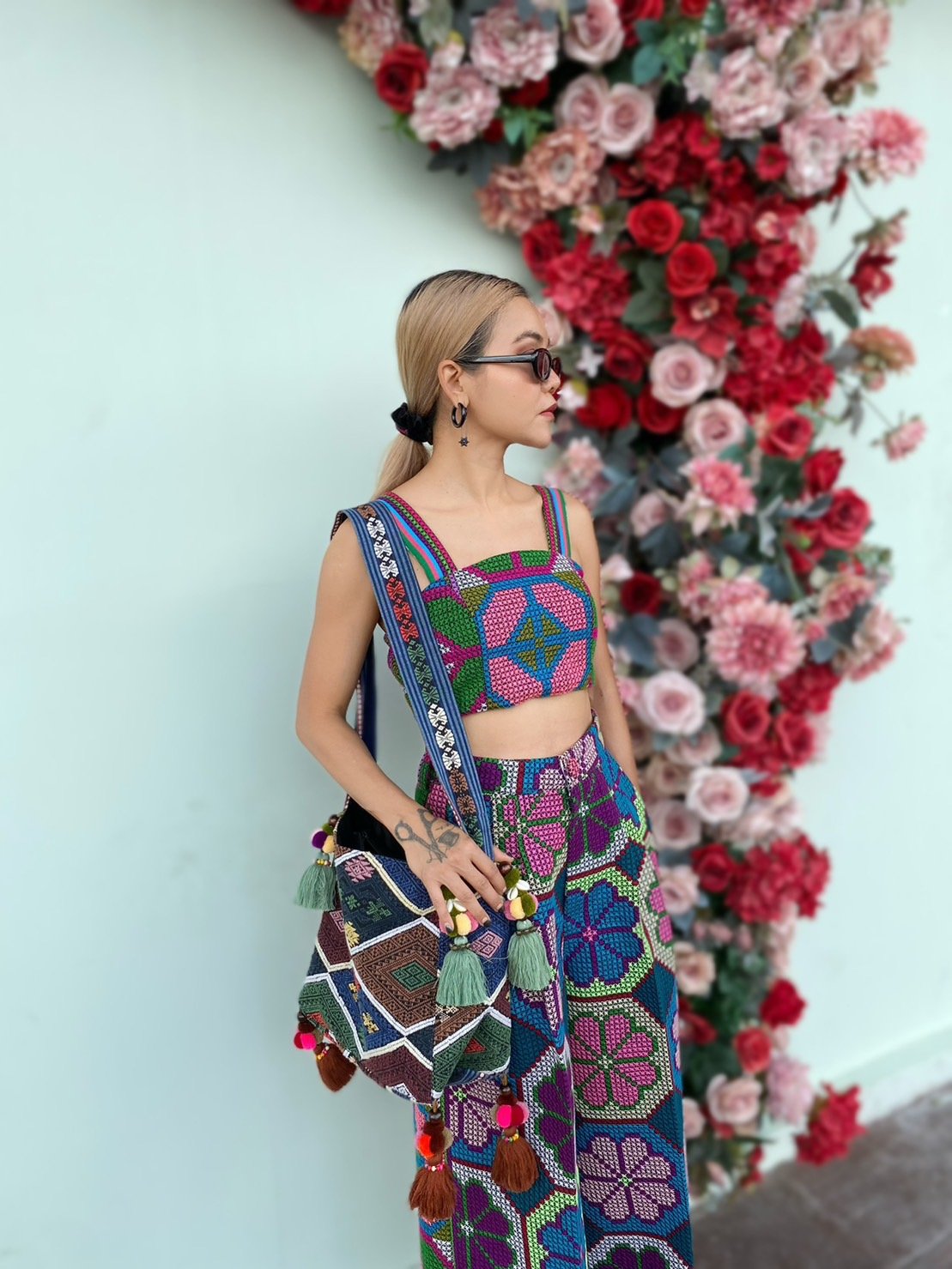 สื้อยืดคอจับจีบเฉียง มิกซ์แอนด์แมทช์ กับกางเกงจากผ้ามัดหมี่ ของดี จ.ลพบุรี