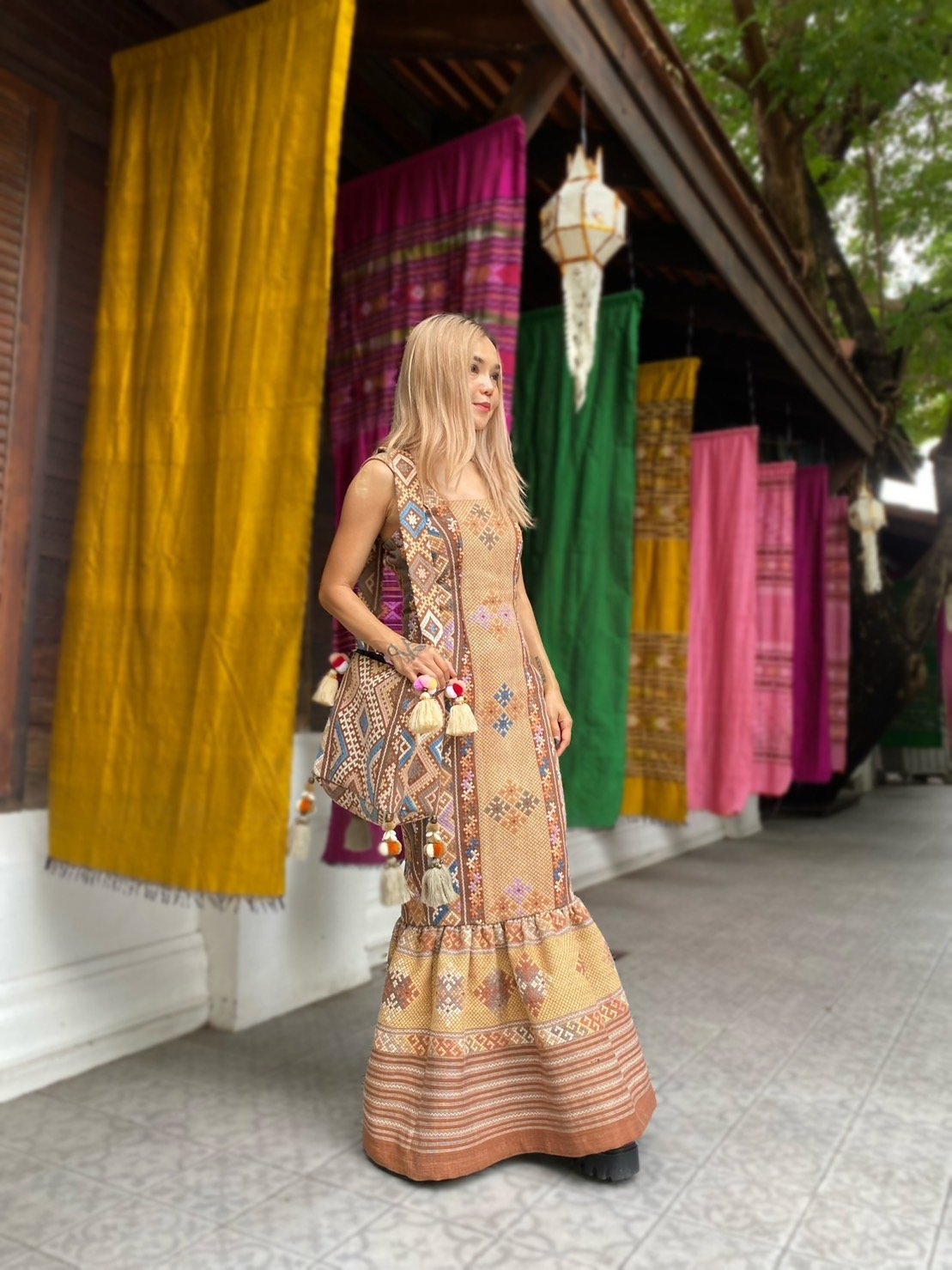 Maxi Dress จากผ้าขาวม้า ทอจากโรงทอจังหวัดราชบุรี