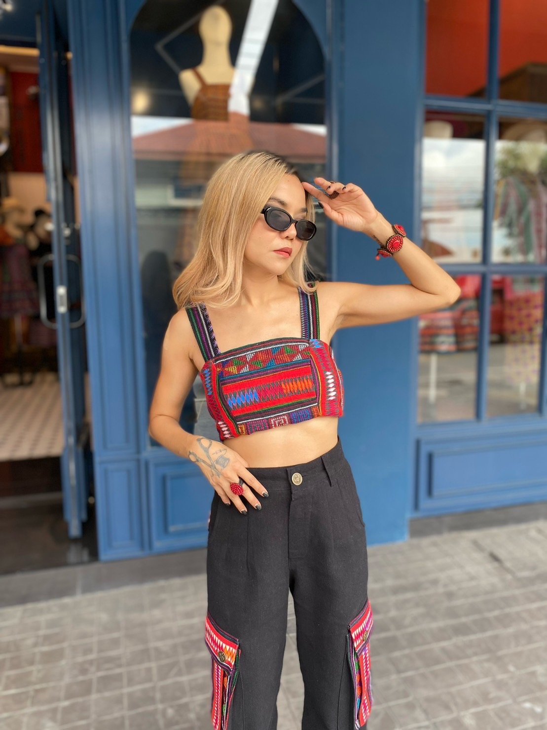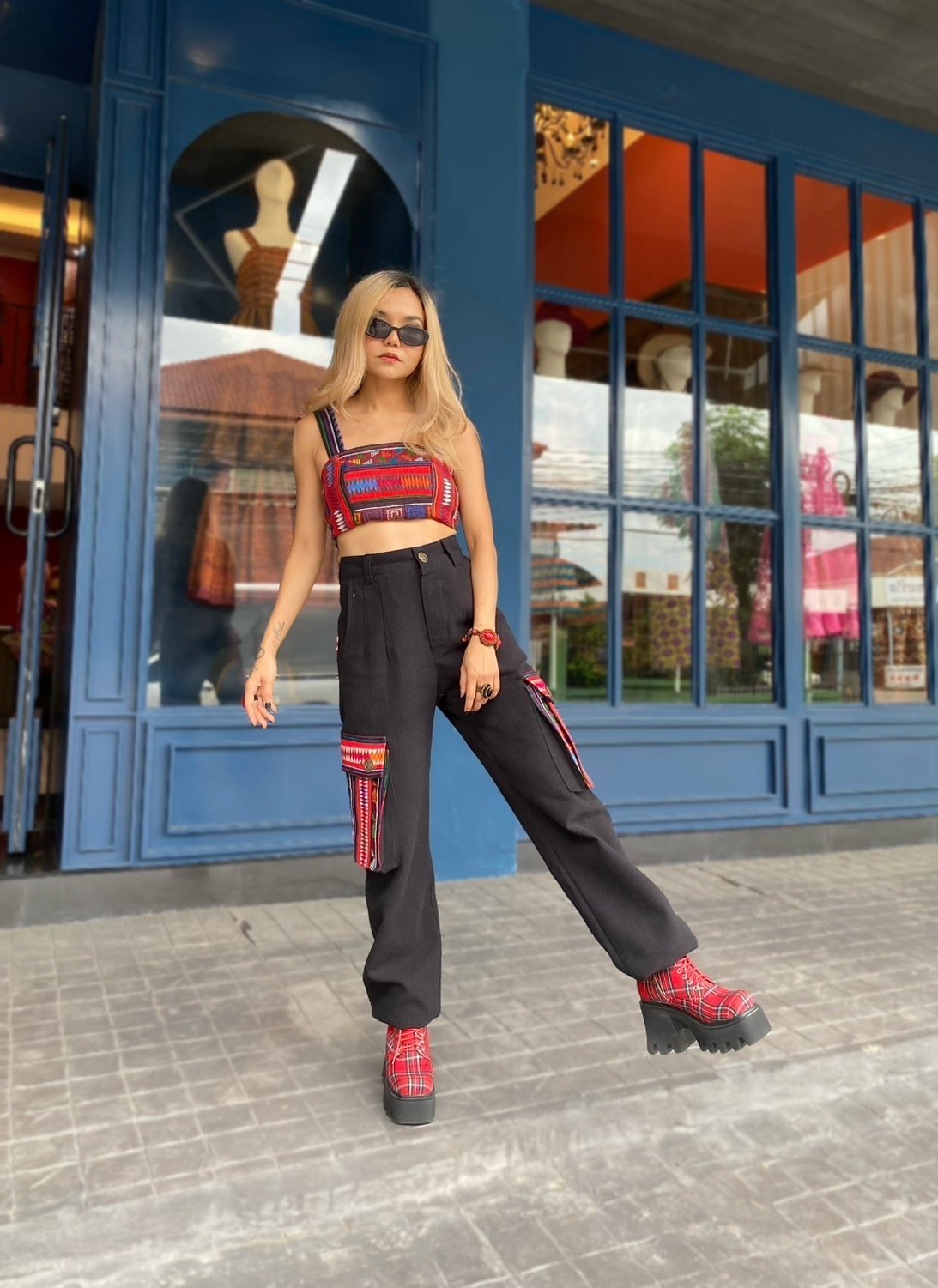สื้อยืดคอจับจีบเฉียง มิกซ์แอนด์แมทช์ กับกางเกงจากผ้ามัดหมี่ ของดี จ.ลพบุรี