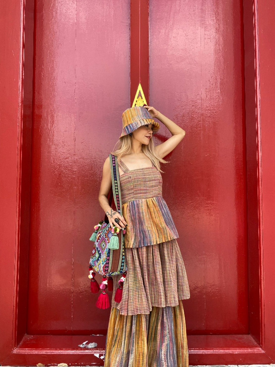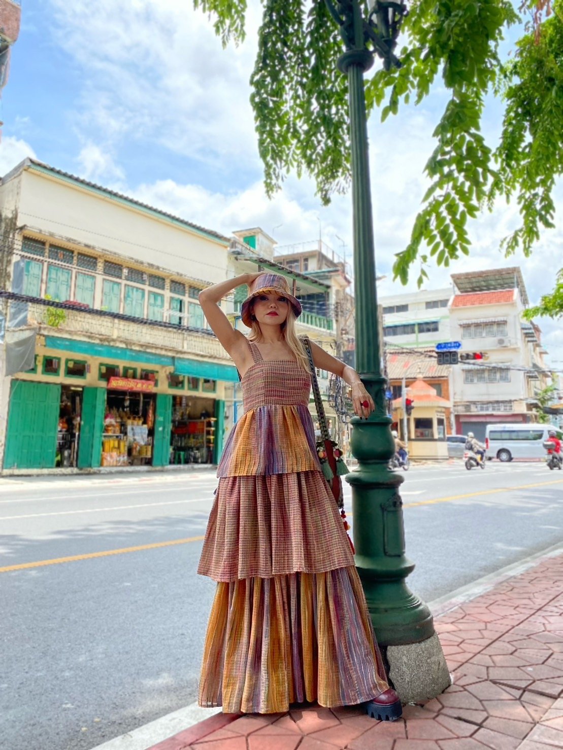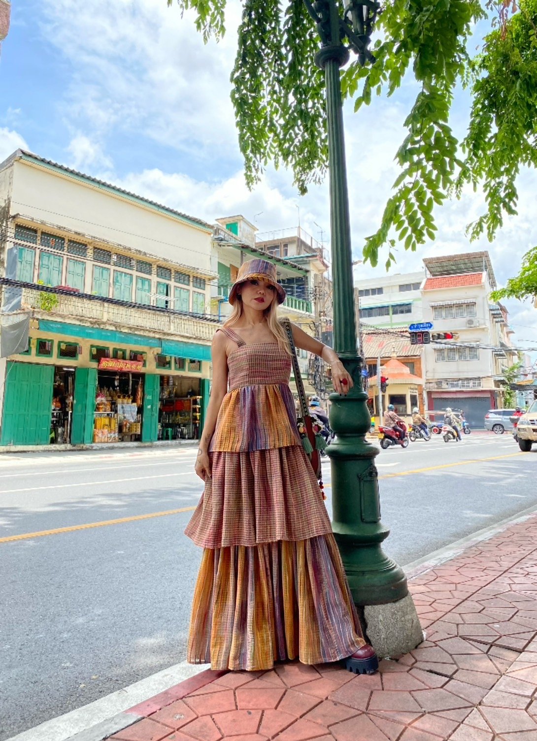 Maxi Dress จากผ้าขาวม้า ทอจากโรงทอจังหวัดราชบุรี