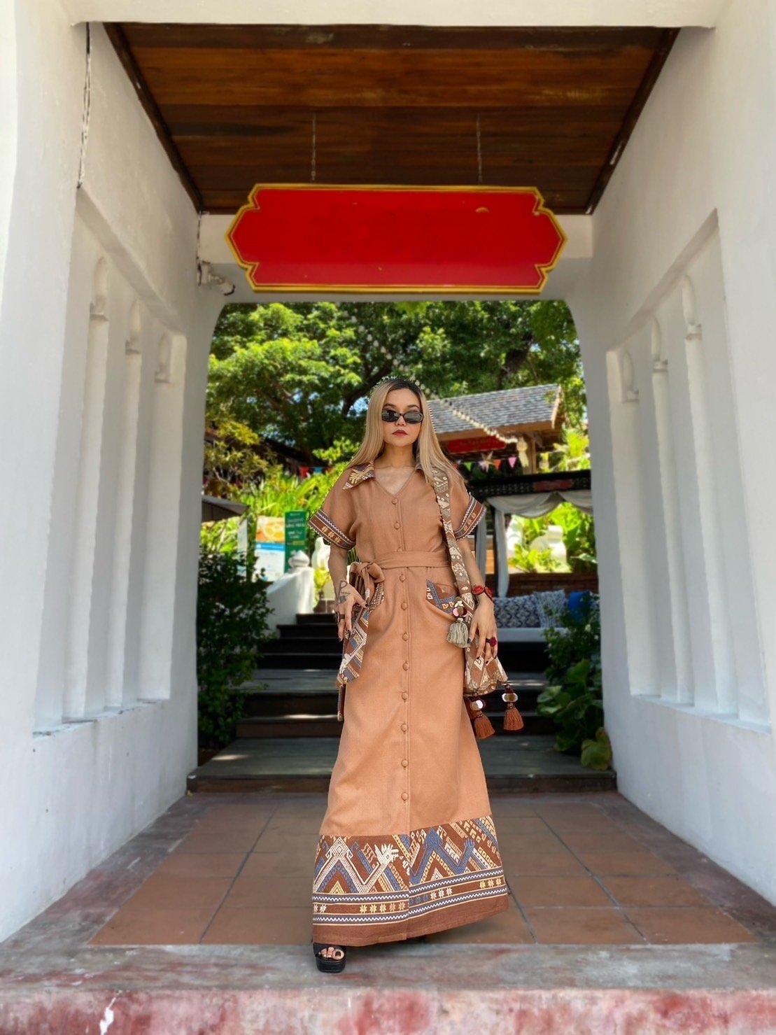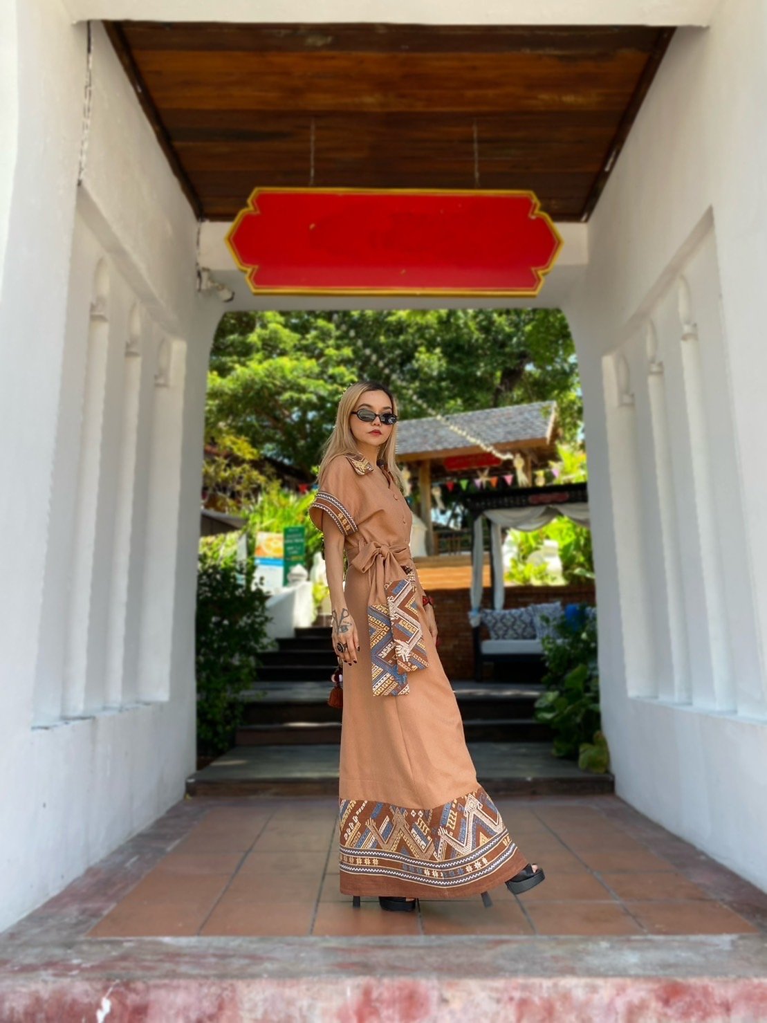 Maxi Dress จากผ้าขาวม้า ทอจากโรงทอจังหวัดราชบุรี