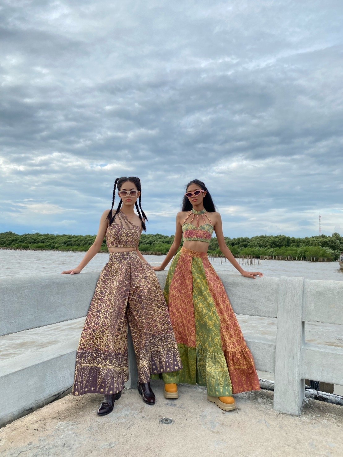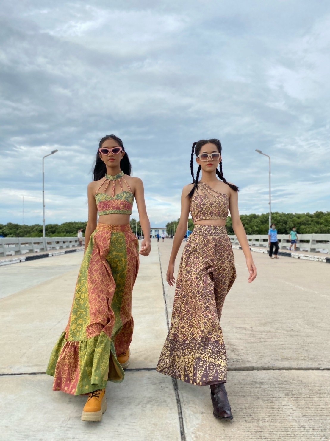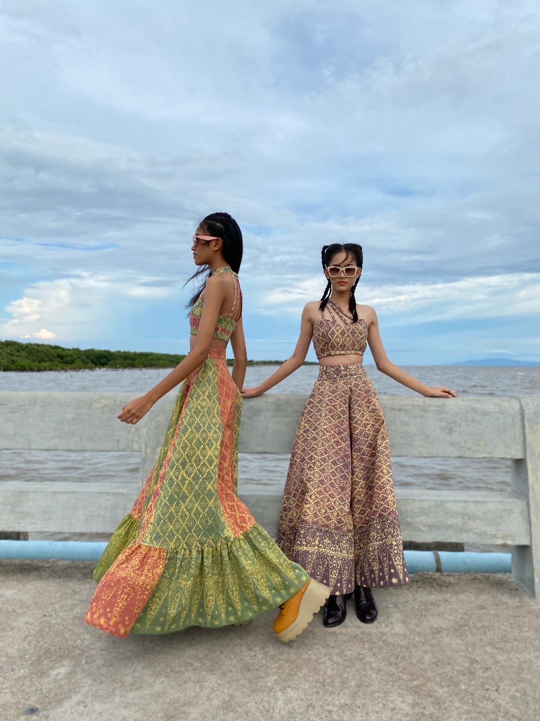 สื้อยืดคอจับจีบเฉียง มิกซ์แอนด์แมทช์ กับกางเกงจากผ้ามัดหมี่ ของดี จ.ลพบุรี