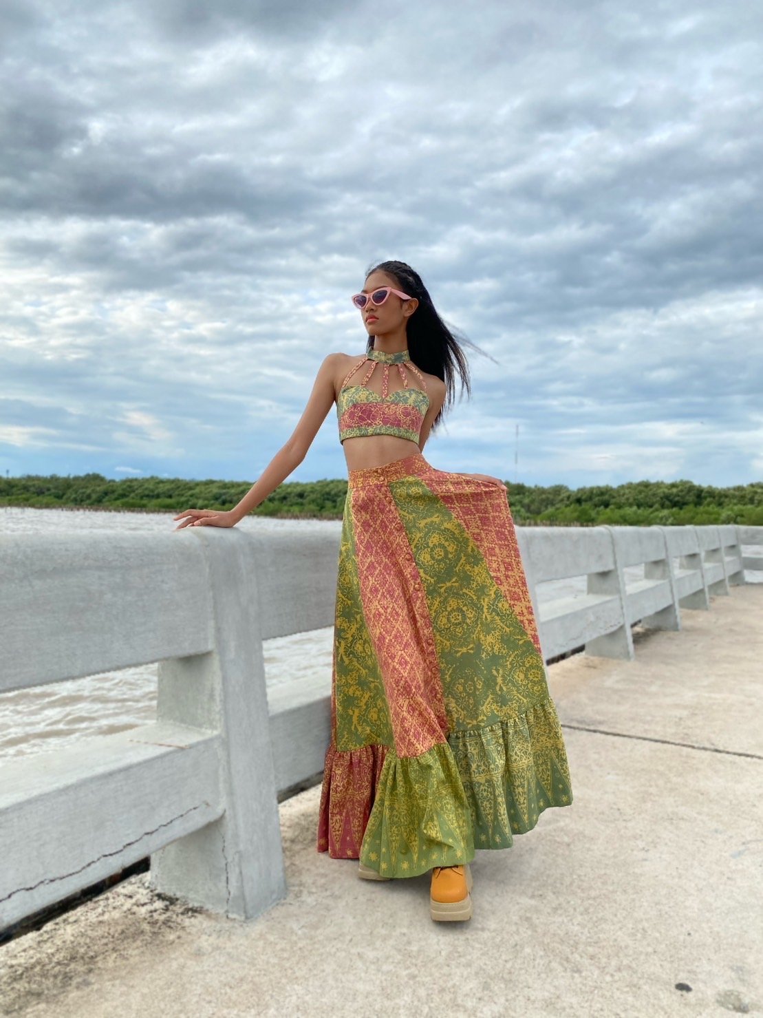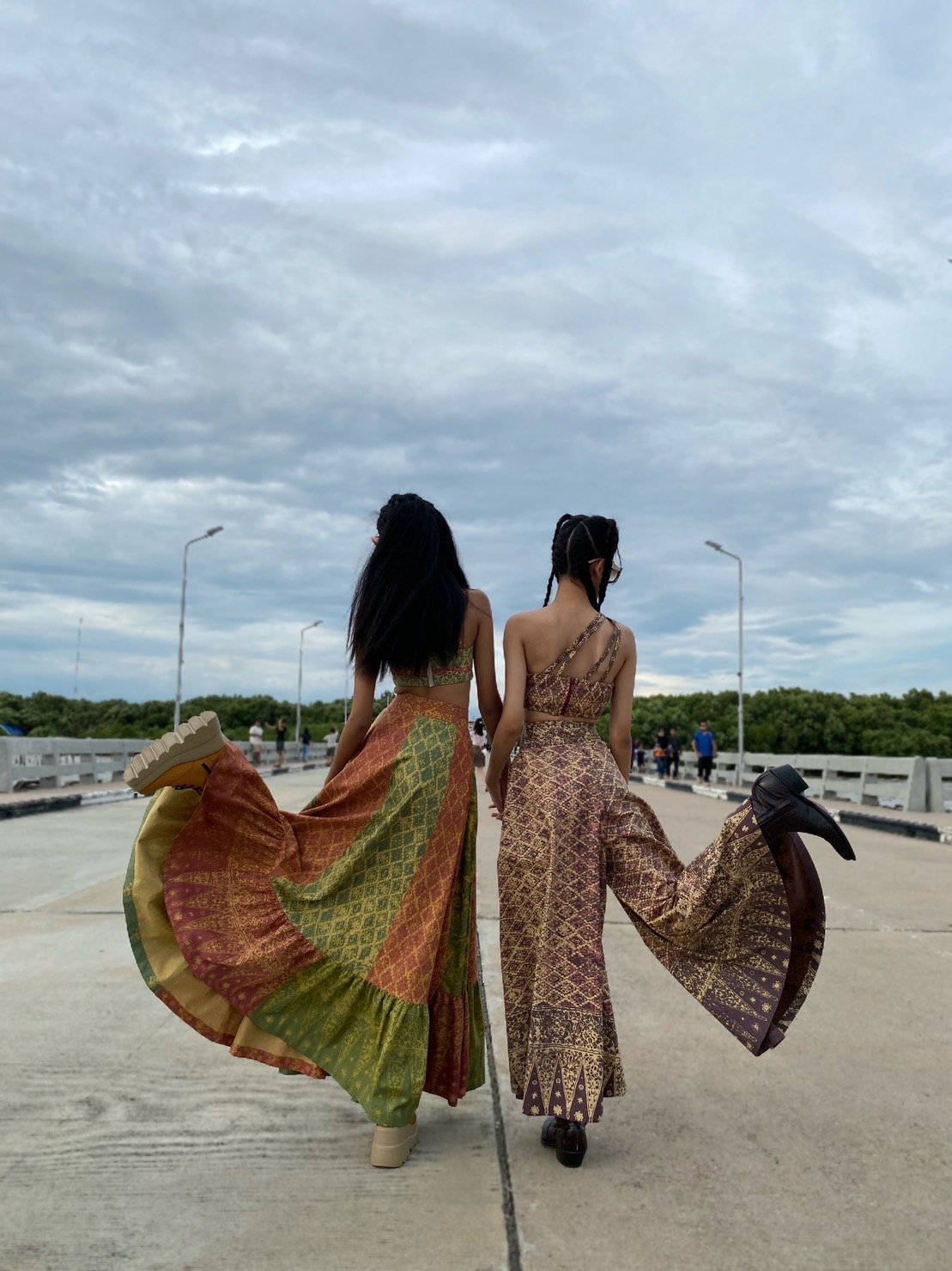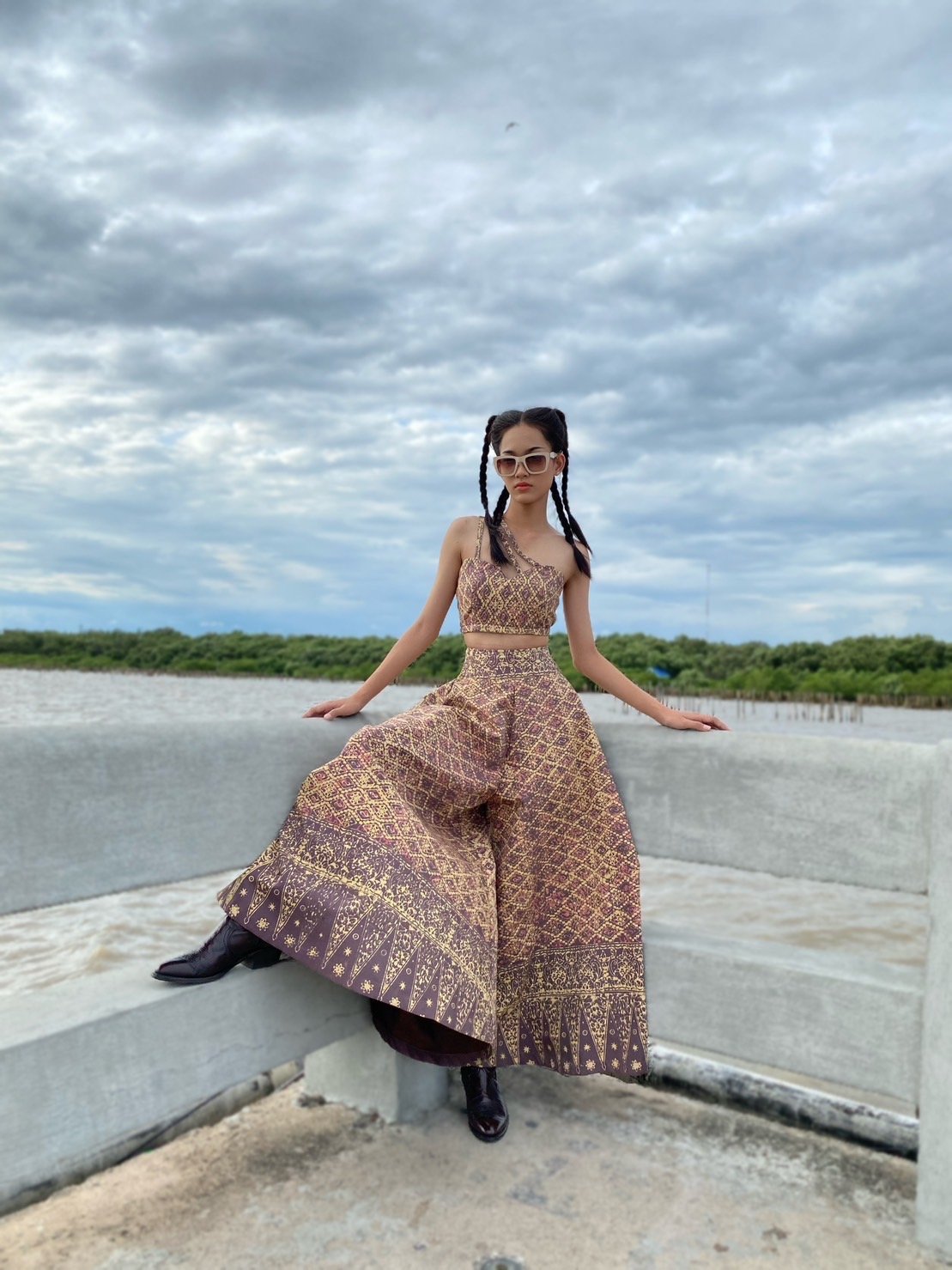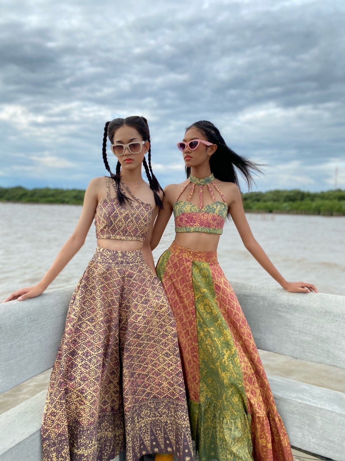 สื้อยืดคอจับจีบเฉียง มิกซ์แอนด์แมทช์ กับกางเกงจากผ้ามัดหมี่ ของดี จ.ลพบุรี