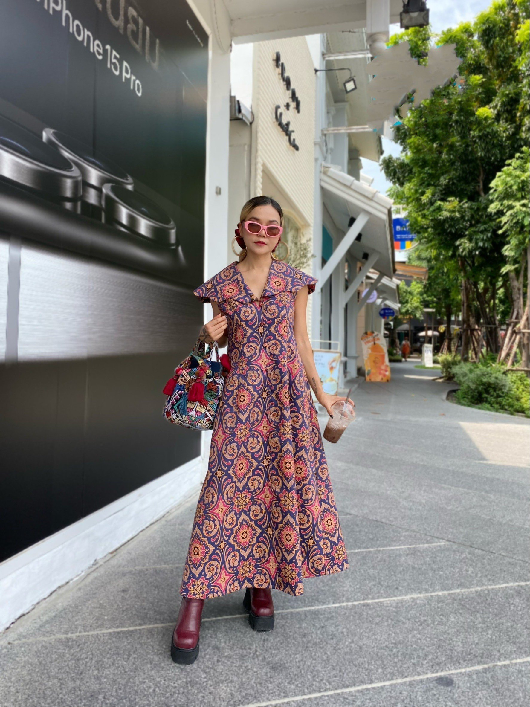 Ruffle Layer Maxi Dress จากผ้าพิมพ์ลายช้าง