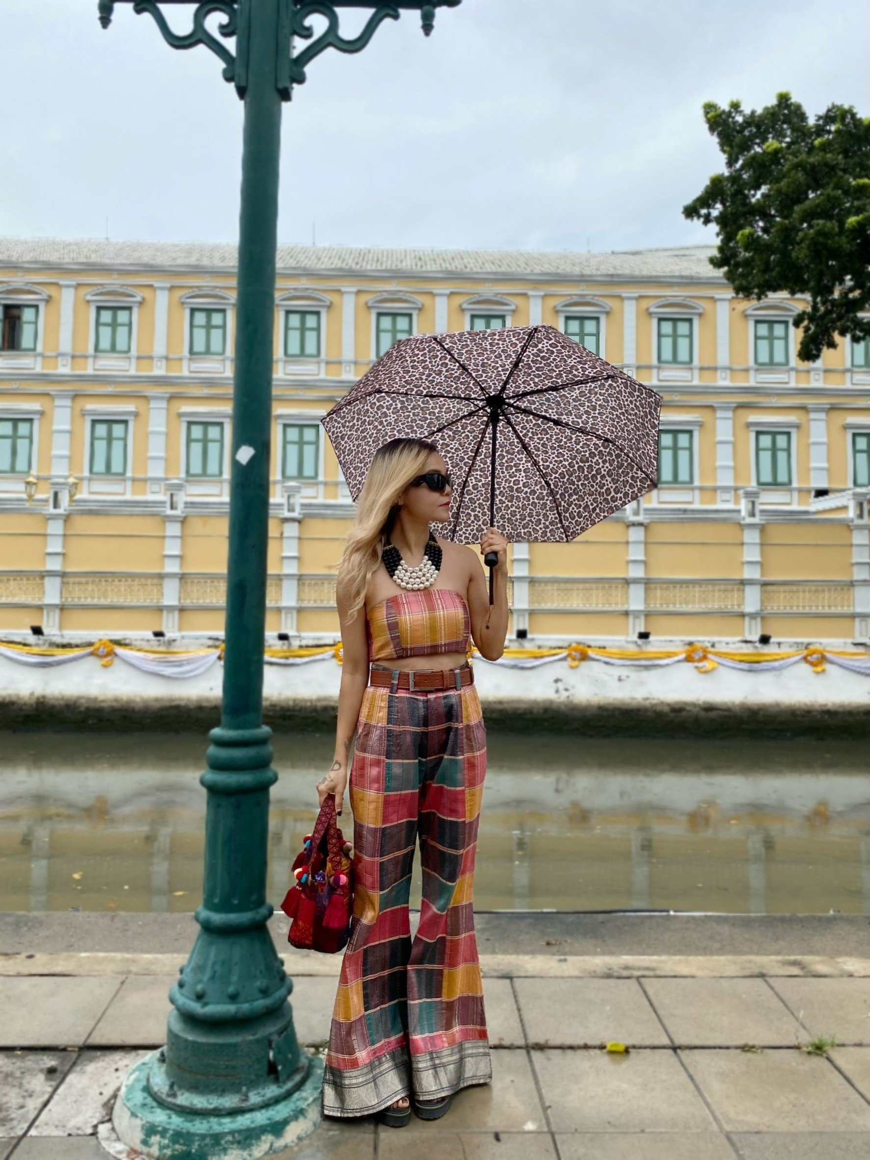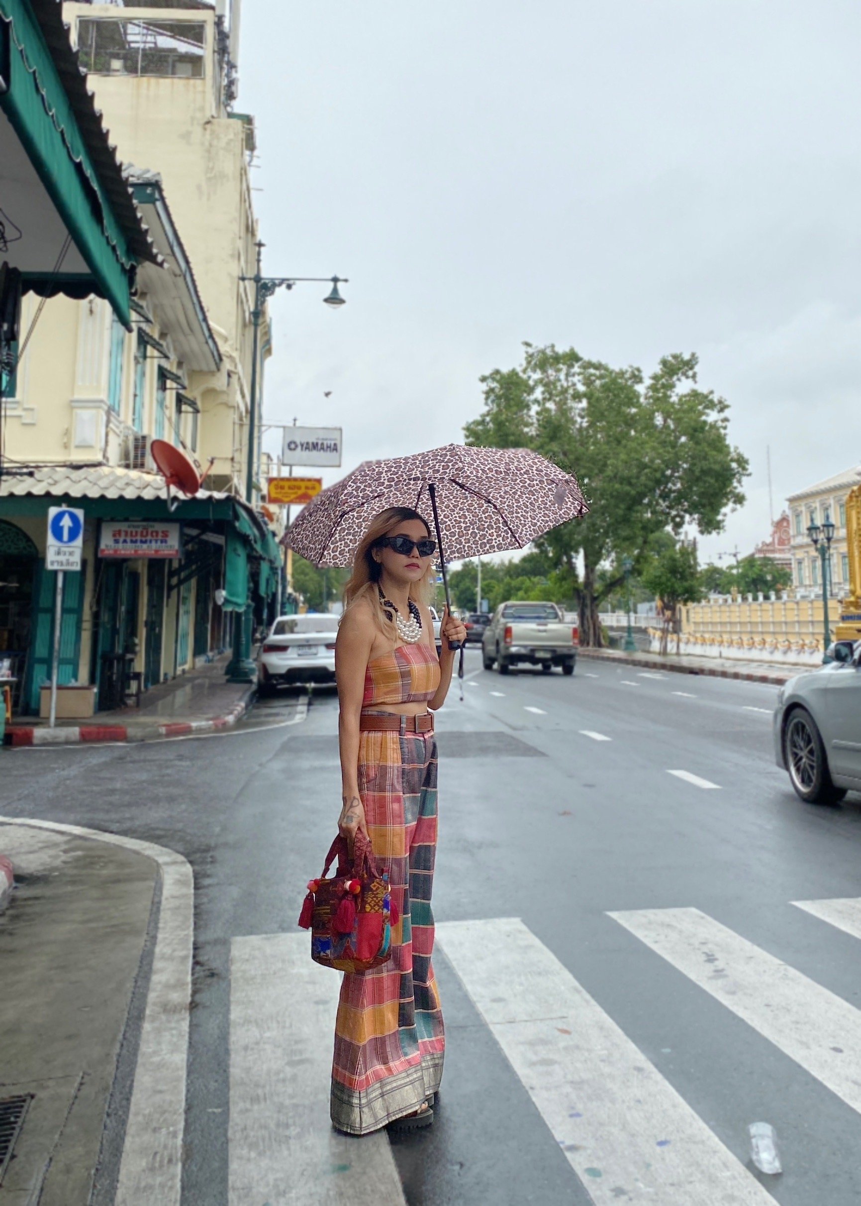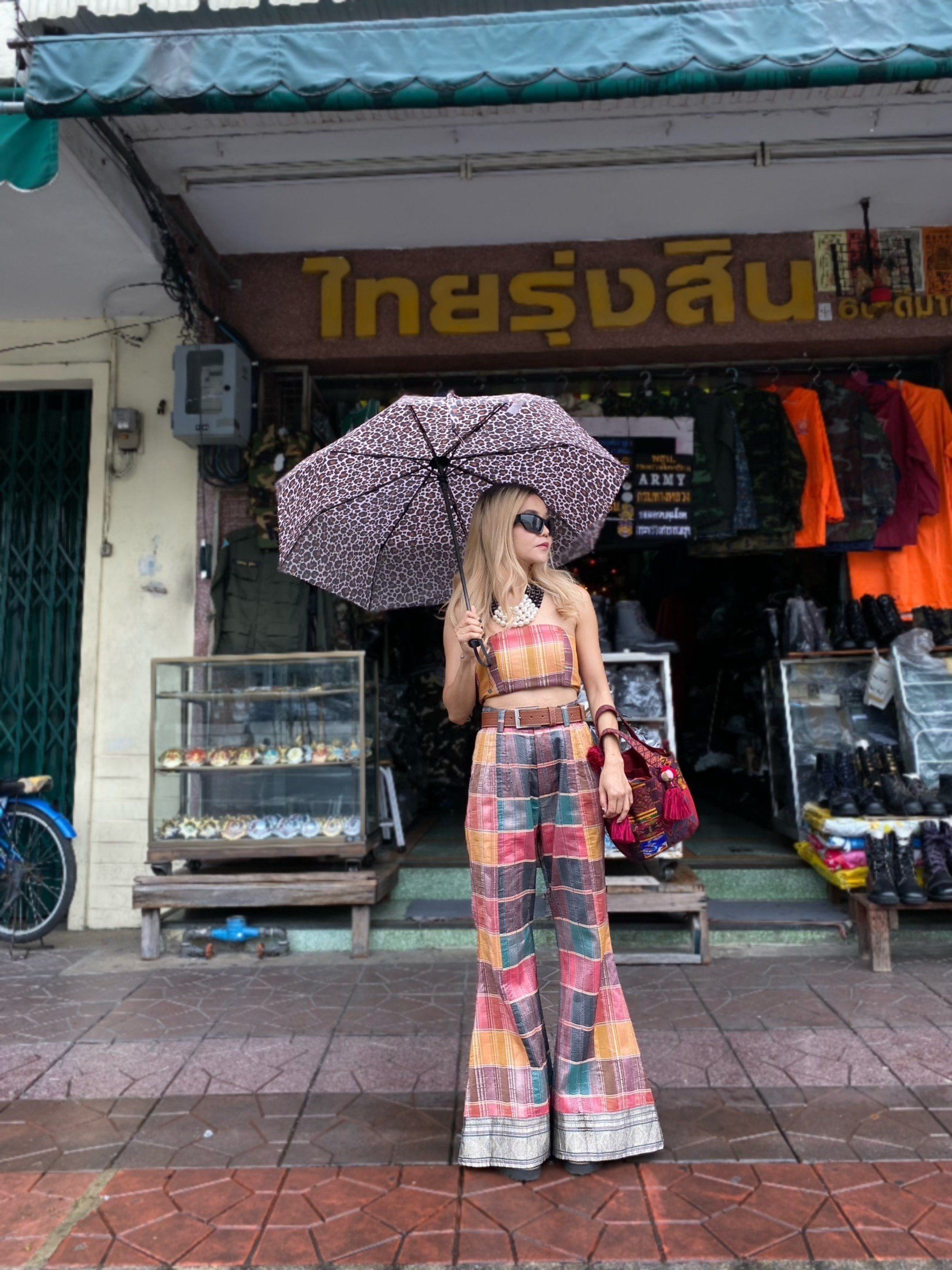 สื้อยืดคอจับจีบเฉียง มิกซ์แอนด์แมทช์ กับกางเกงจากผ้ามัดหมี่ ของดี จ.ลพบุรี