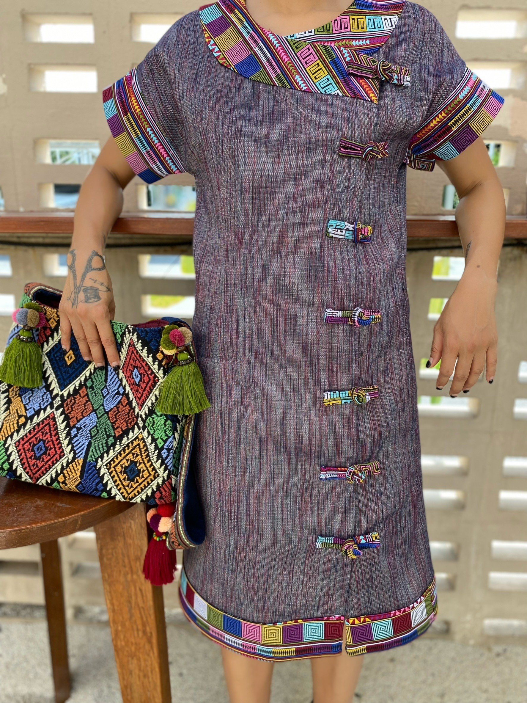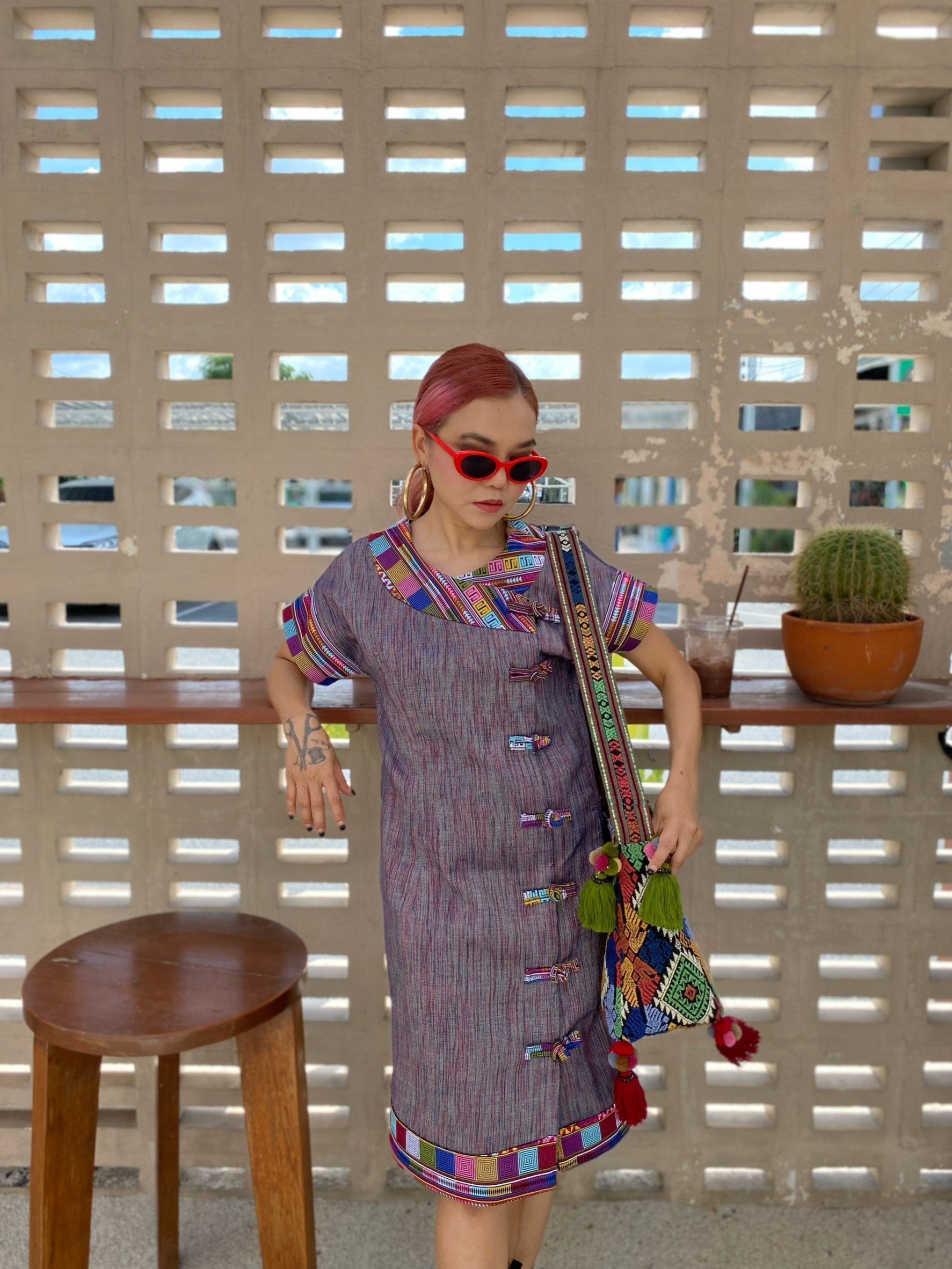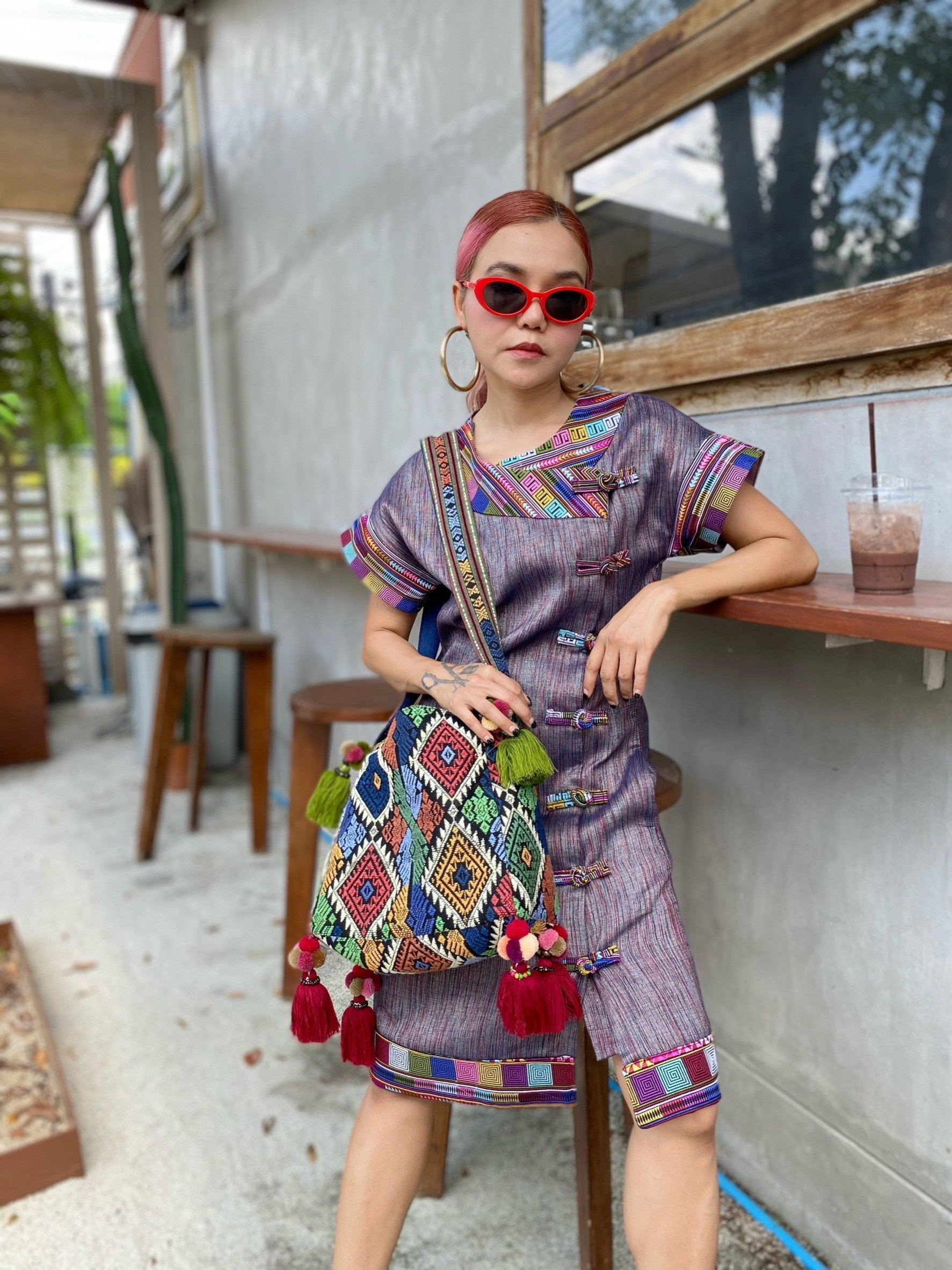 Mini Dress จากผ้าไทลื้อ x ผ้าฝ้ายทอมือ ย้อมสีธรรมชาติผลิตภัณฑ์ OTOP ของดี อําเภอเกษตรวิสัย จังหวัดร้อยเอ็ด