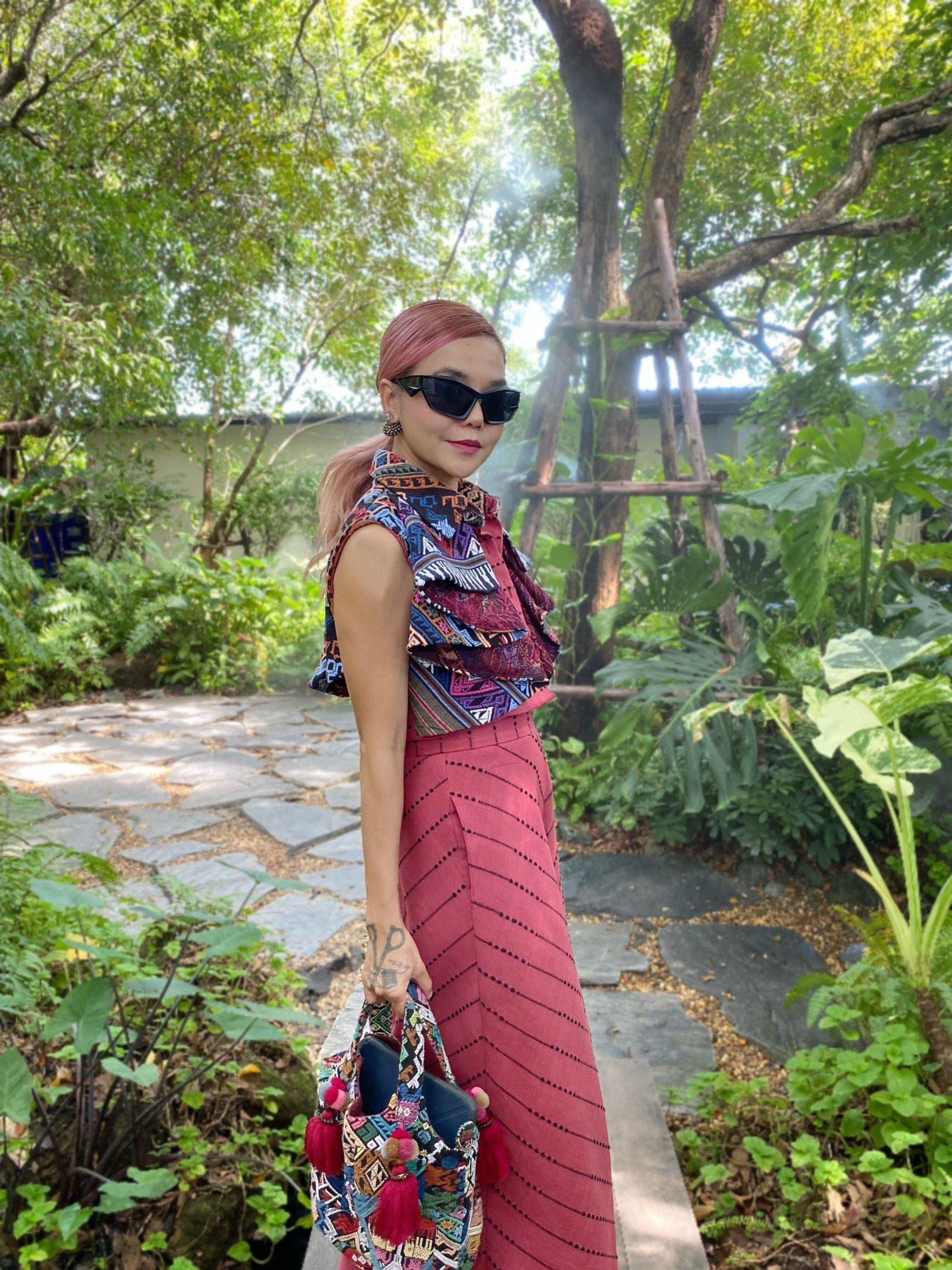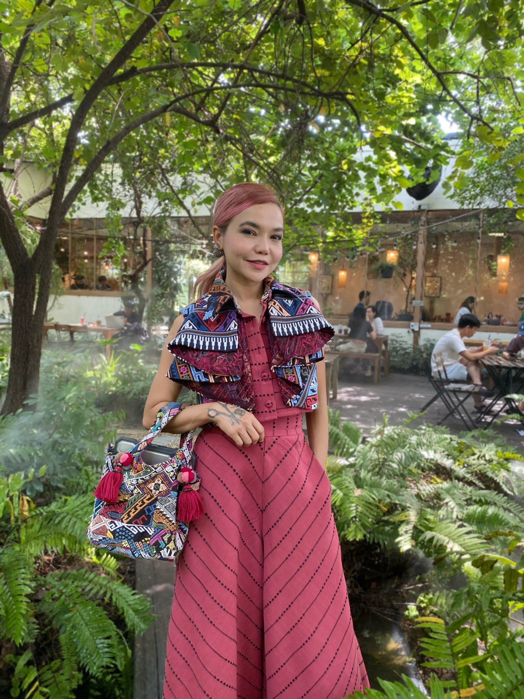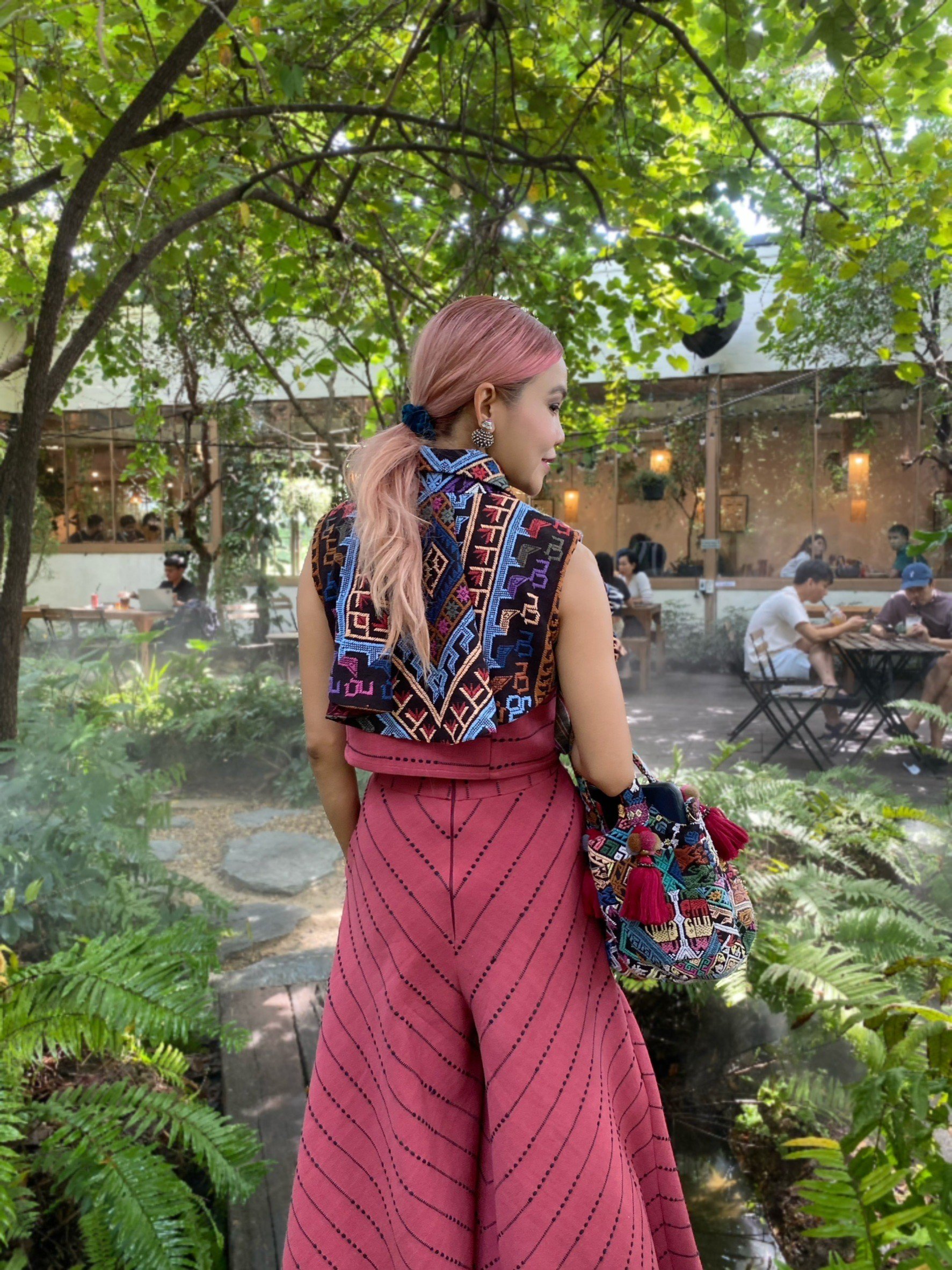 สื้อยืดคอจับจีบเฉียง มิกซ์แอนด์แมทช์ กับกางเกงจากผ้ามัดหมี่ ของดี จ.ลพบุรี