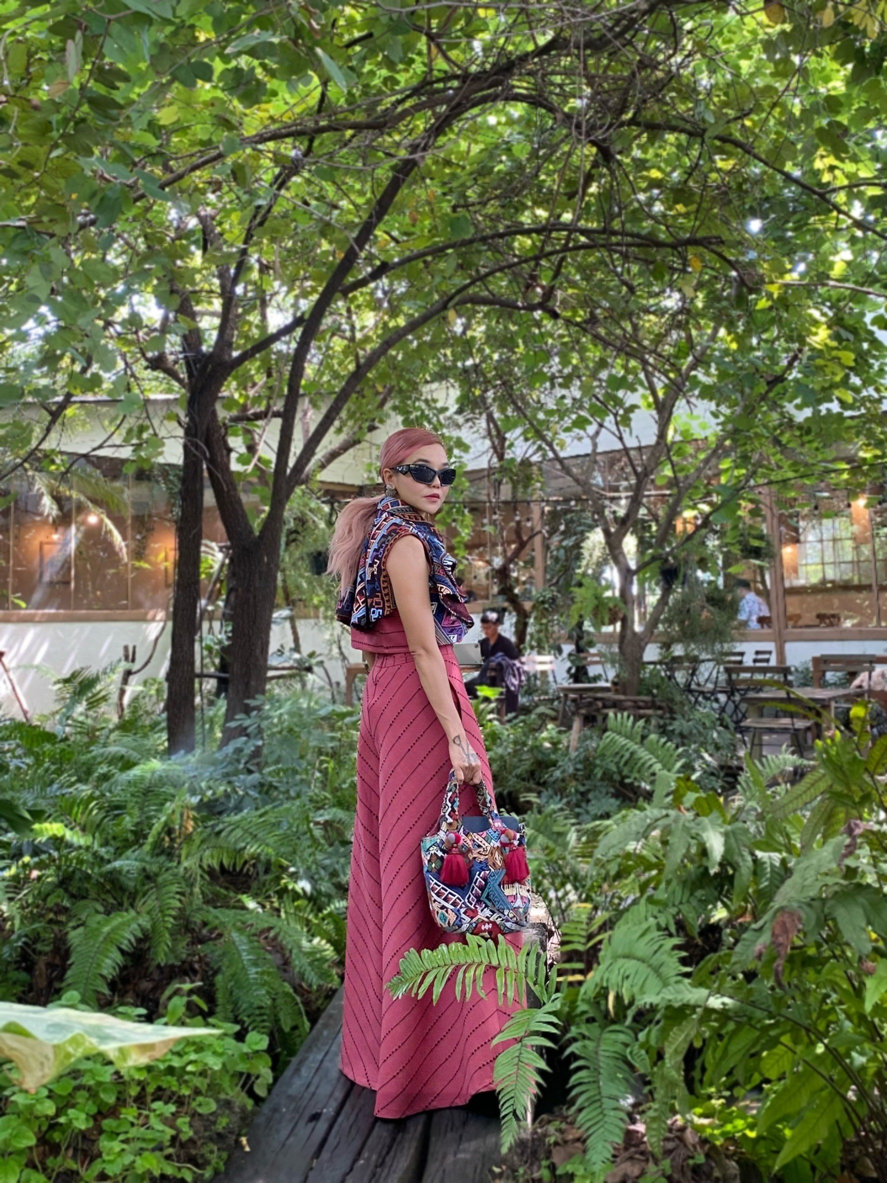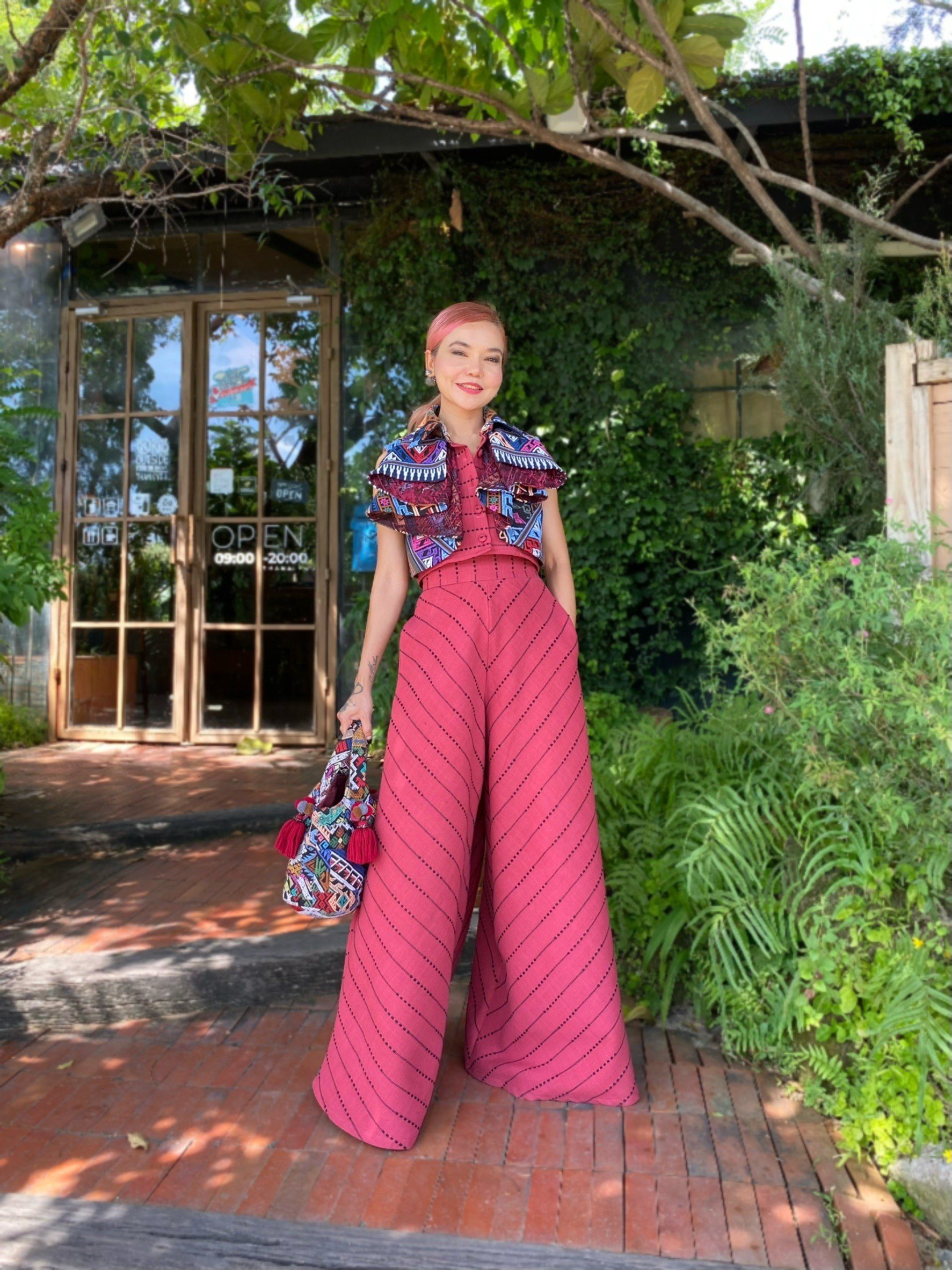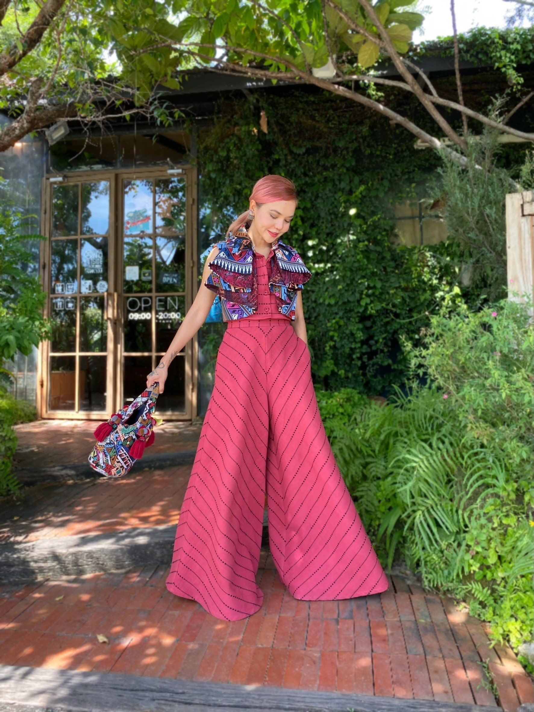 สื้อยืดคอจับจีบเฉียง มิกซ์แอนด์แมทช์ กับกางเกงจากผ้ามัดหมี่ ของดี จ.ลพบุรี