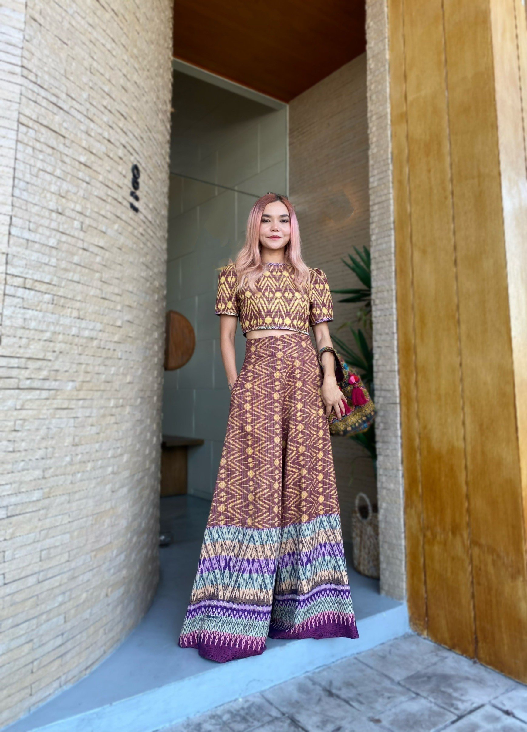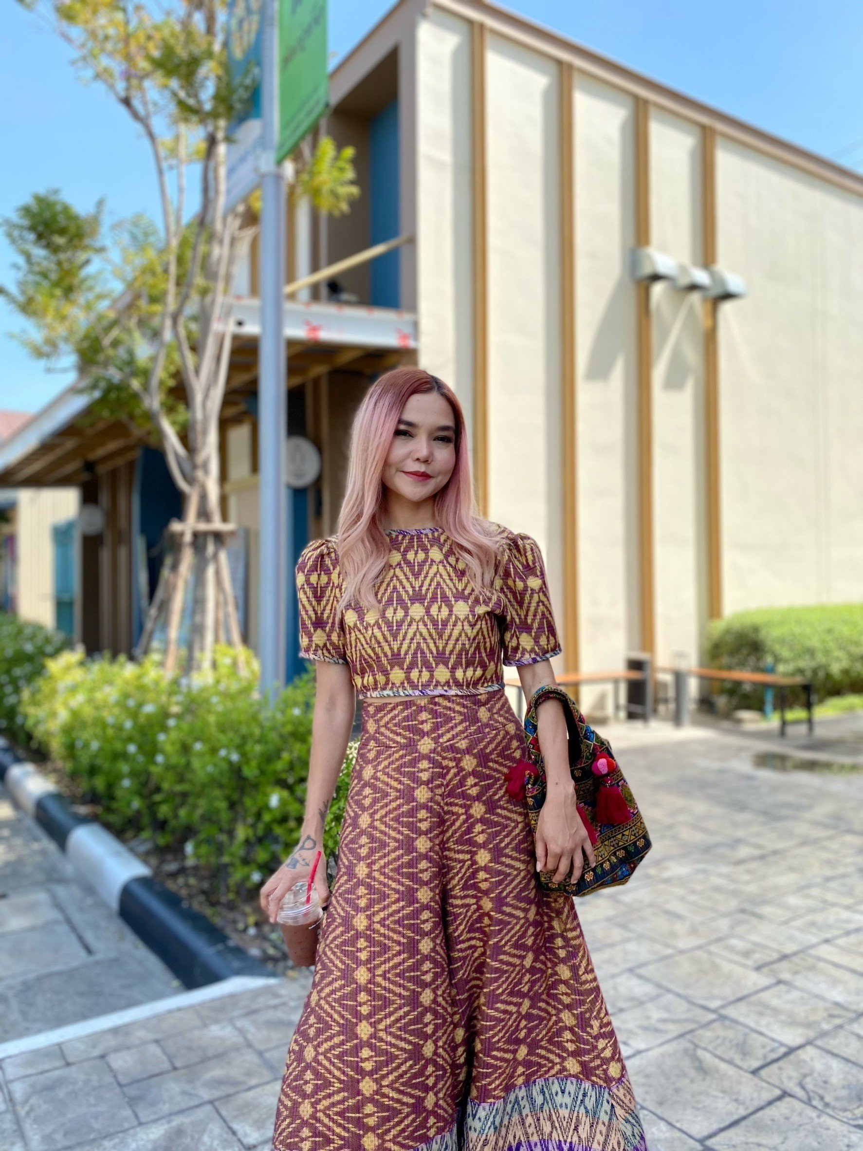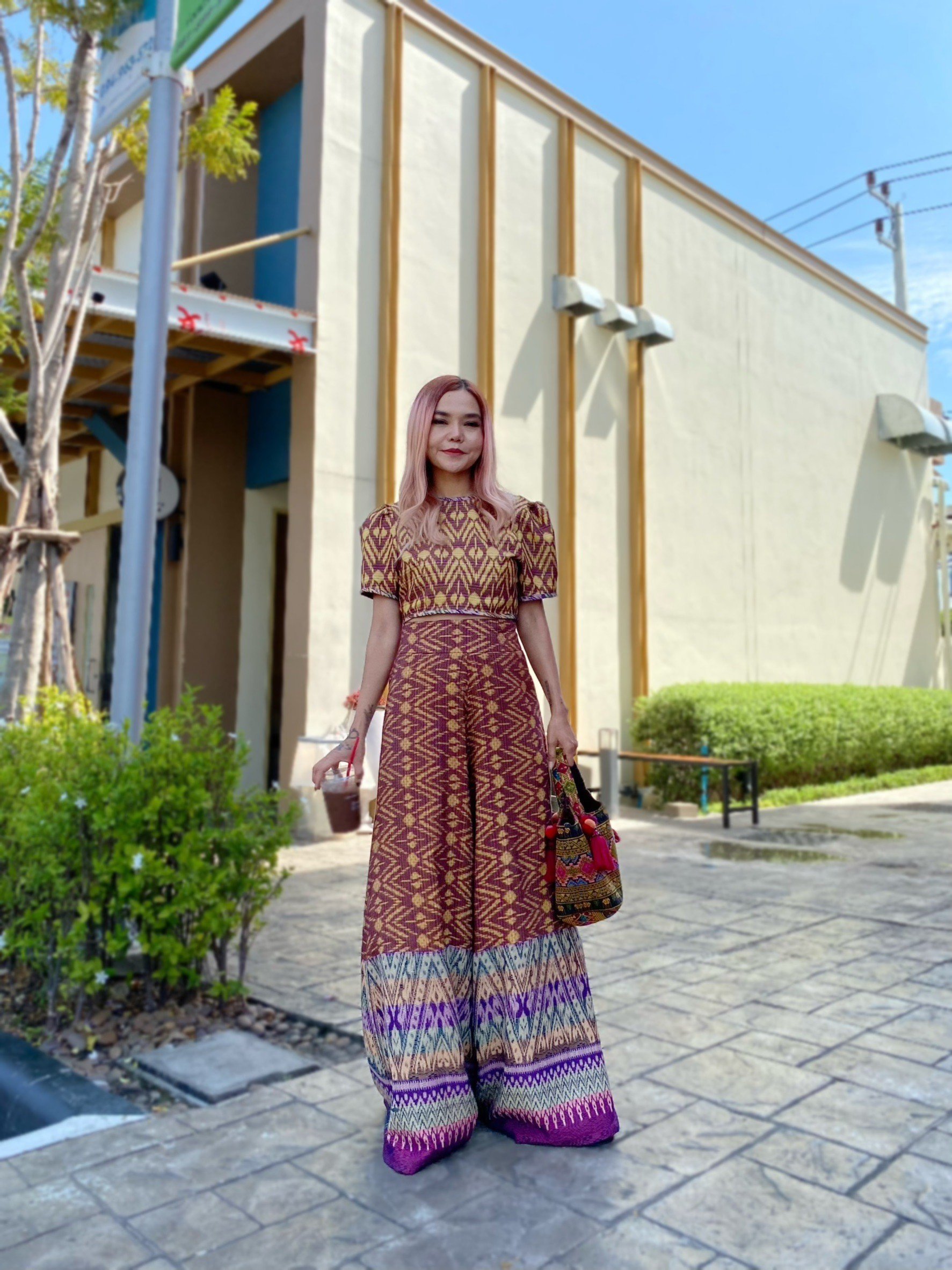 สื้อยืดคอจับจีบเฉียง มิกซ์แอนด์แมทช์ กับกางเกงจากผ้ามัดหมี่ ของดี จ.ลพบุรี