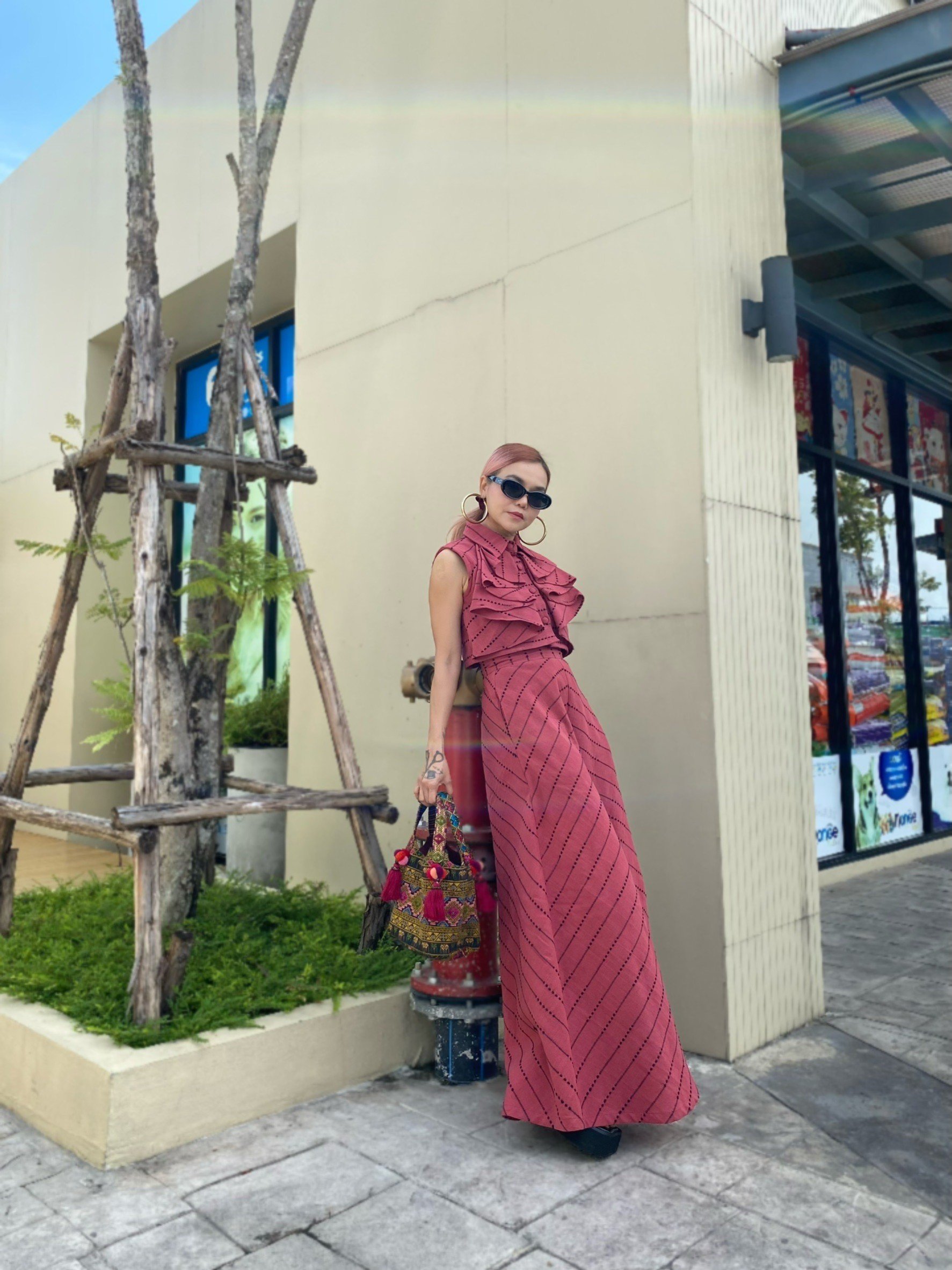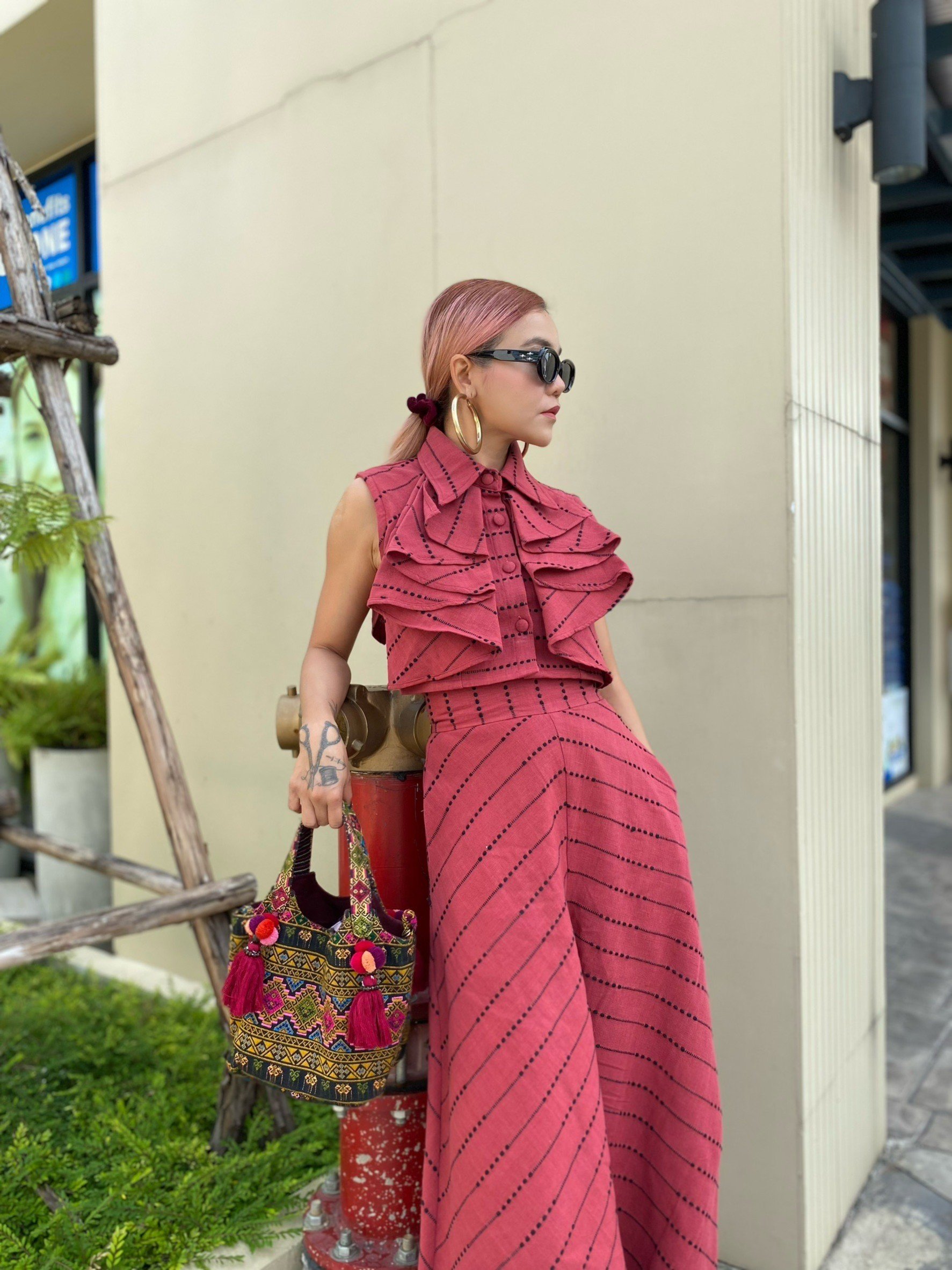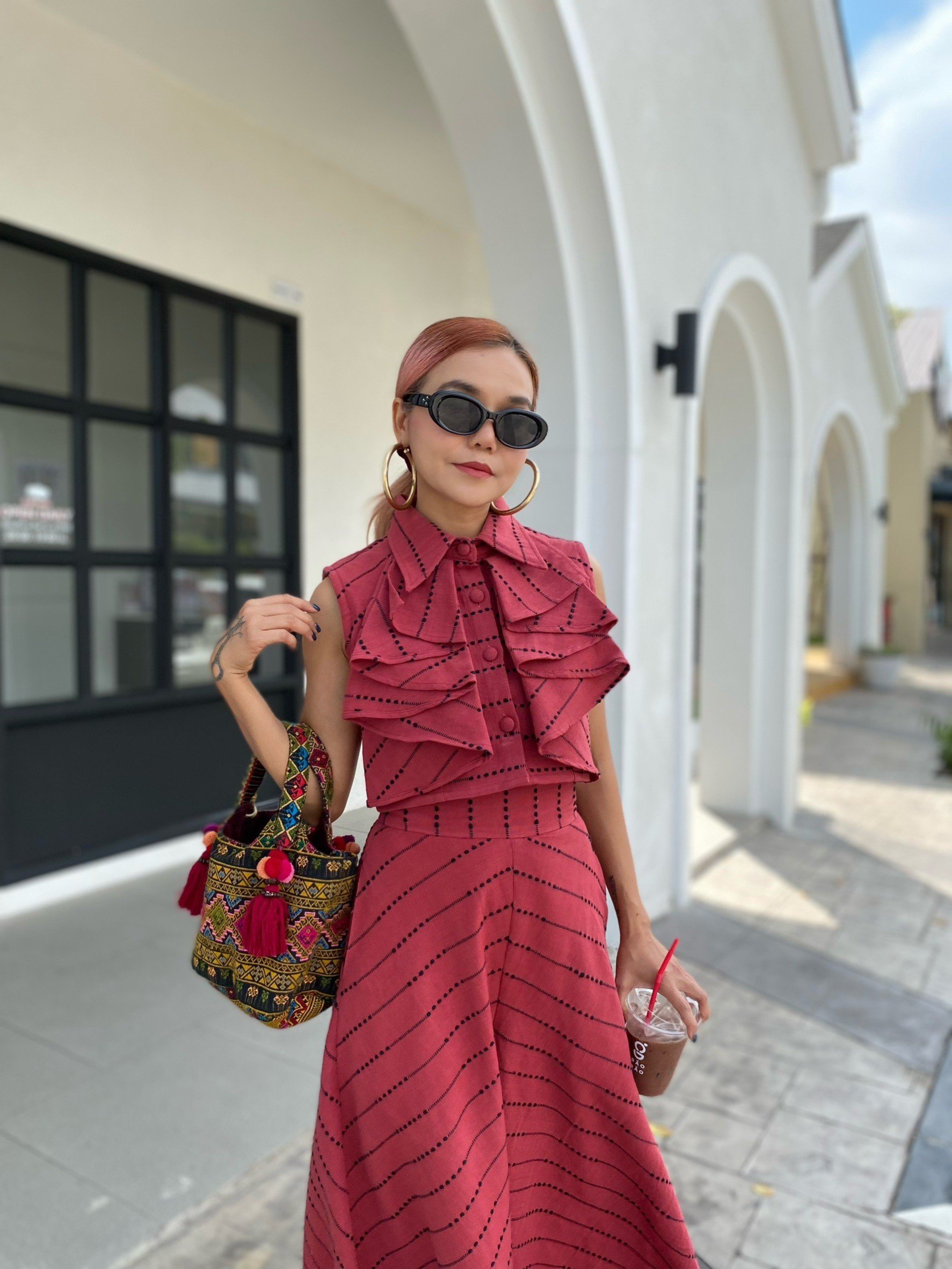 สื้อยืดคอจับจีบเฉียง มิกซ์แอนด์แมทช์ กับกางเกงจากผ้ามัดหมี่ ของดี จ.ลพบุรี