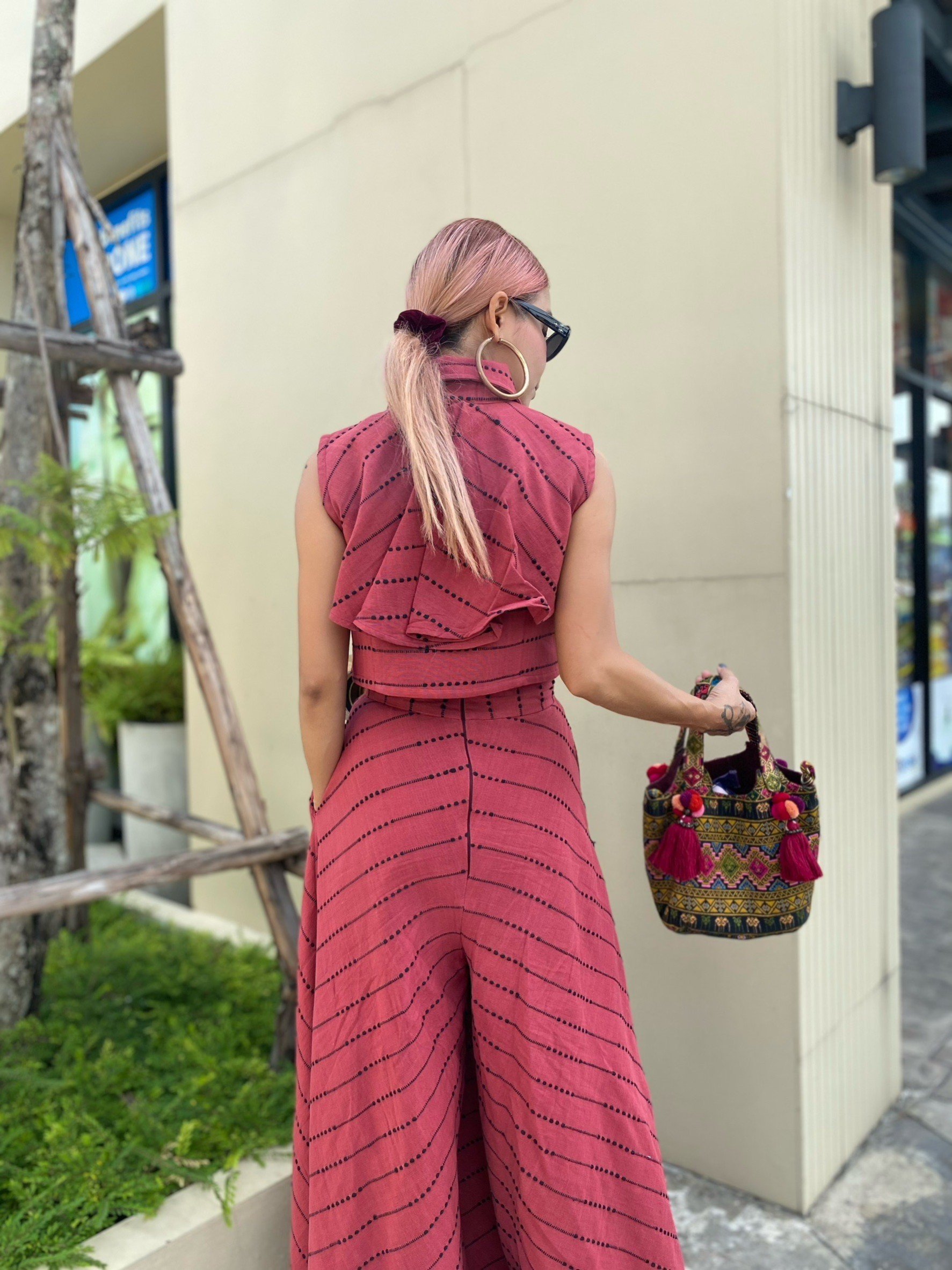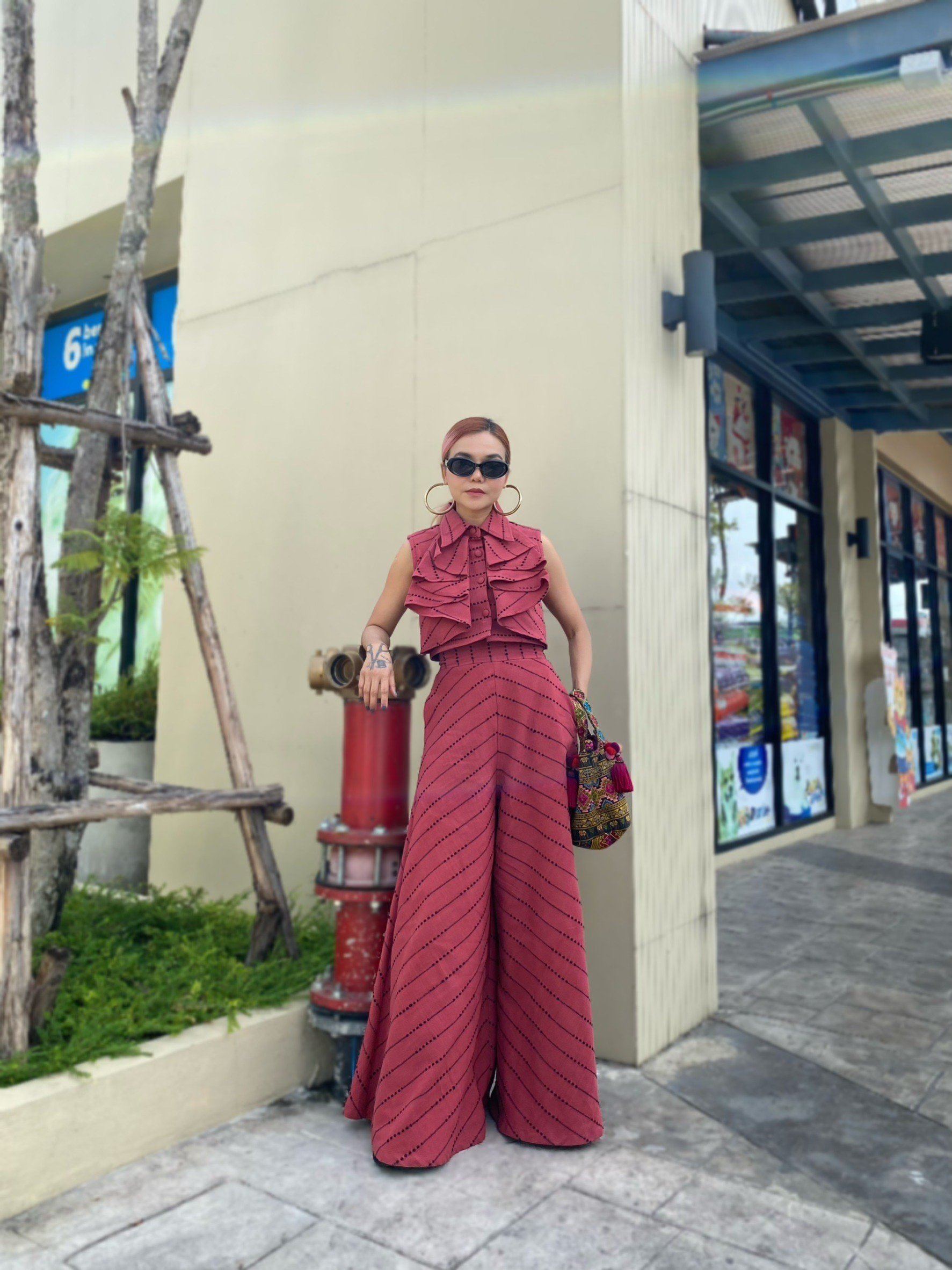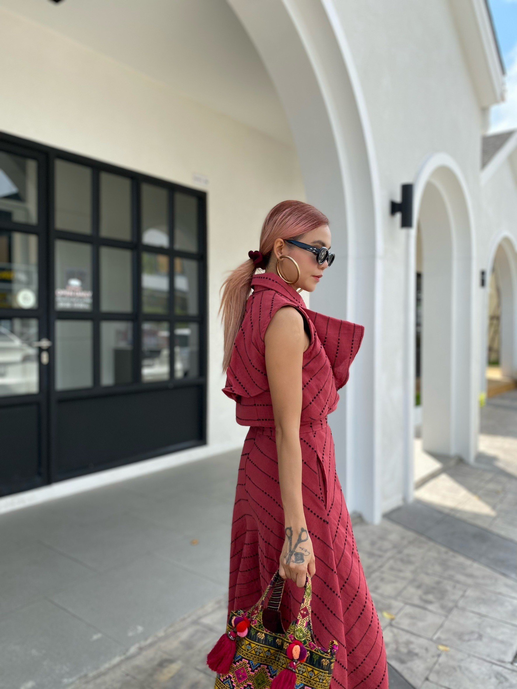 สื้อยืดคอจับจีบเฉียง มิกซ์แอนด์แมทช์ กับกางเกงจากผ้ามัดหมี่ ของดี จ.ลพบุรี