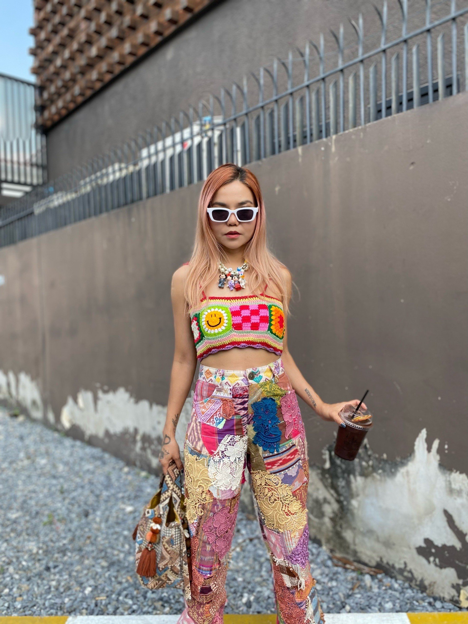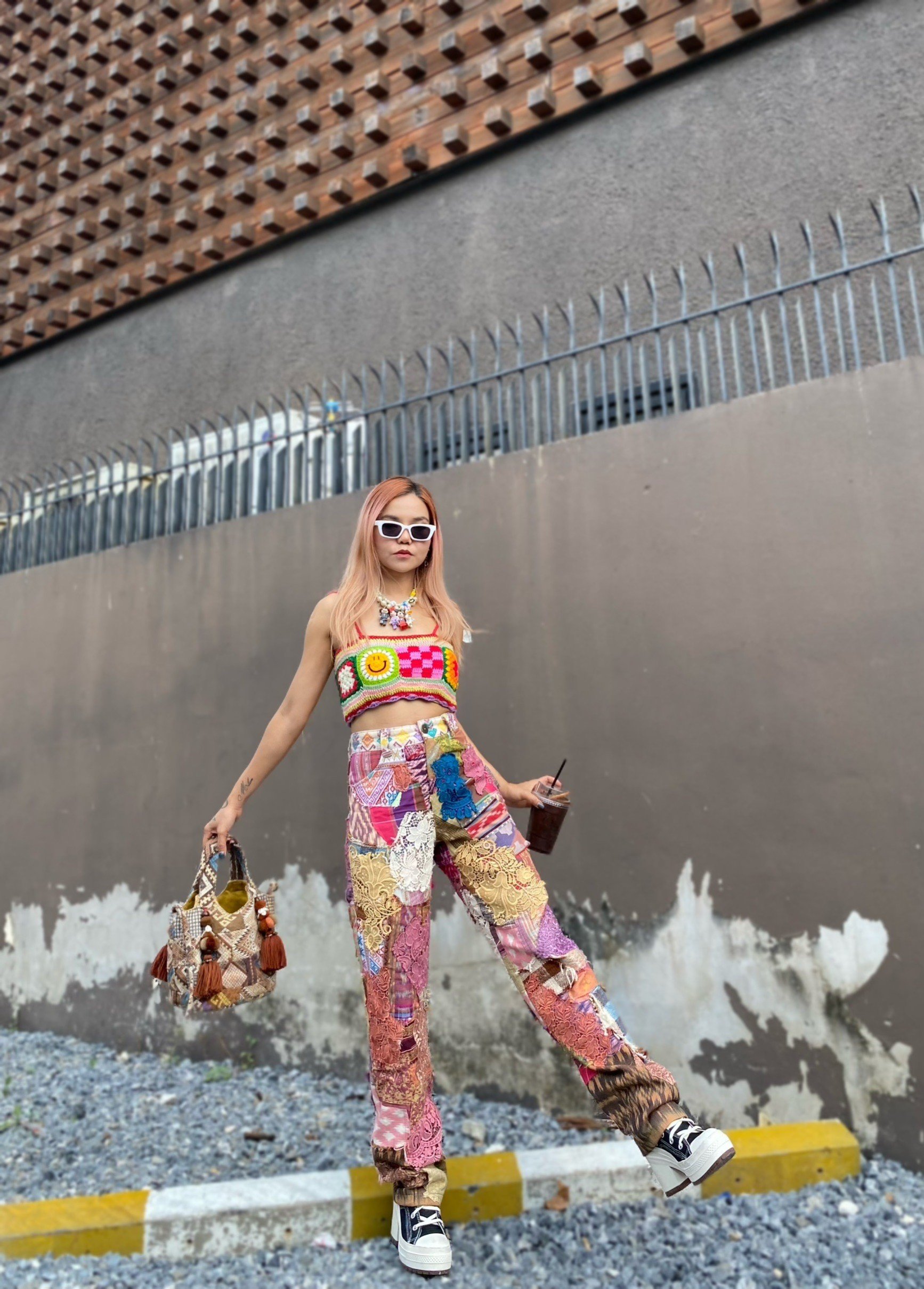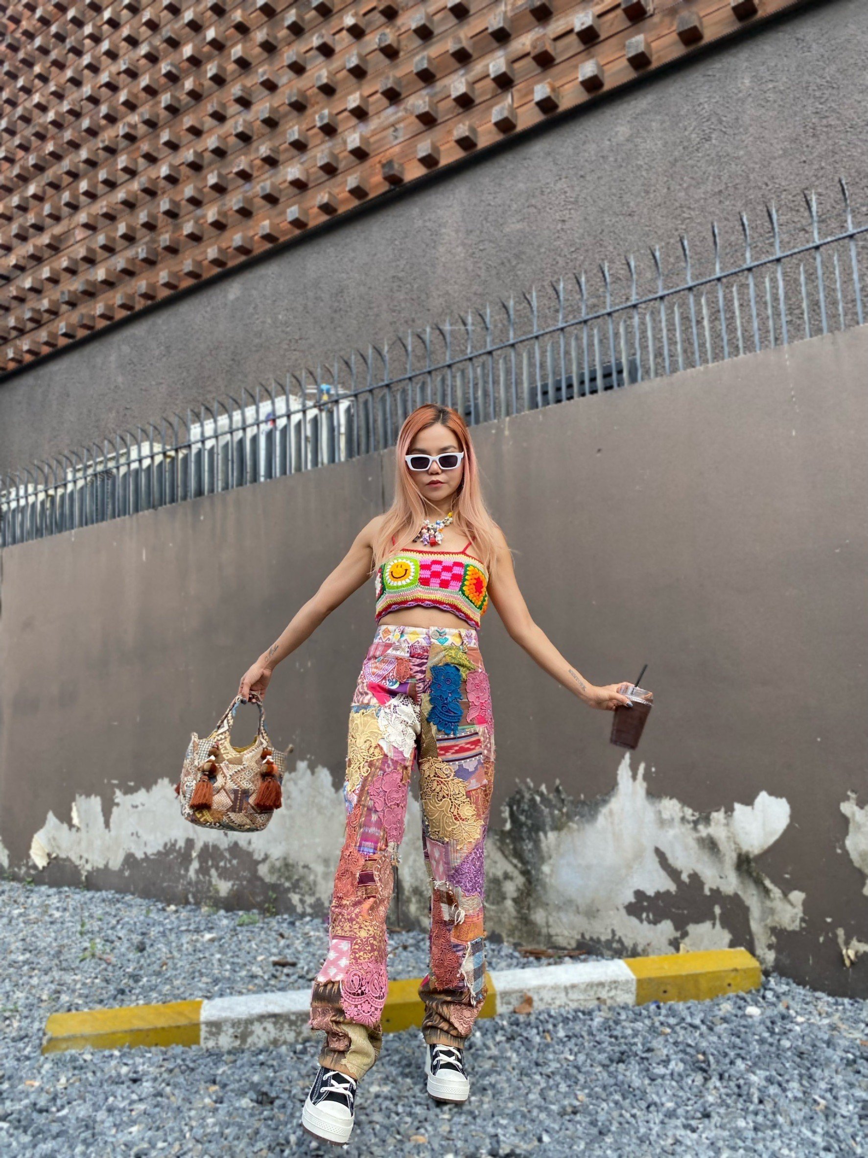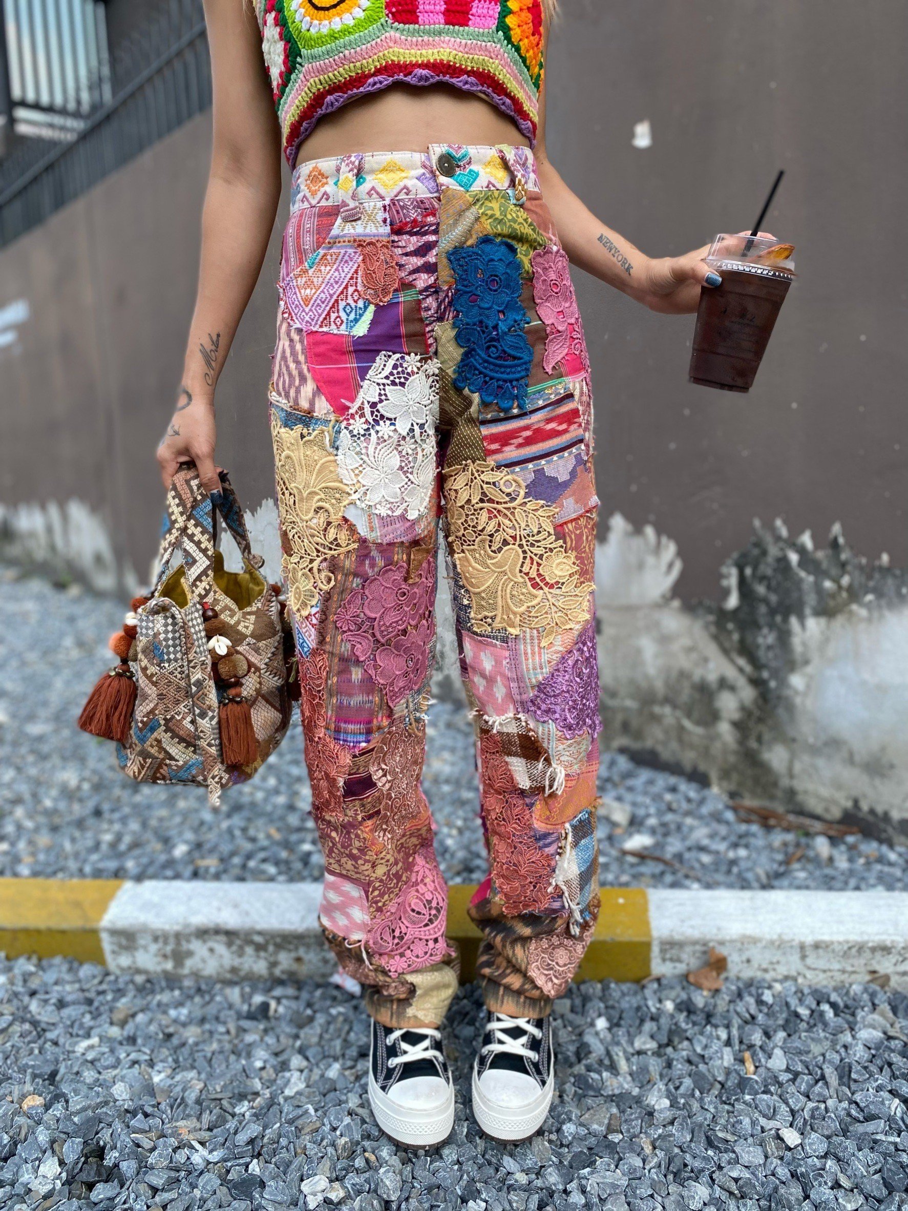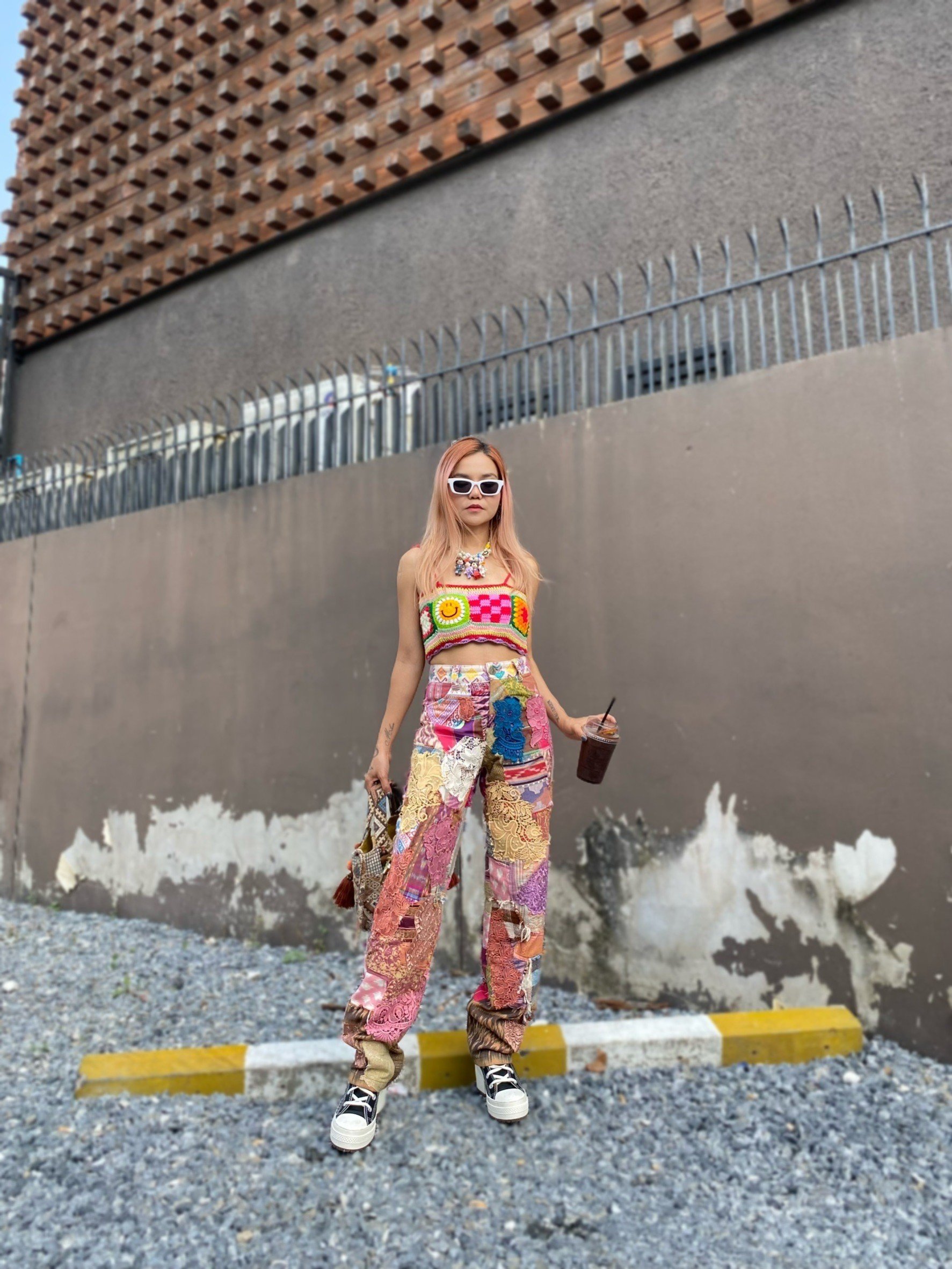 Overcoat ชุดนี้ตัดเย็บจากผ้าไทลื้อ จ.น่าน Cargo Pants ตัดเย็บจากผ้าฝ้ายฟอกนิ่ม จ.เชียงใหม่ x ผ้าไทลื้อ
